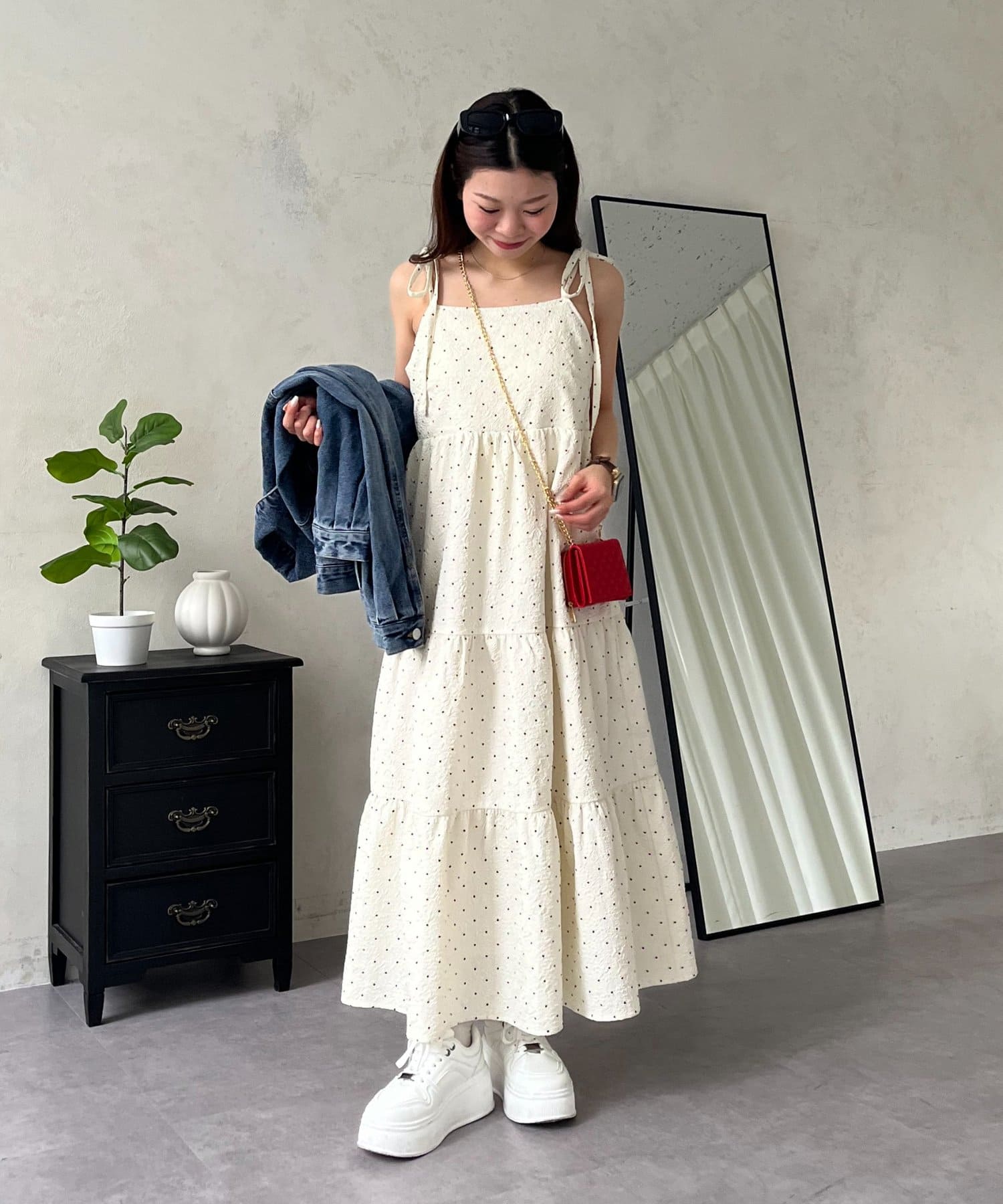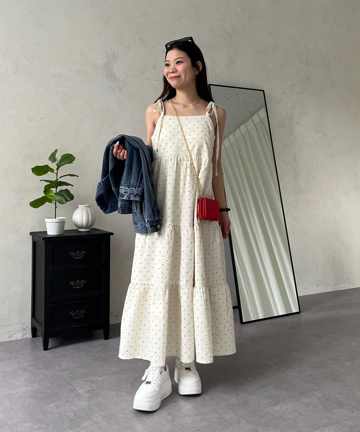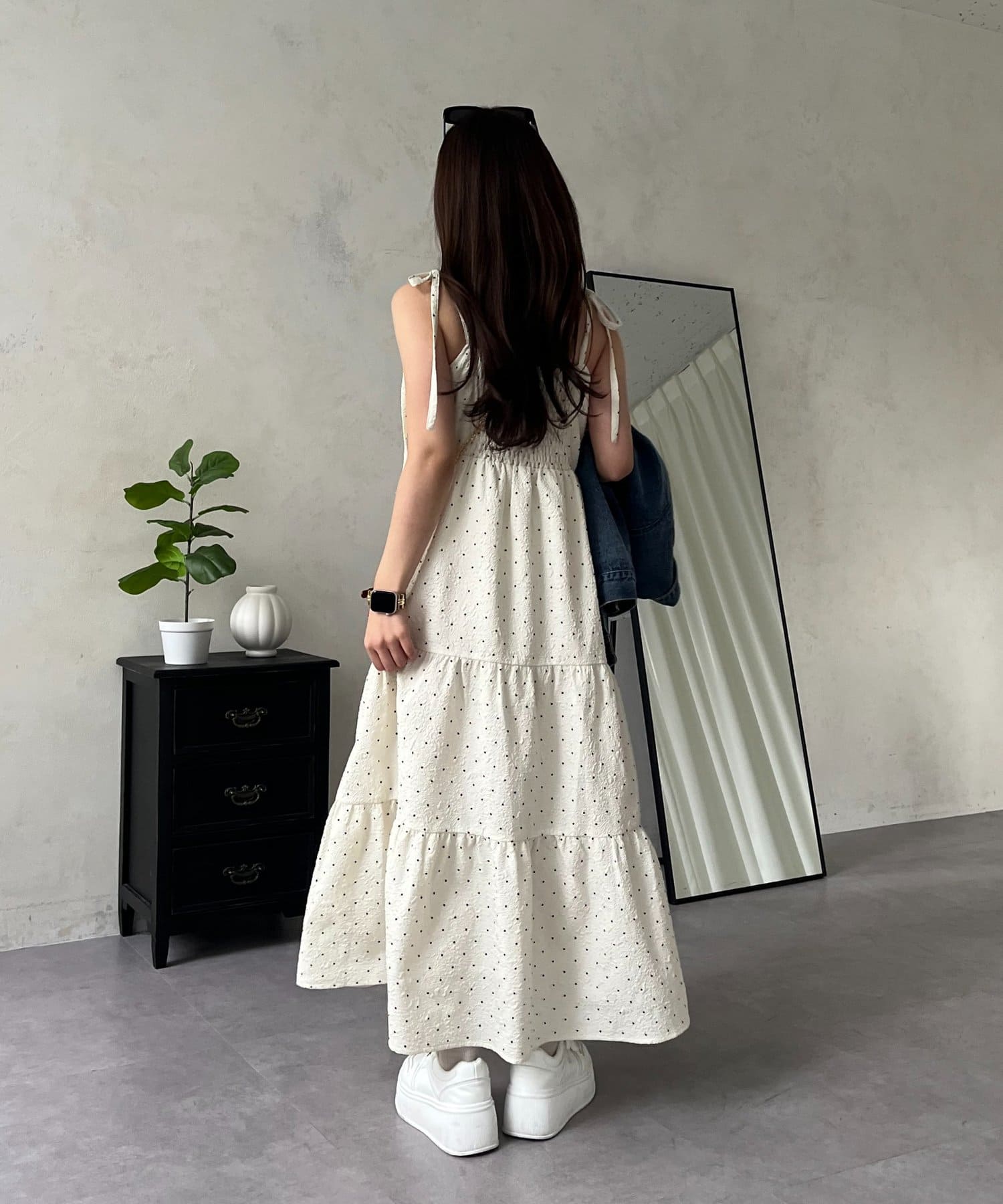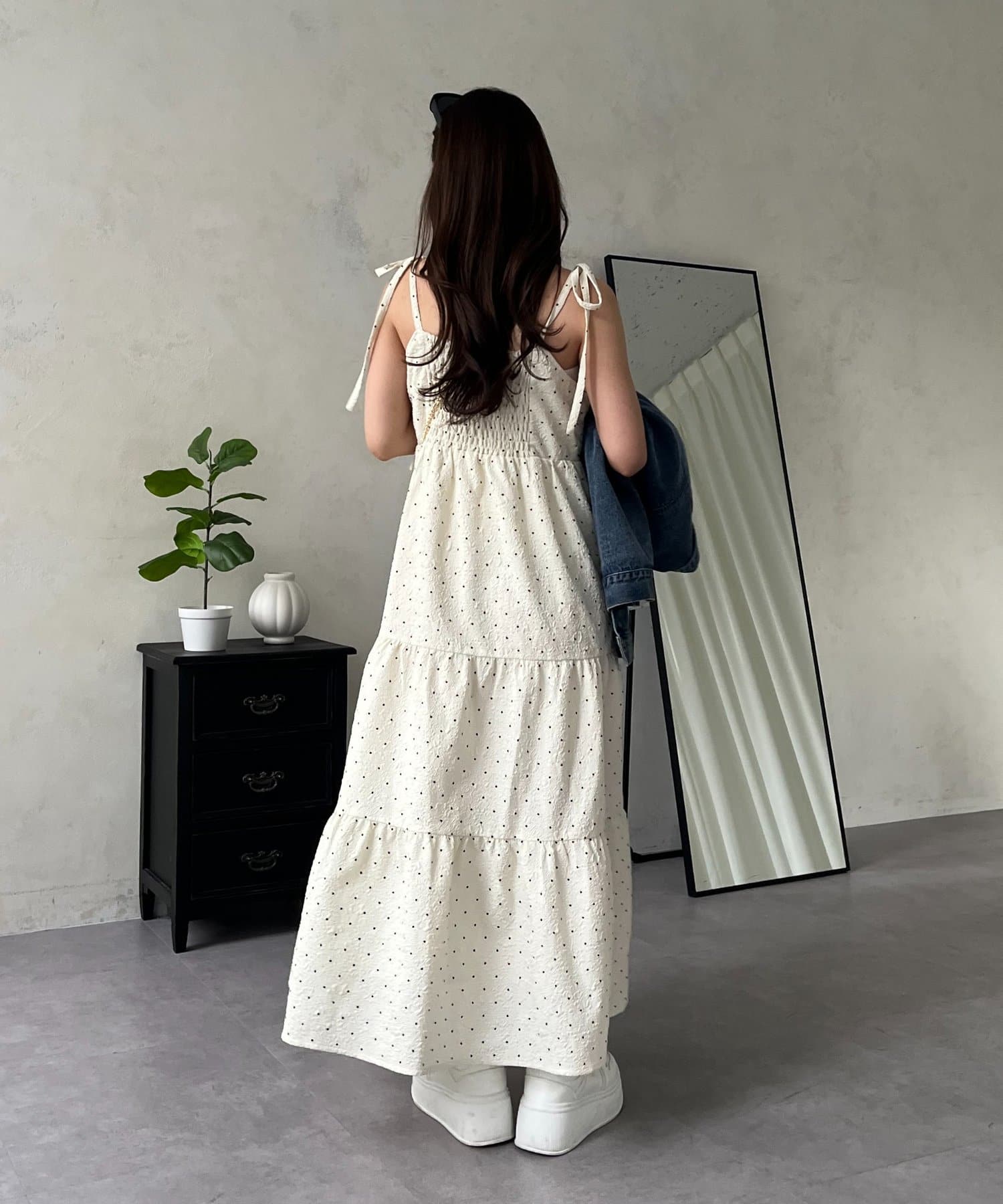 キャミワンピース/リボン/ドット/シンプル/大人可愛い