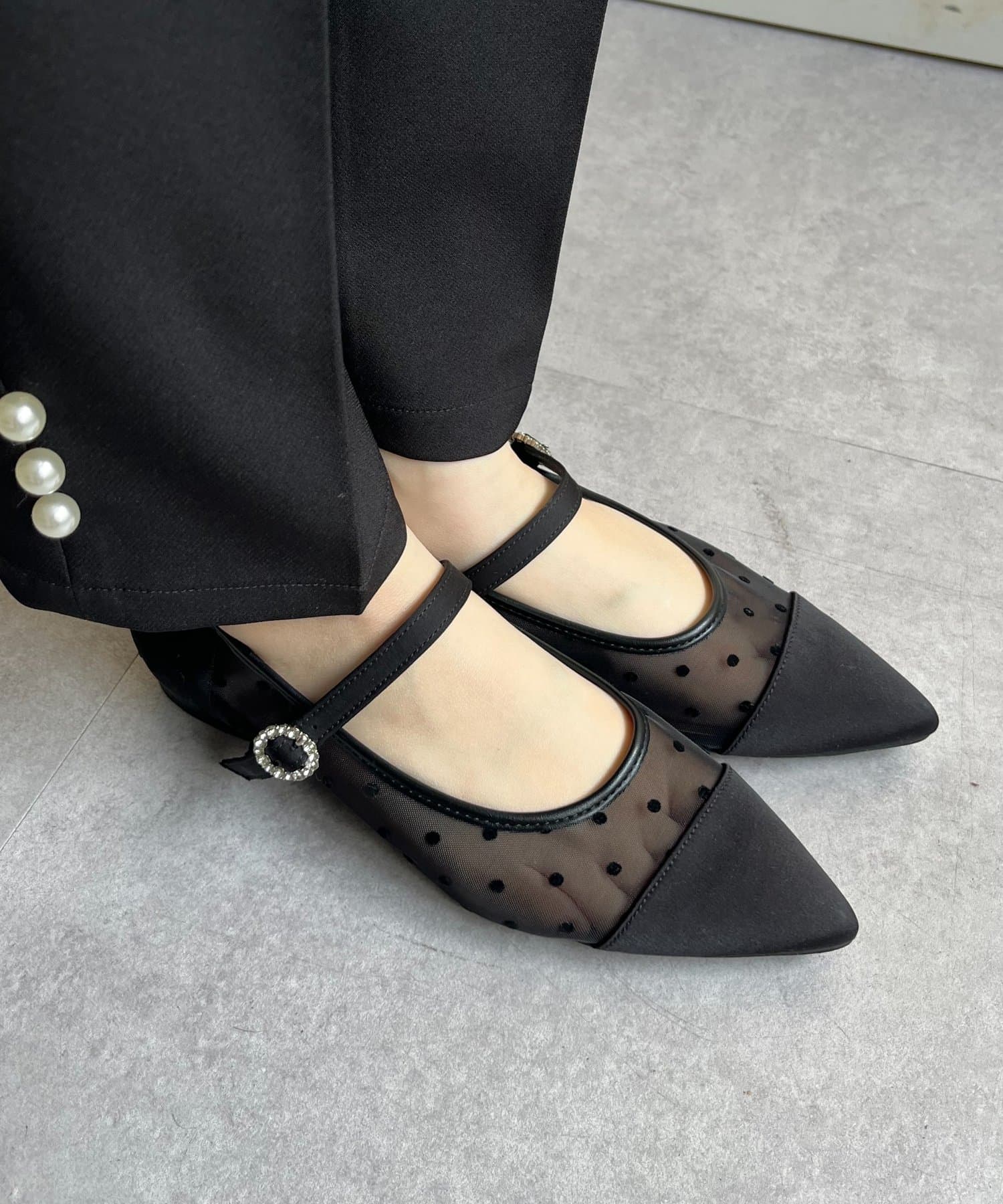 ドット/シアー/ビジュ/ ストラップ/ パンプス/