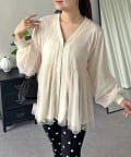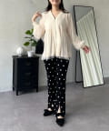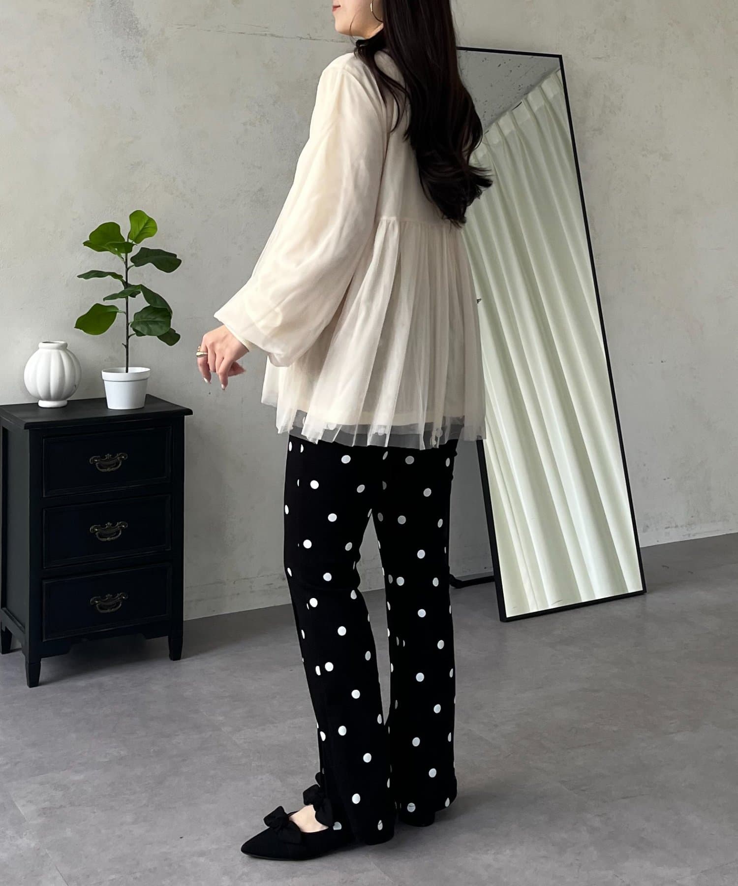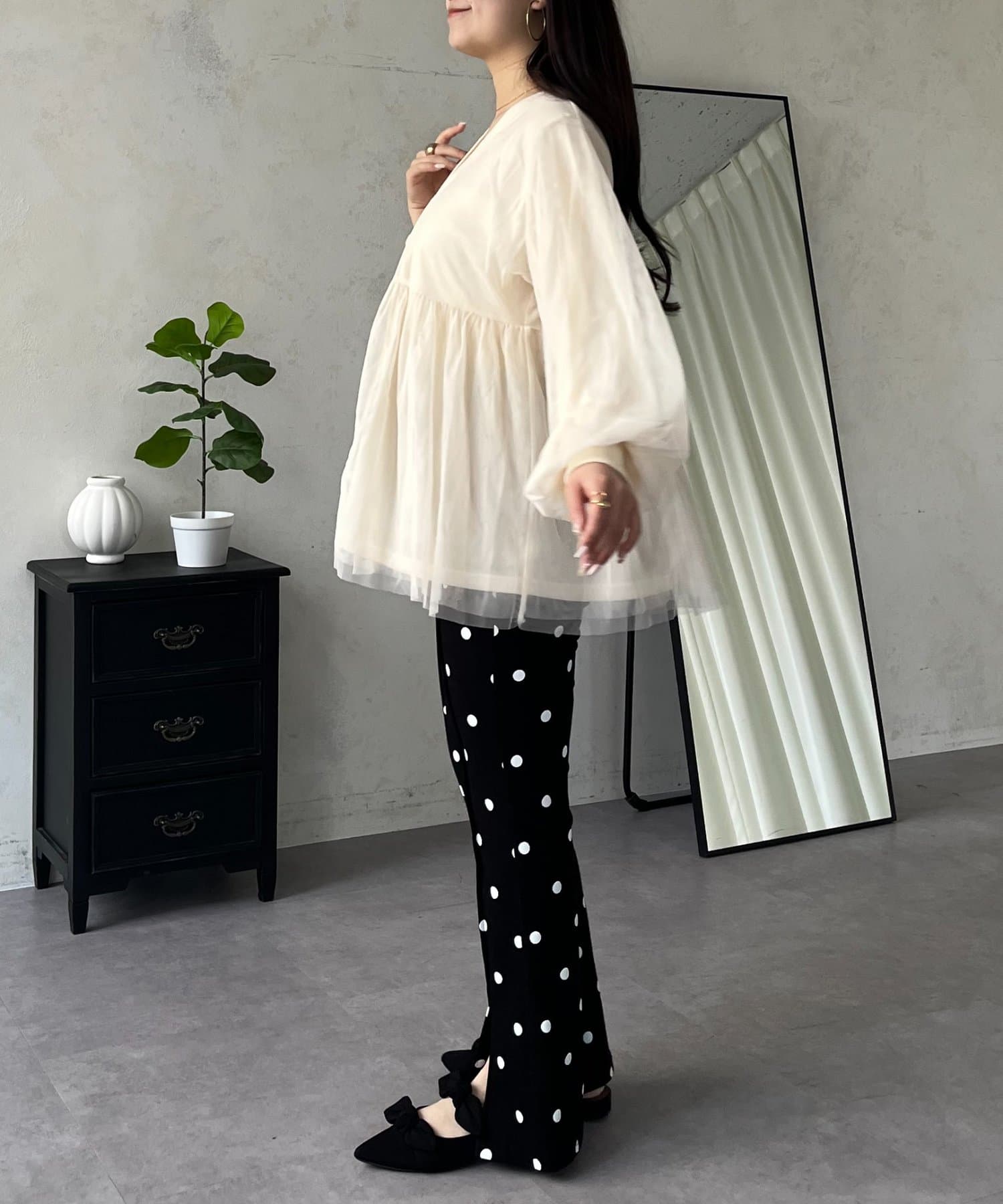 ●ボリュームスリーブが腕のラインを拾わず、リブ仕様の袖口が手元をすっきりと見せてくれます