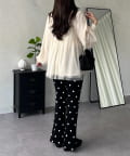 ●高めのウエスト位置から広がるペプラムシルエットが、気になる腰回りを自然にカバーしスタイルアップを叶えます