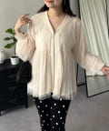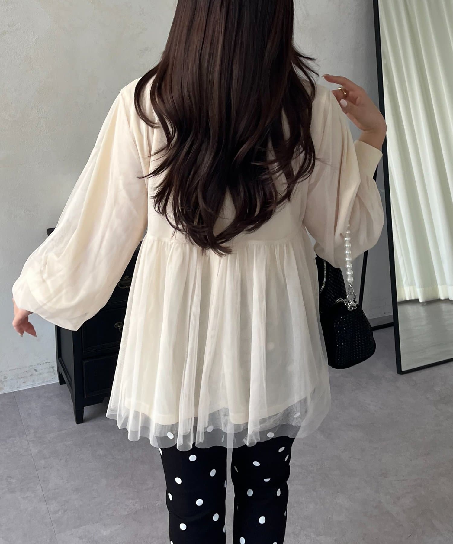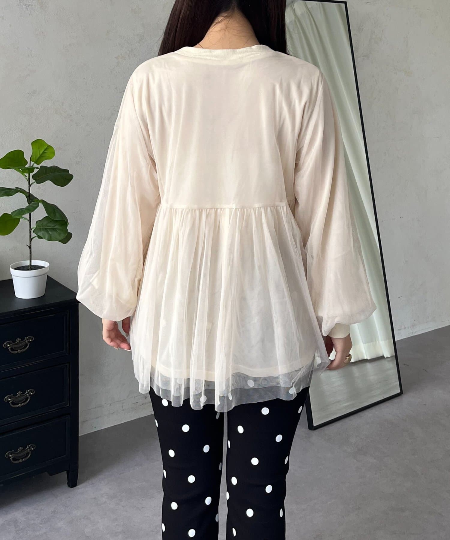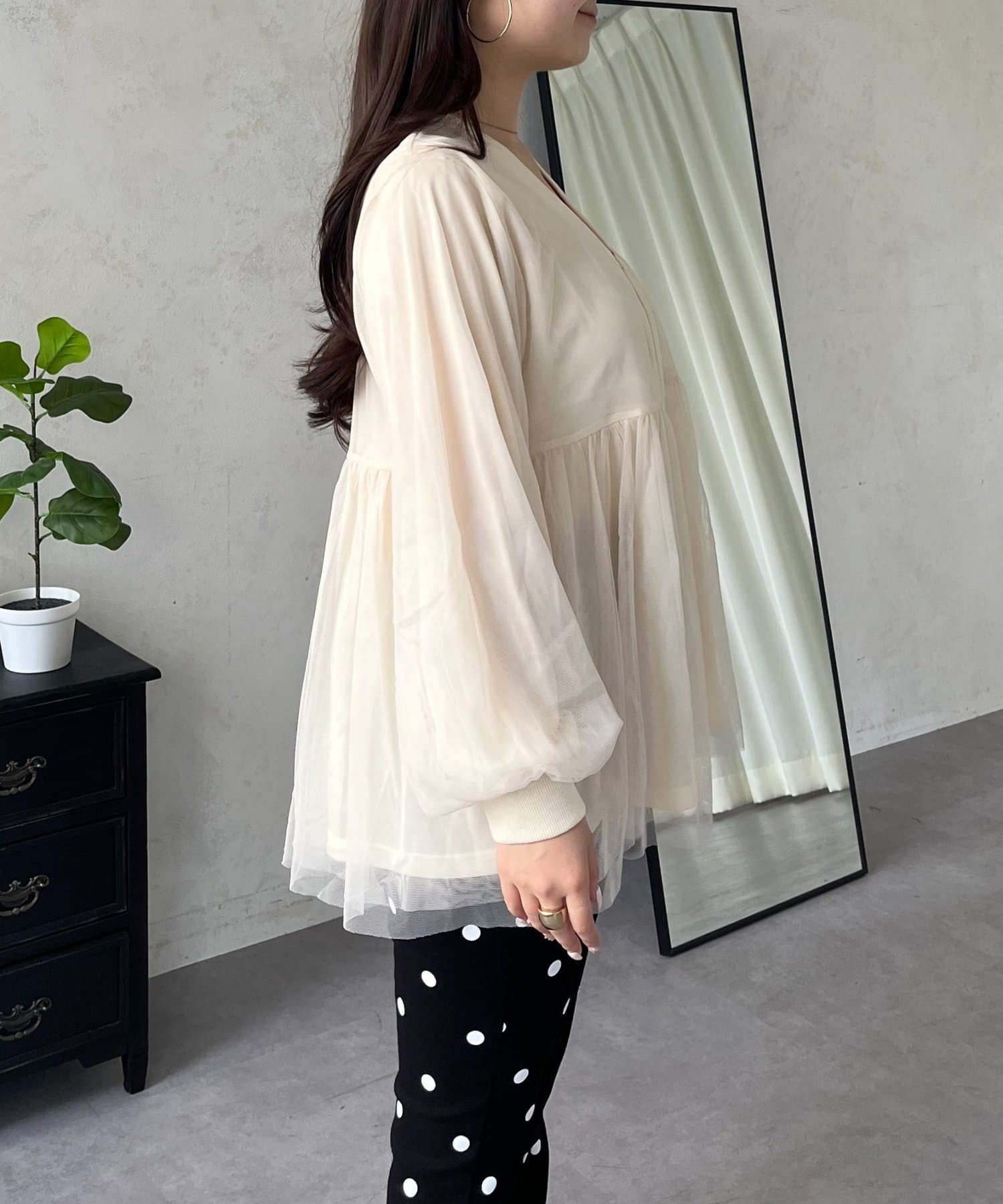 ペプラムカーディガン/チュールトップス/大人可愛い