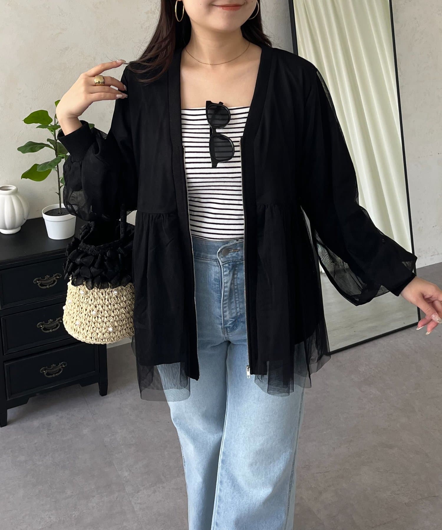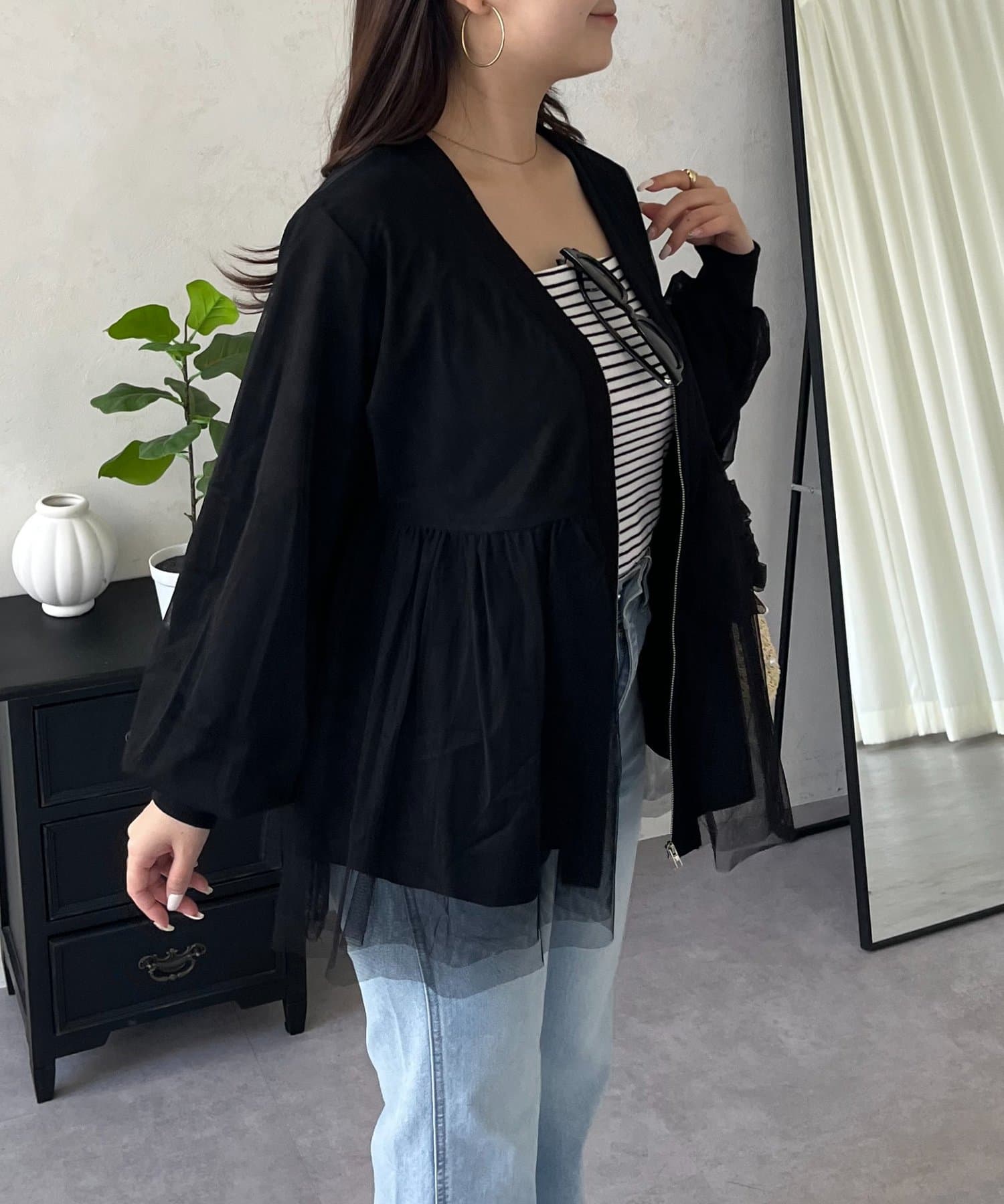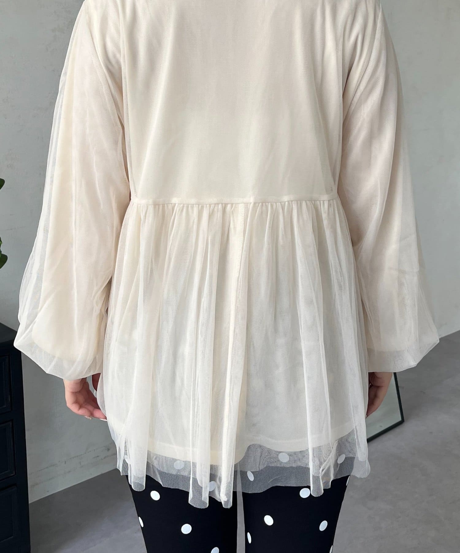 チュールレイヤードペプラムカットカーディガン