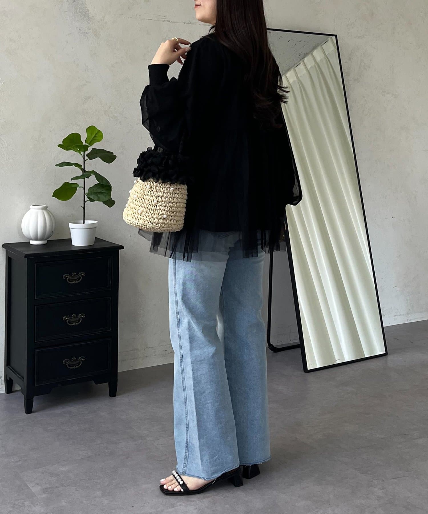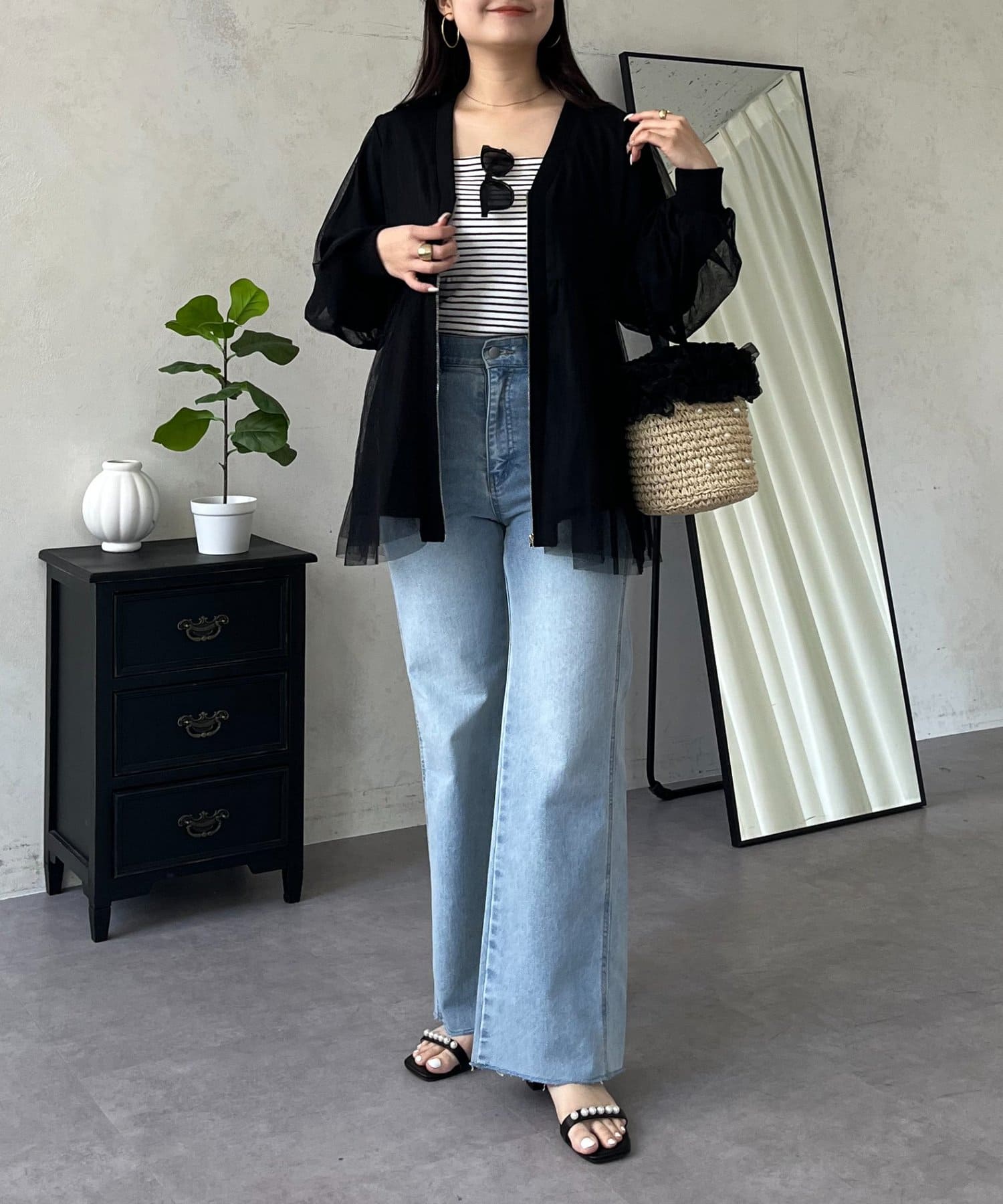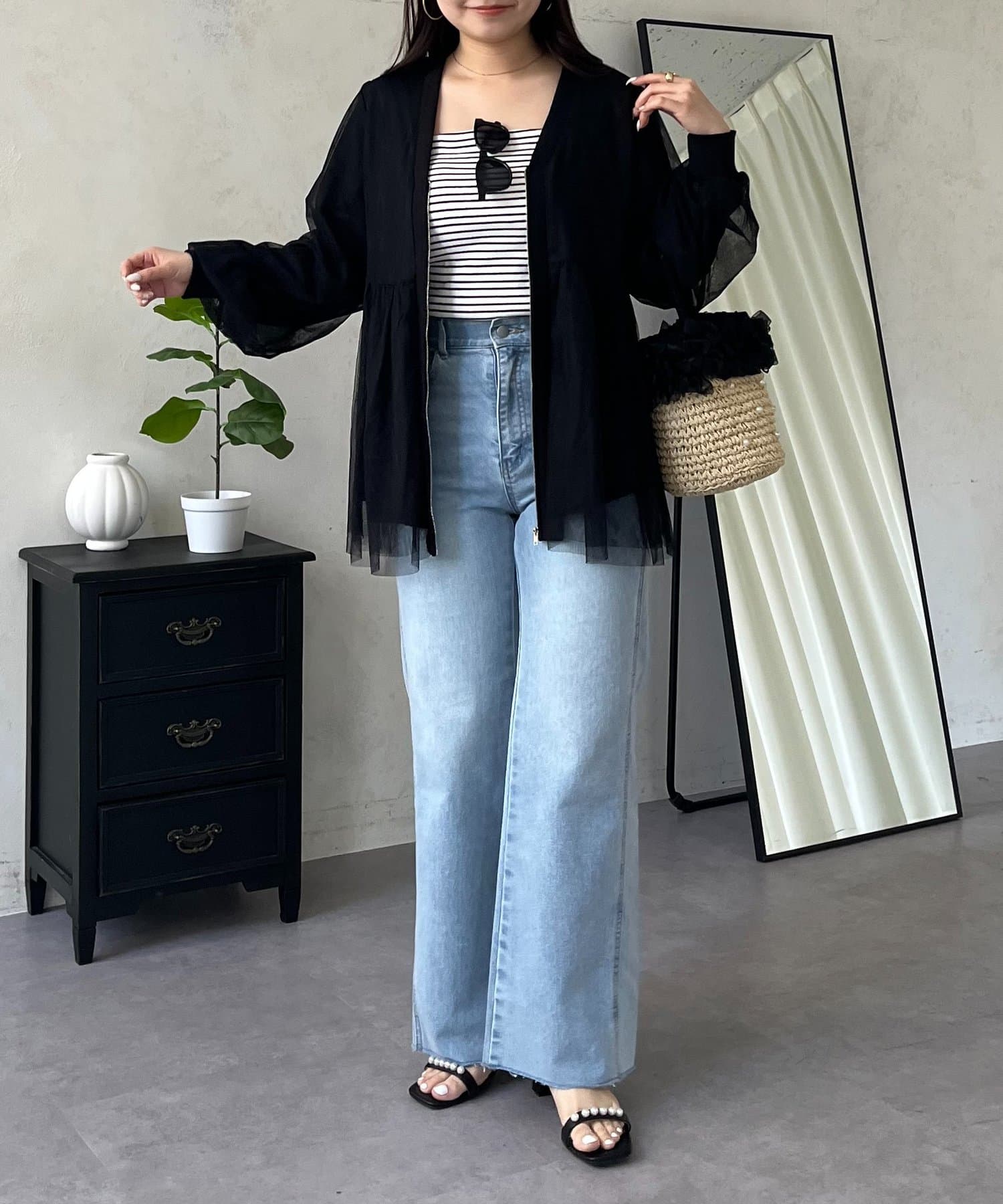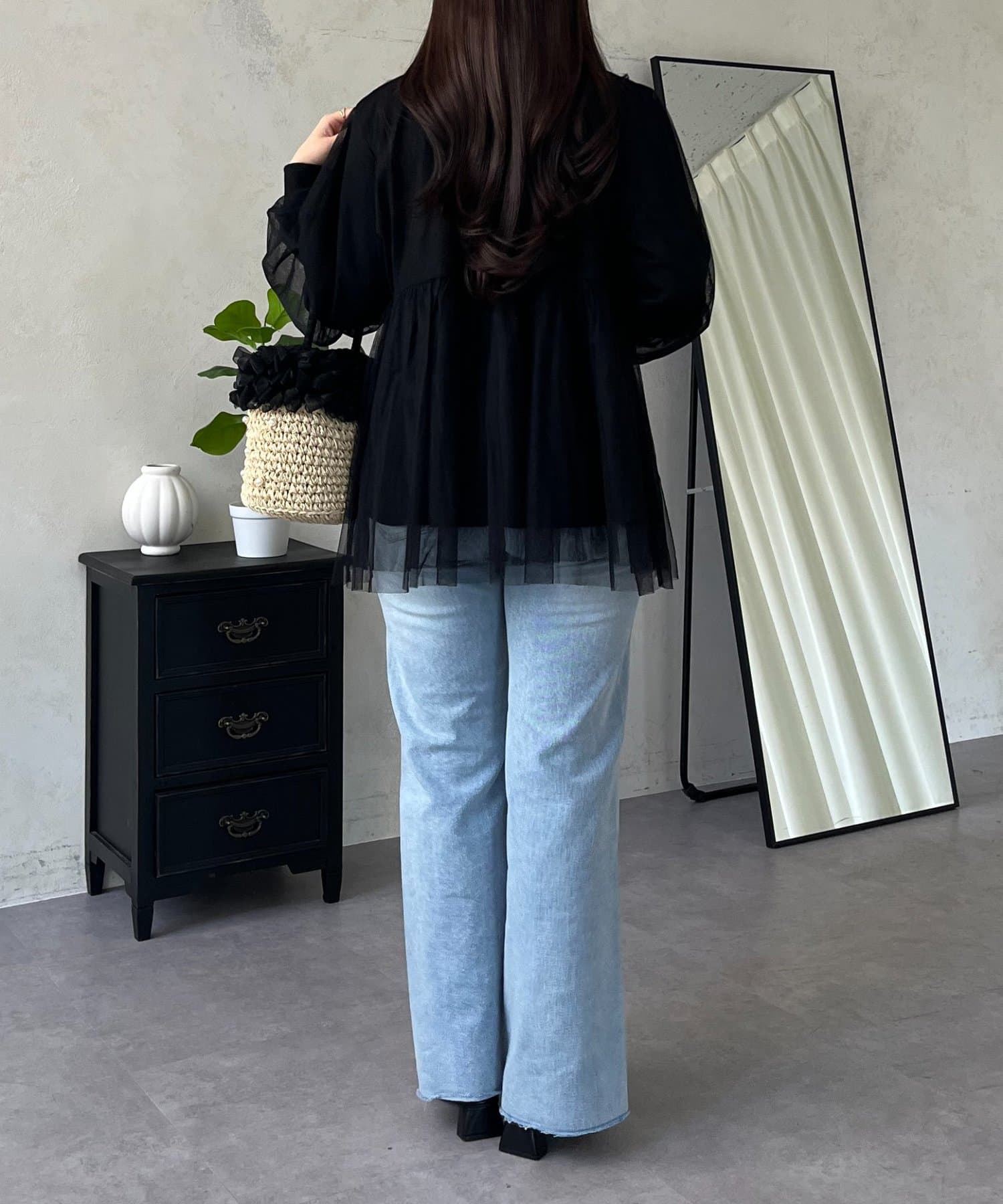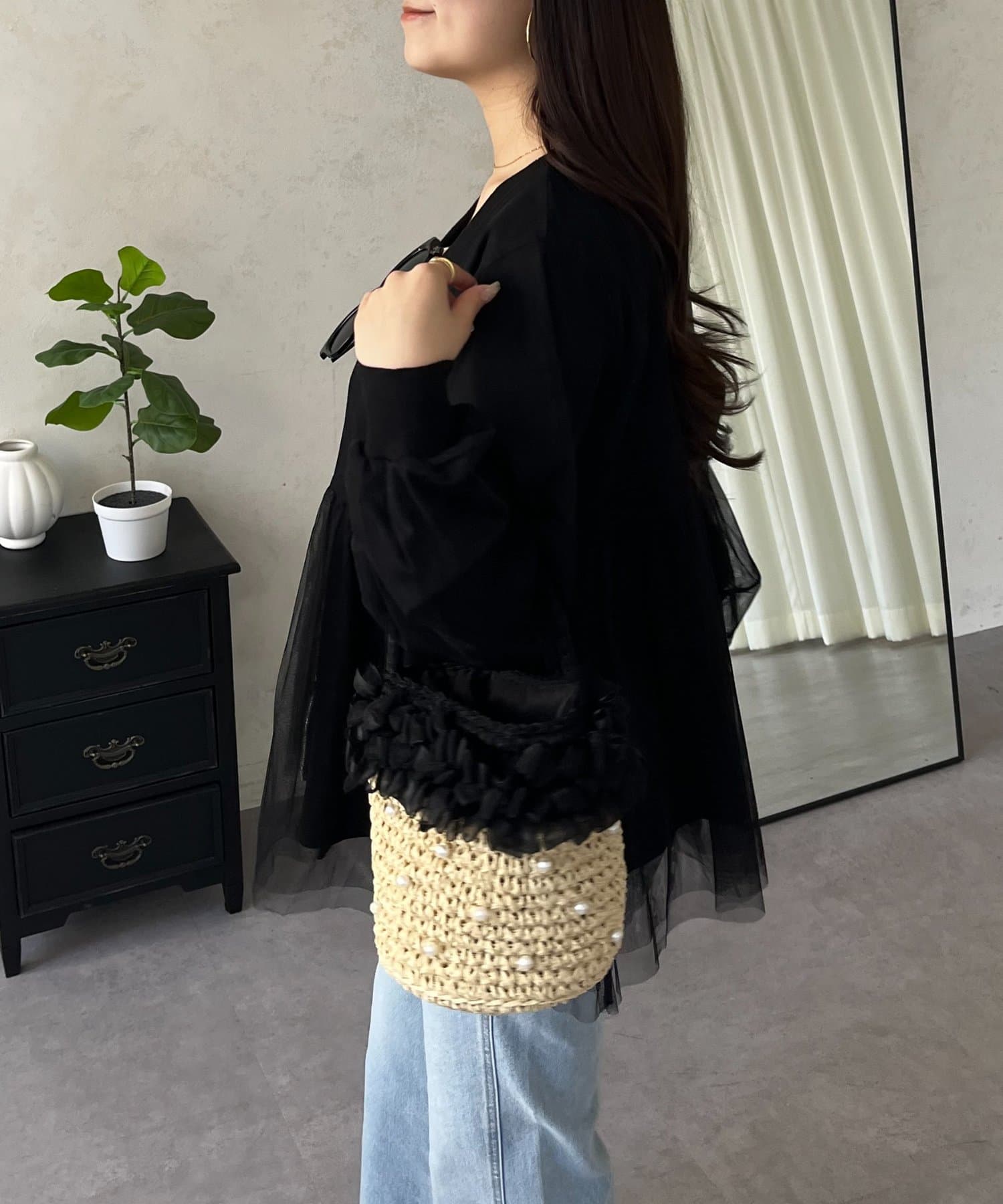 ●ふんわりと揺れるチュールを重ね、フェミニンなムードを高める主役級カーディガン