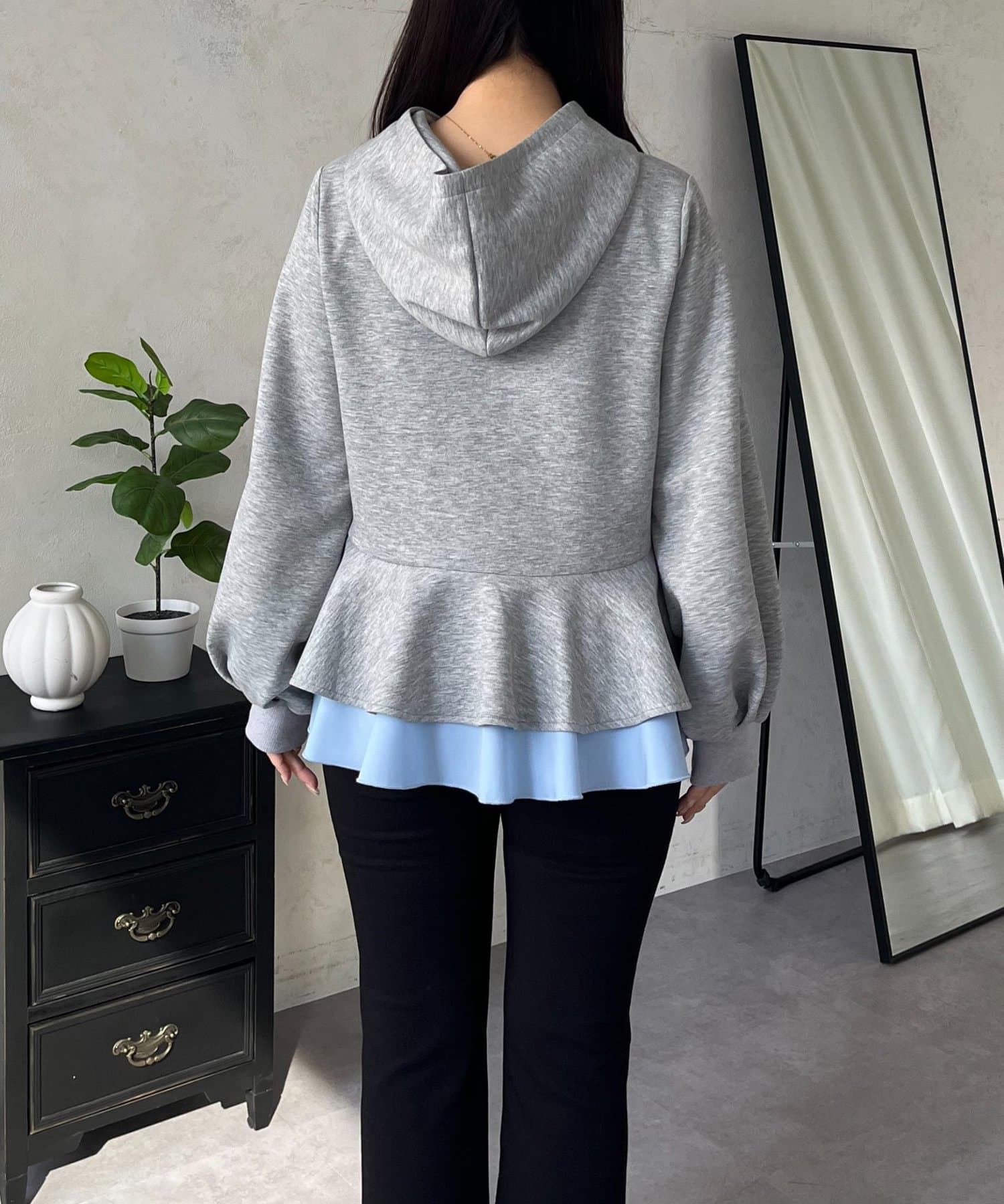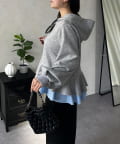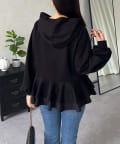裾レイヤードフリルペプラムパーカー