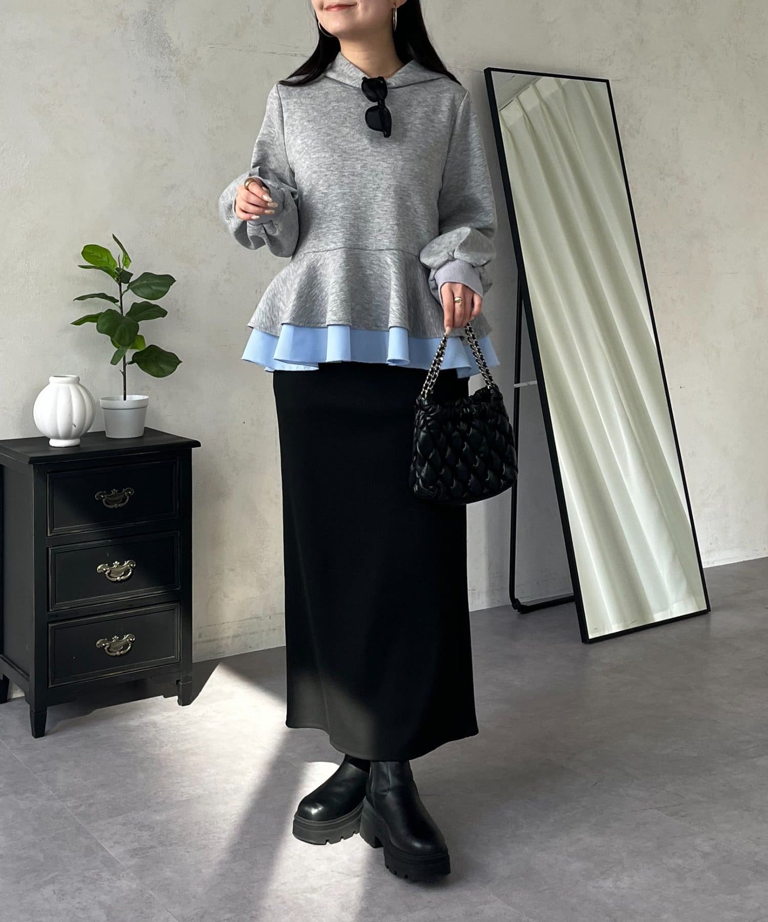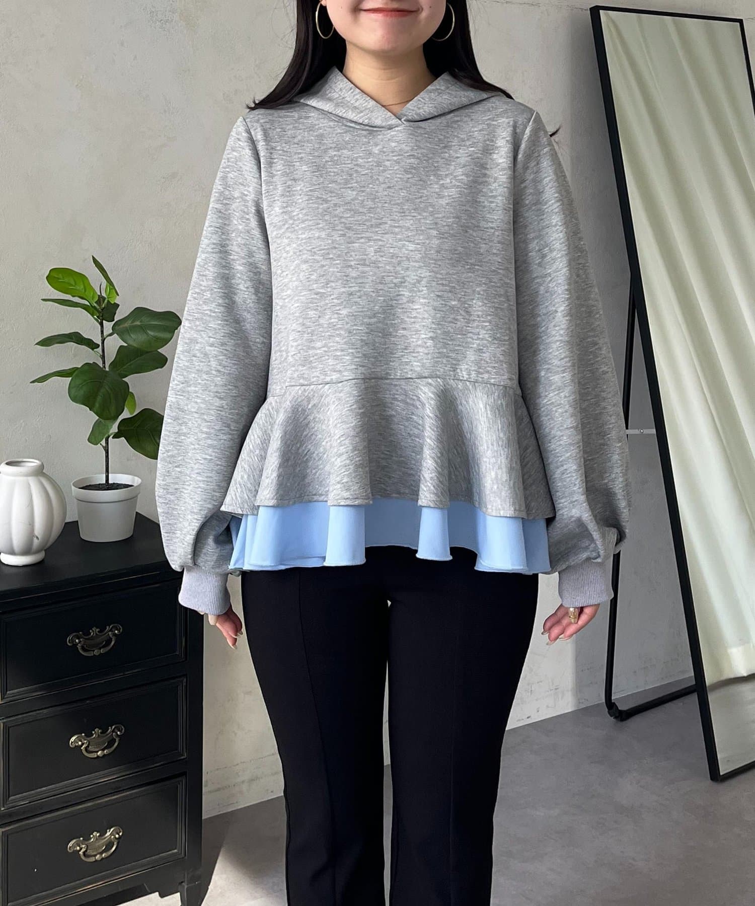 一枚でコーデが完成!大人可愛い裾レイヤードフリルペプラムパーカー