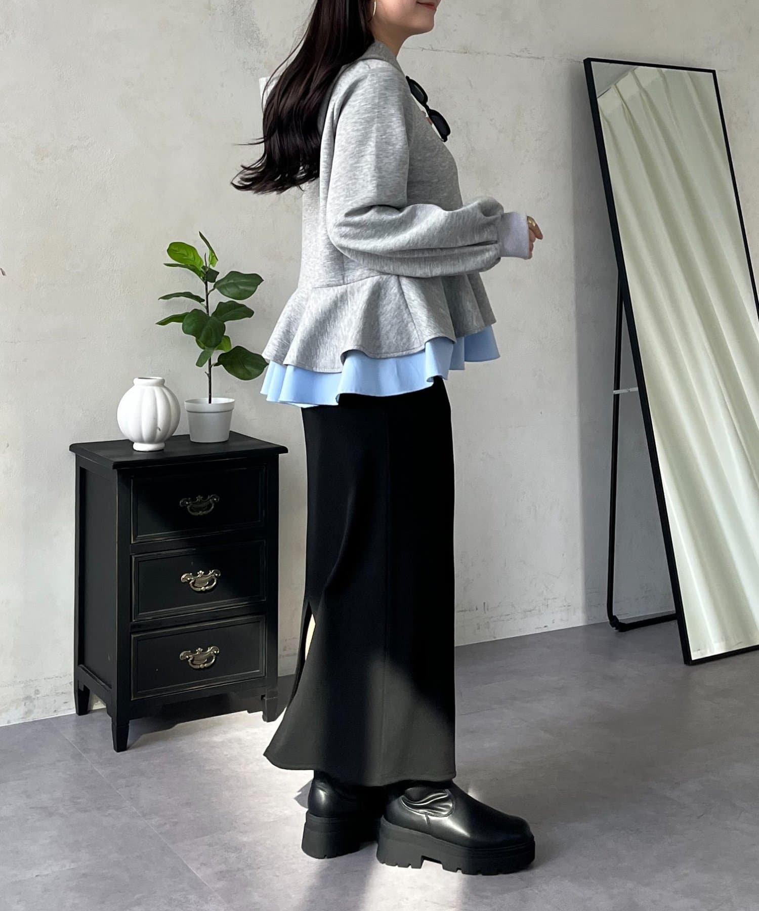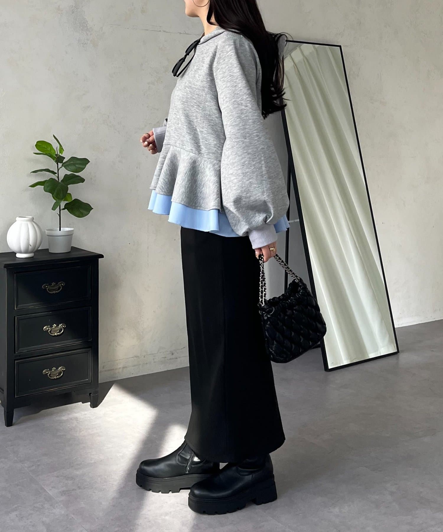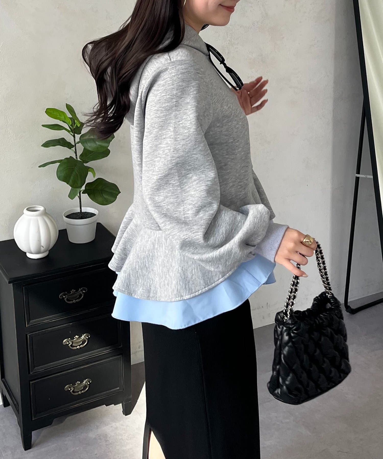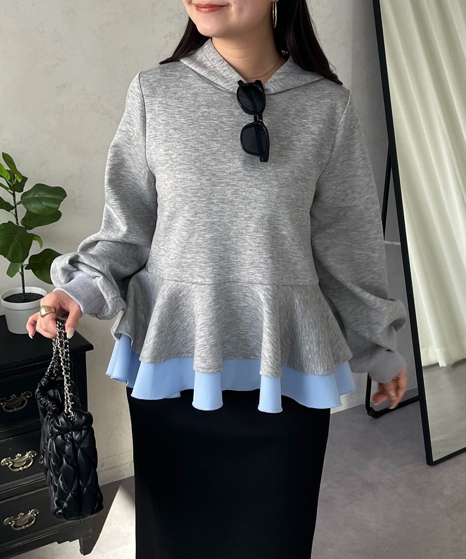 • prose verse(プロズヴェール) 裾レイヤードフリルペプラムパーカー