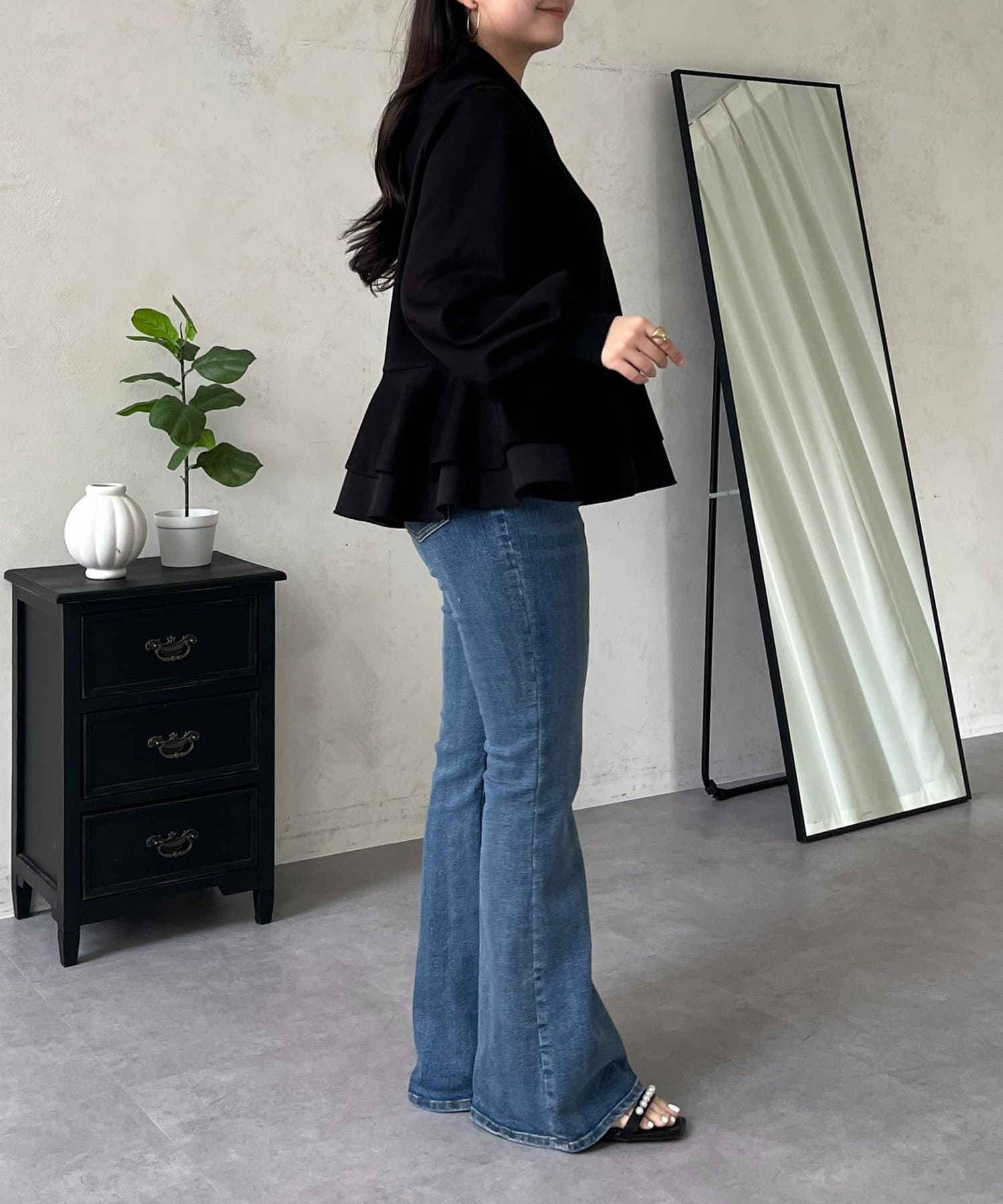 ●気になる腰回りをふんわりとカバーしてくれるペプラムシルエットで