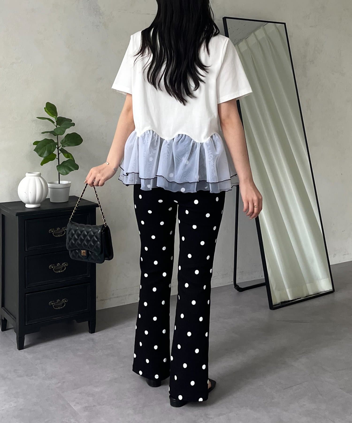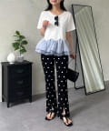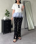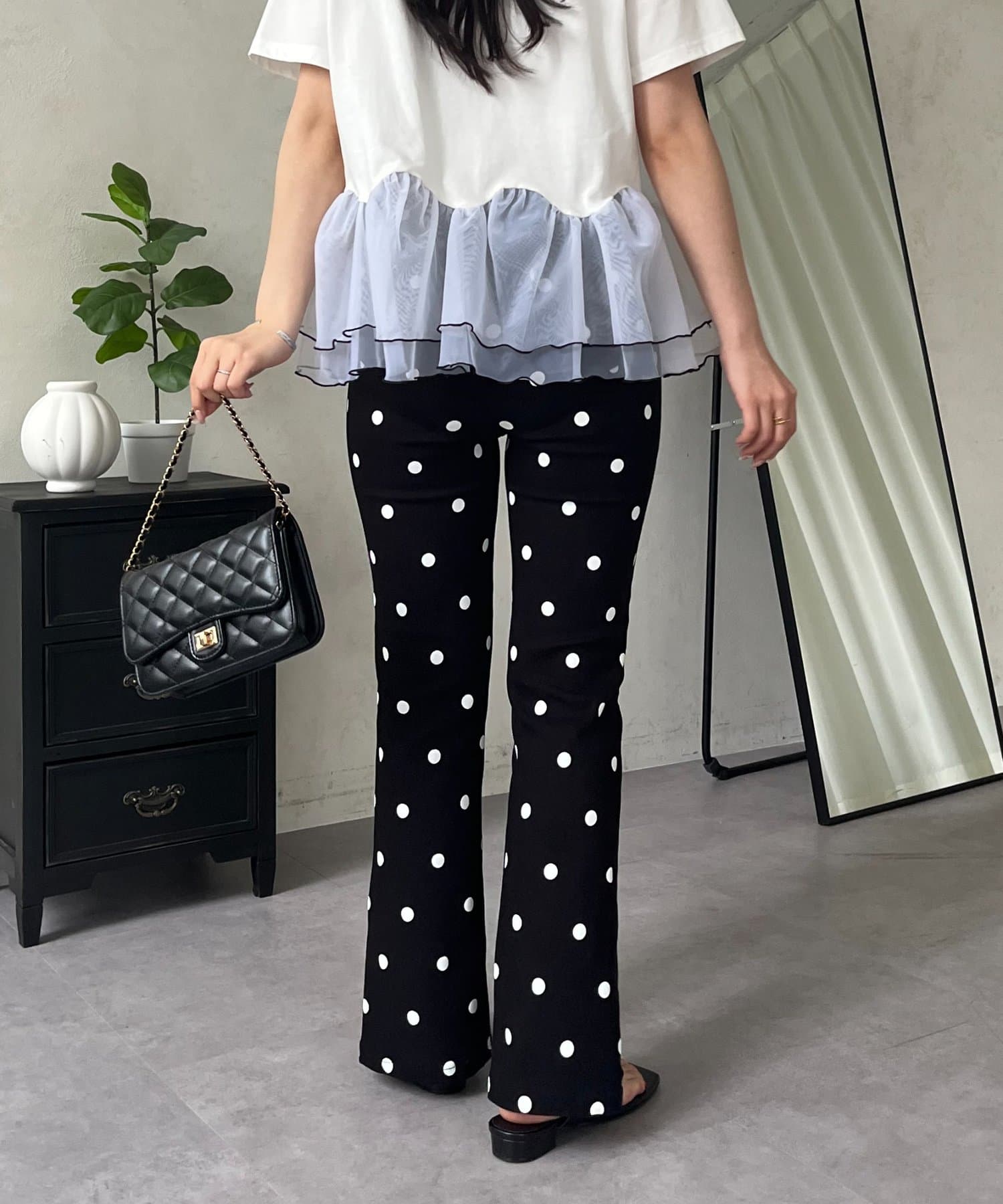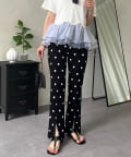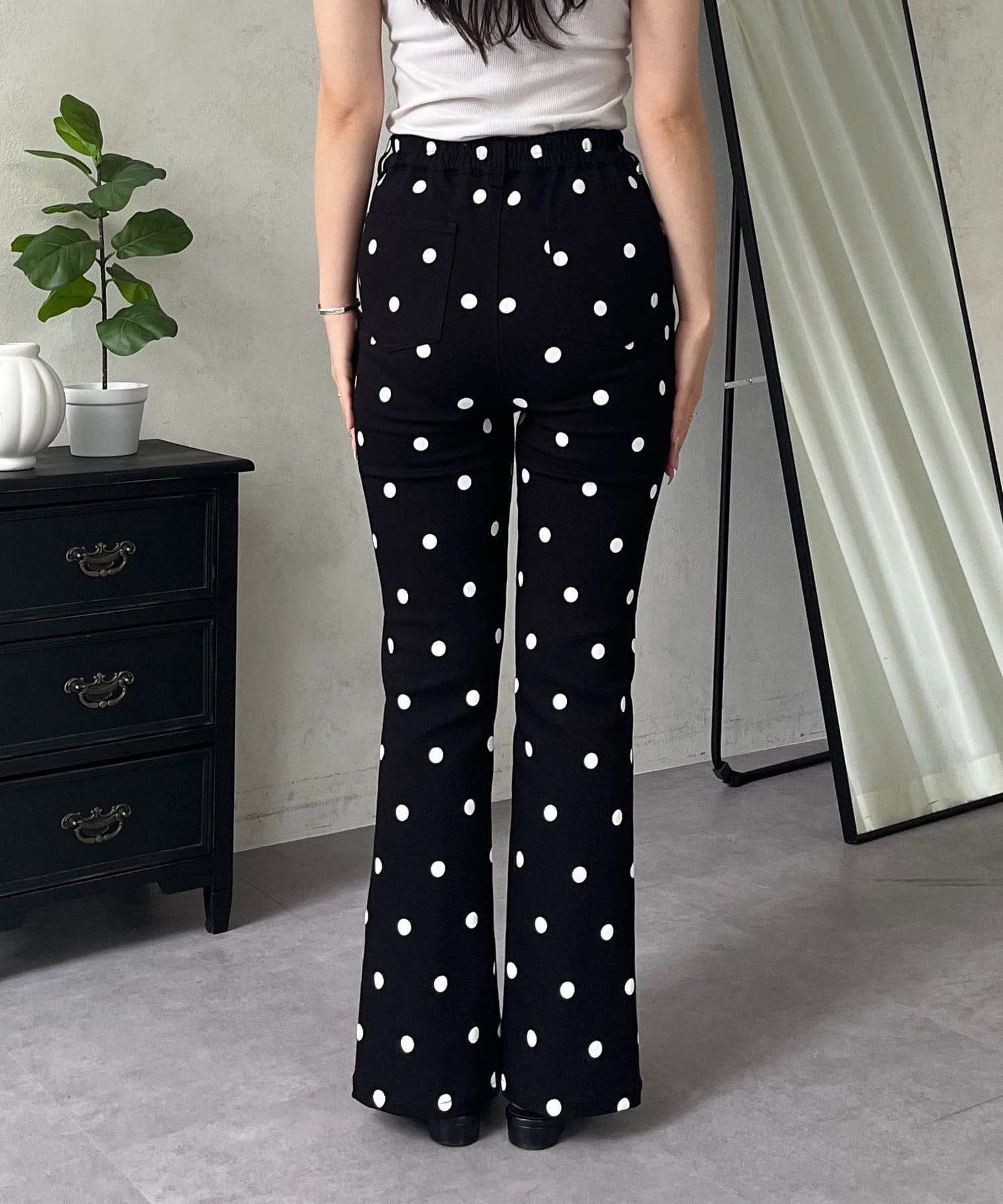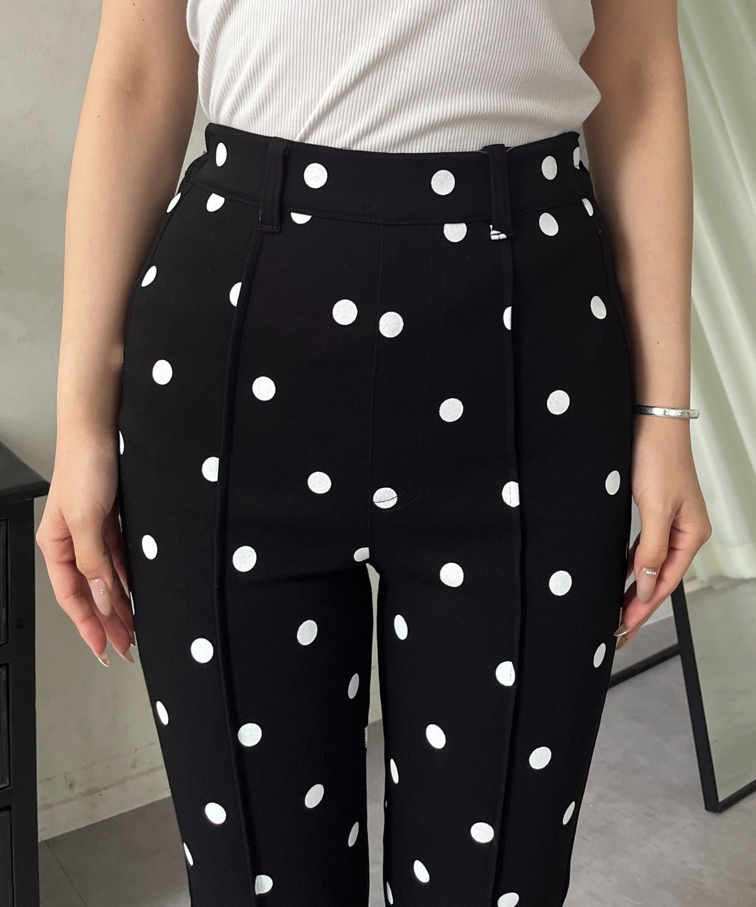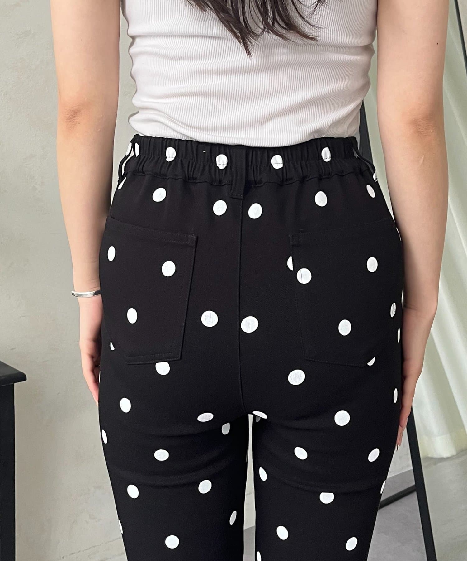 【美脚見え】主役級ドット柄パンツストレッチパンツ