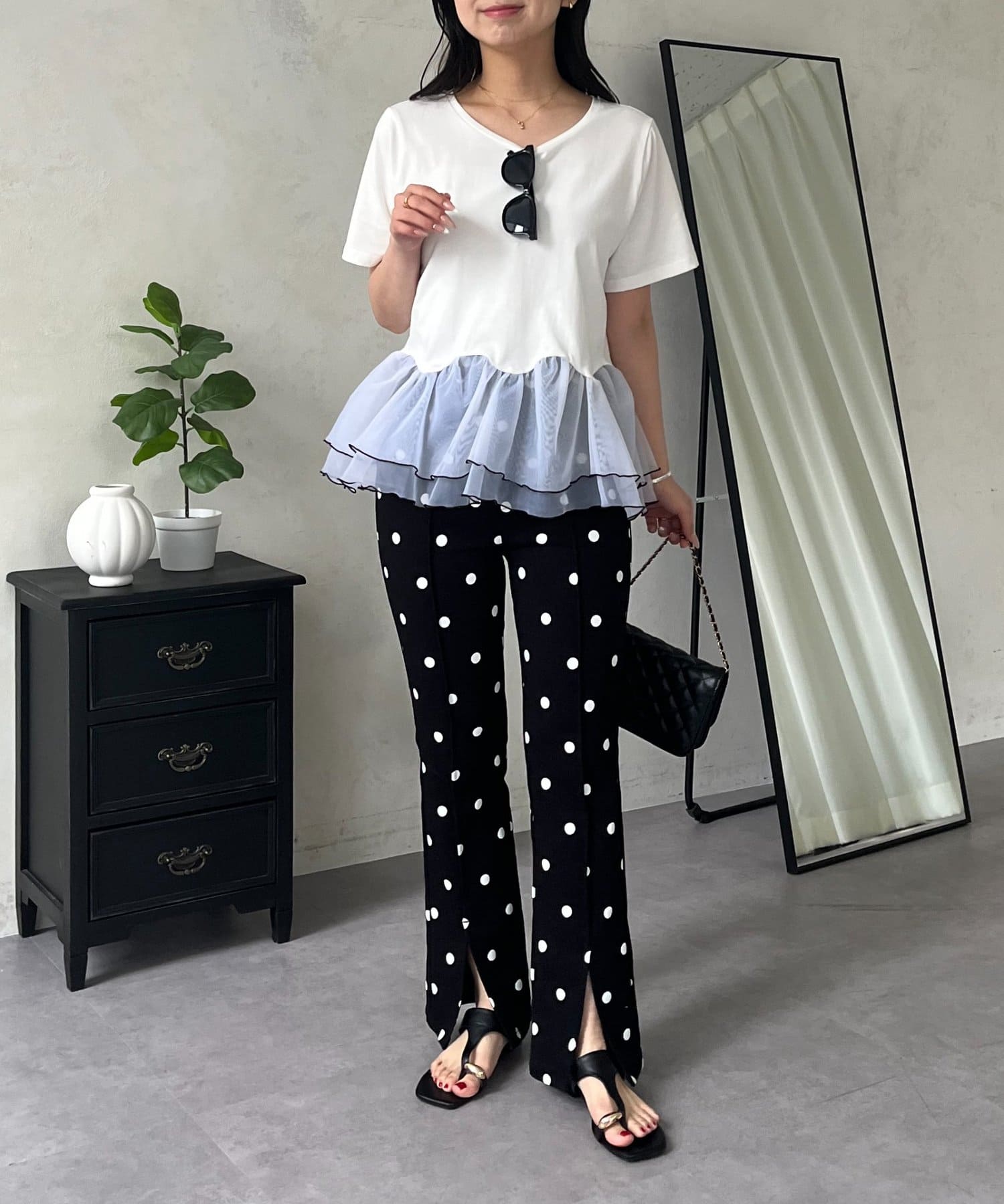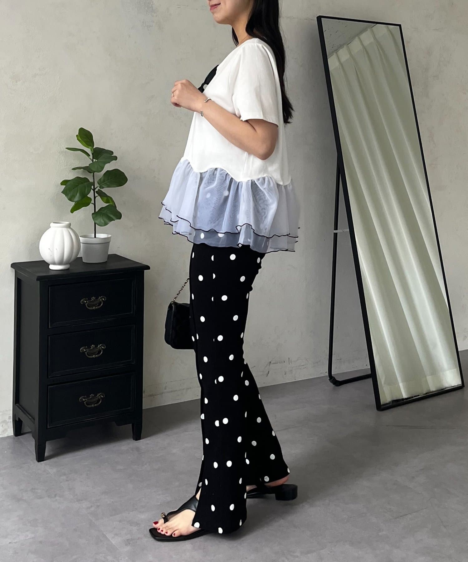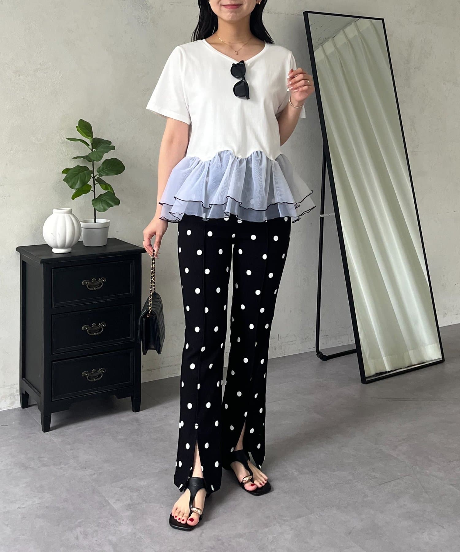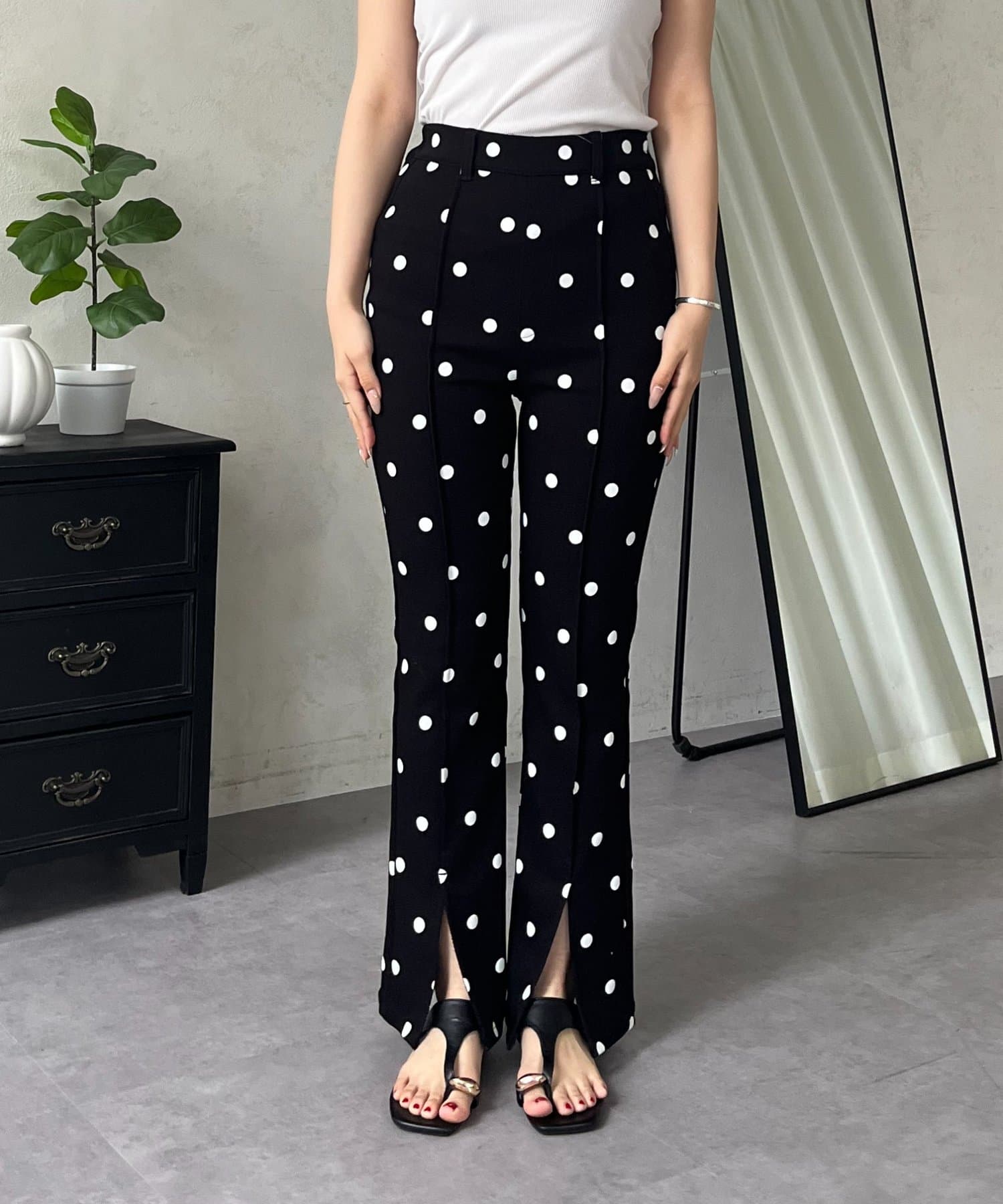 prose verse(プロズヴェール) 【-3kg見え!】ドットフロントスリットスーパーストレッチパンツ