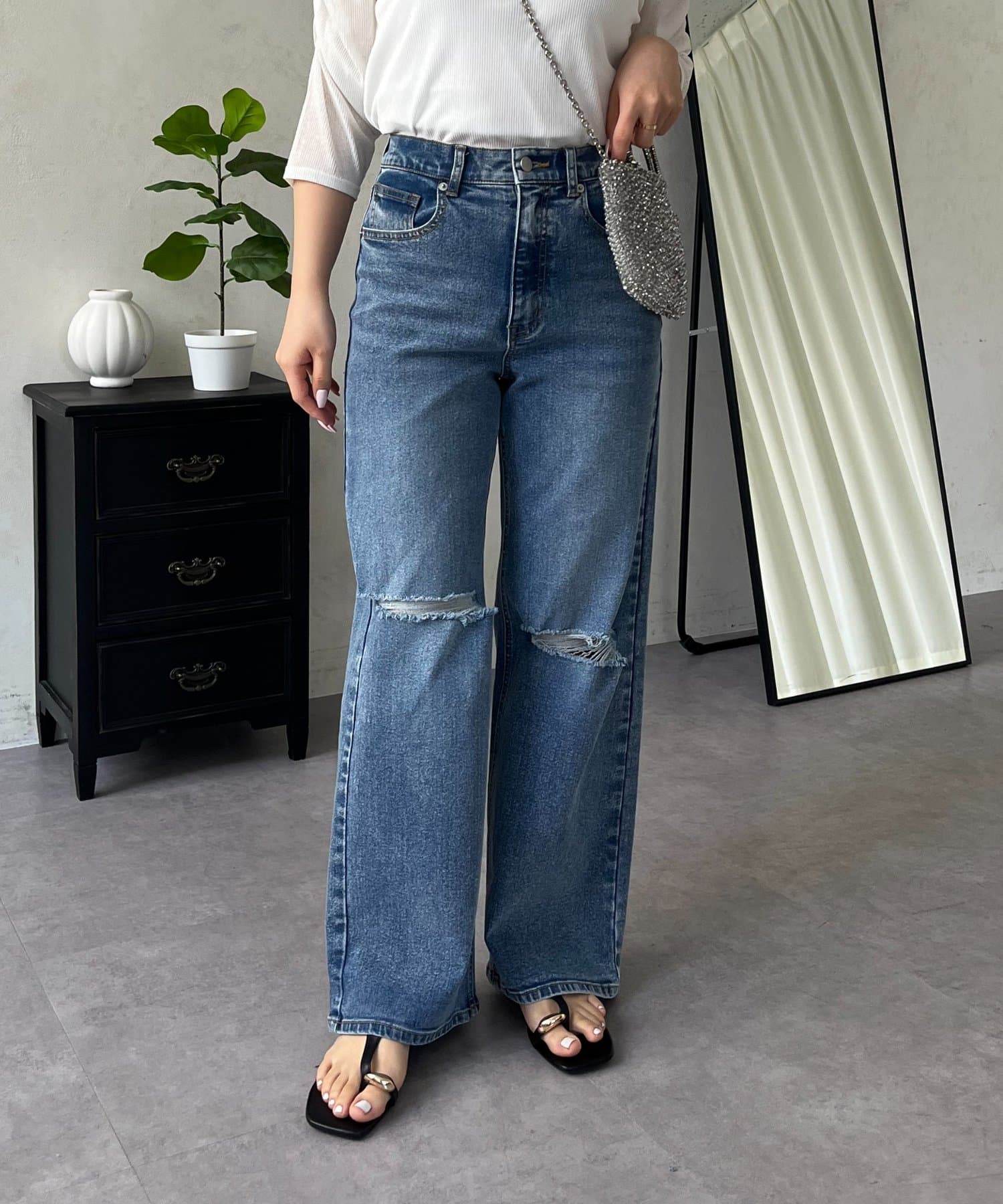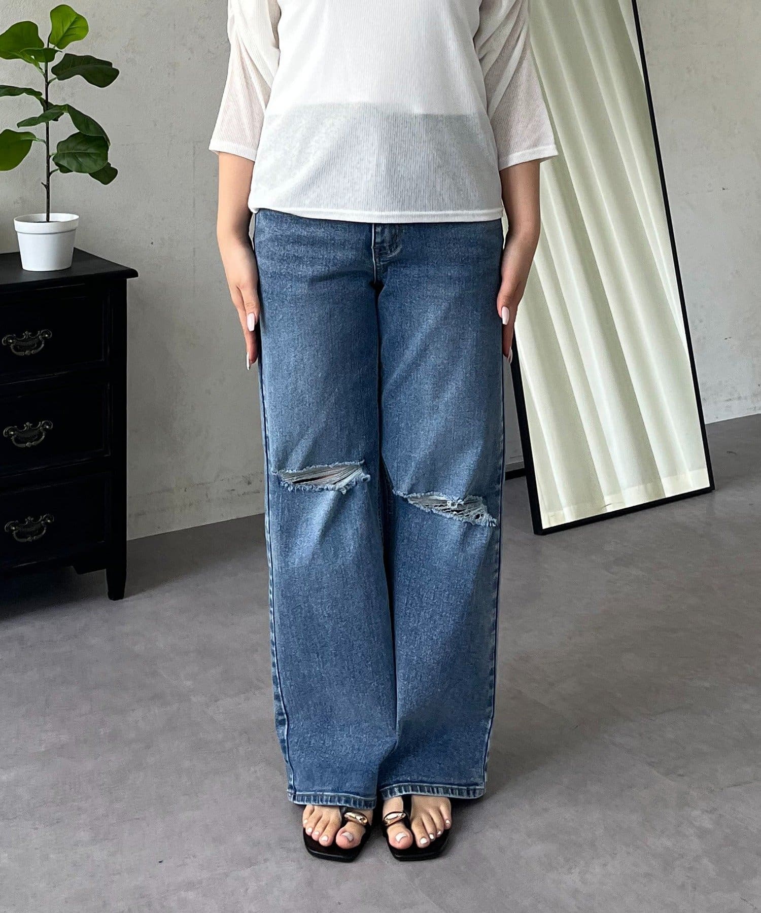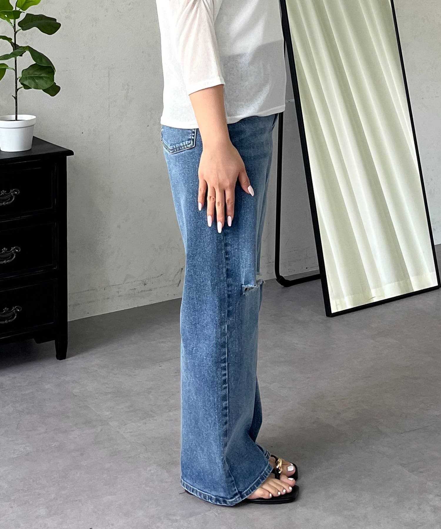 TOP > prose verse > レディース > パンツ > デニムパンツ > 【MOMO】ダメージストレッチストレートデニム