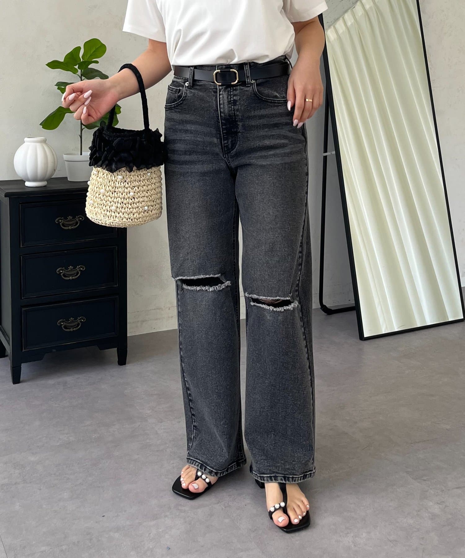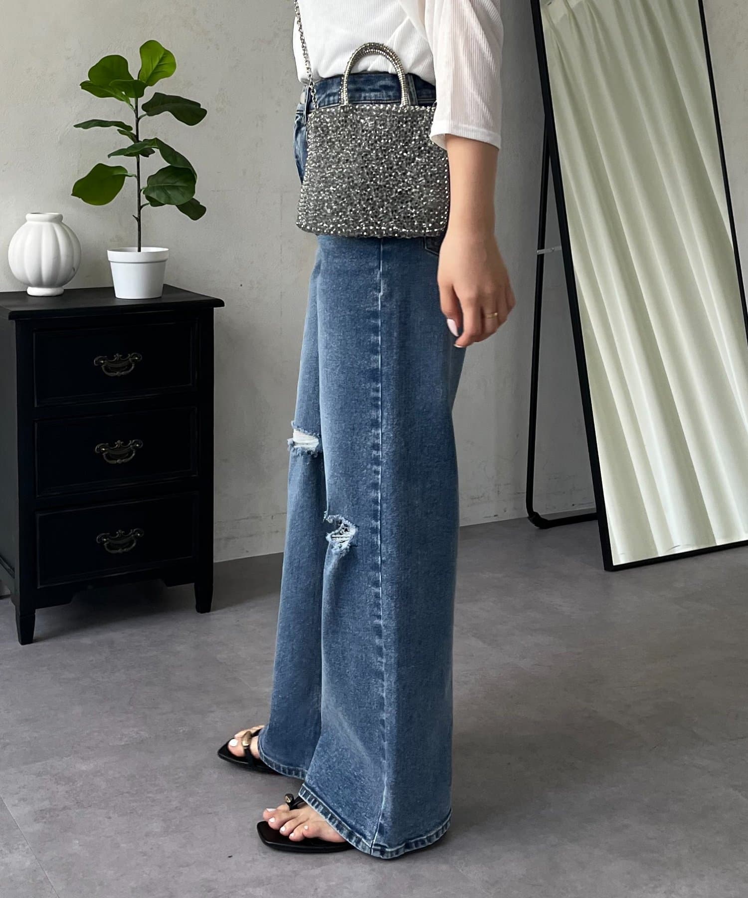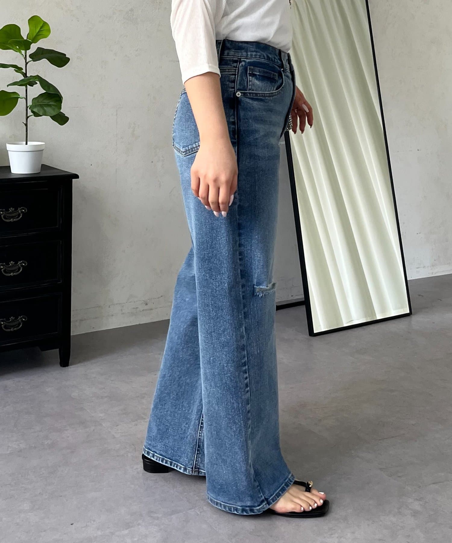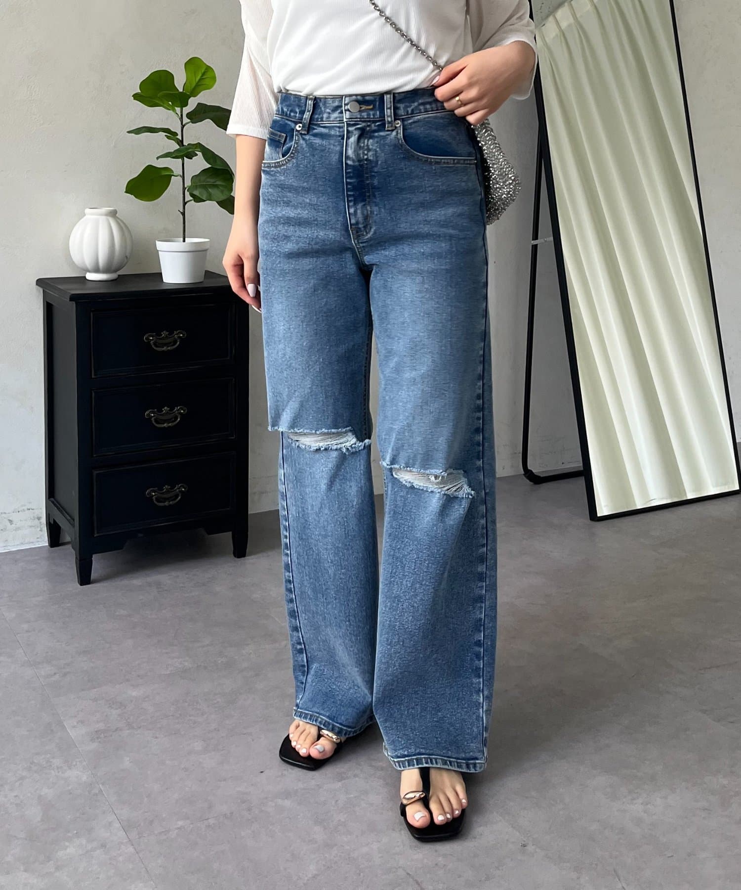 TOP > prose verse > レディース > パンツ > デニムパンツ > 【MOMO】ダメージストレッチストレートデニム