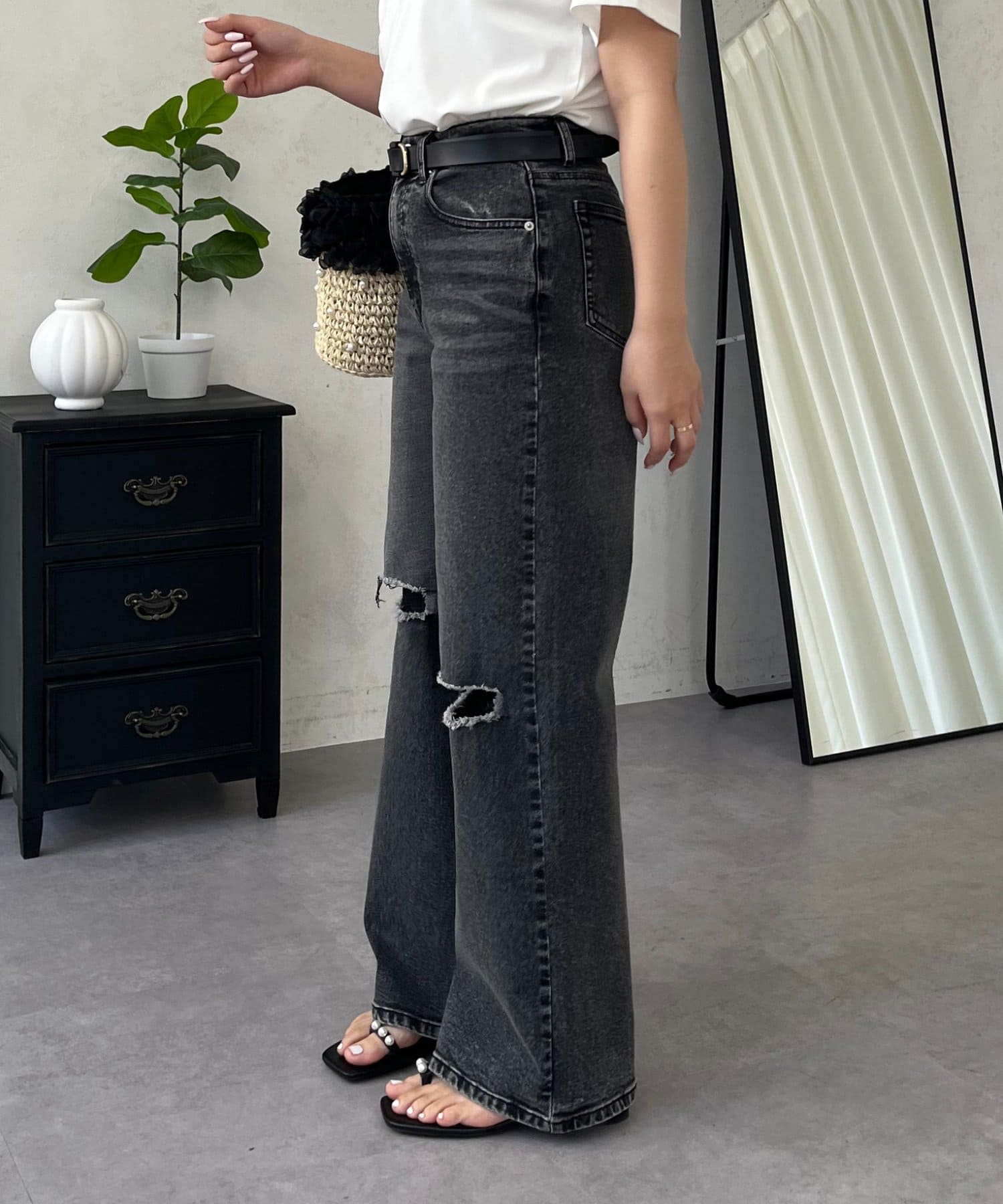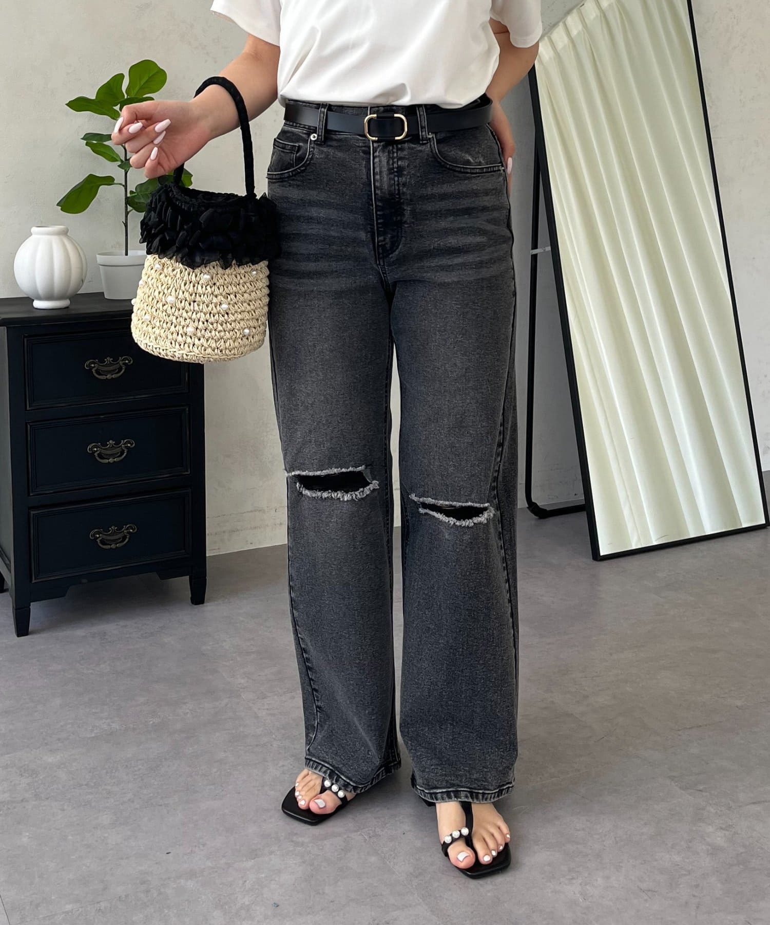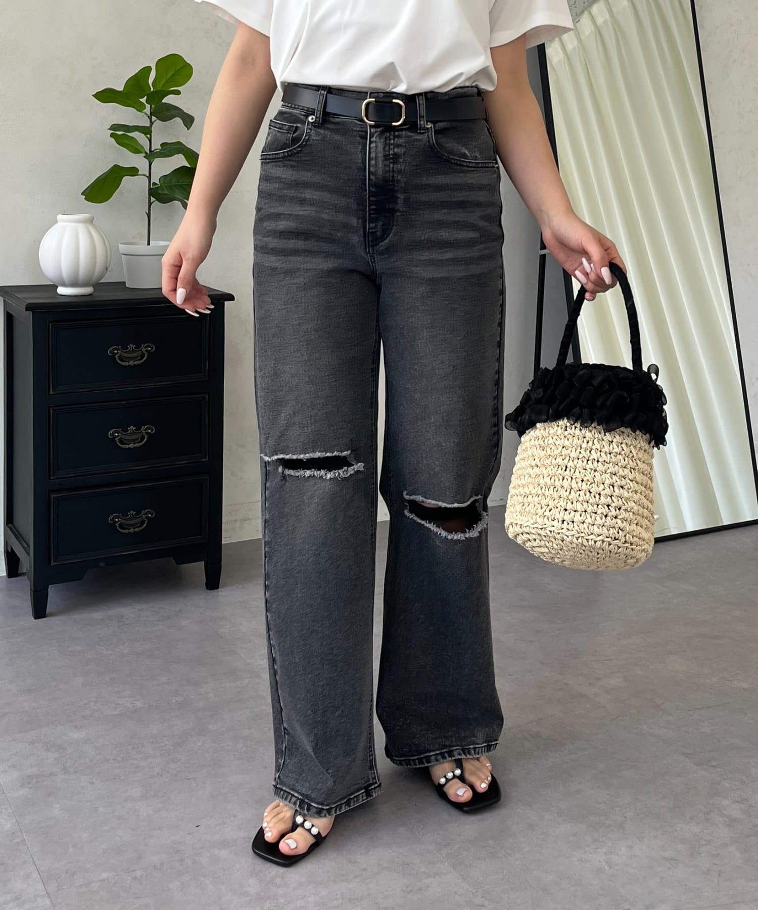 prose verse(プロズヴェール) 【MOMO】ダメージストレッチストレートデニム