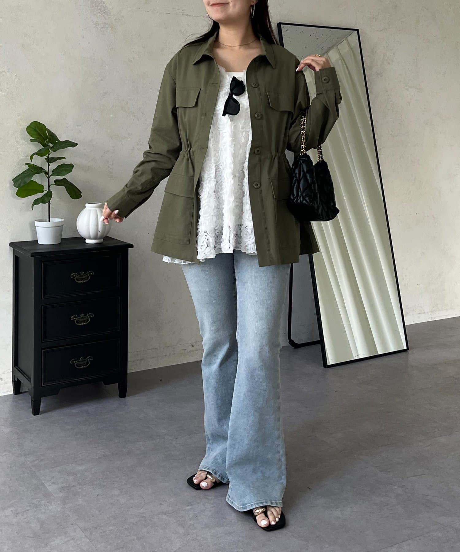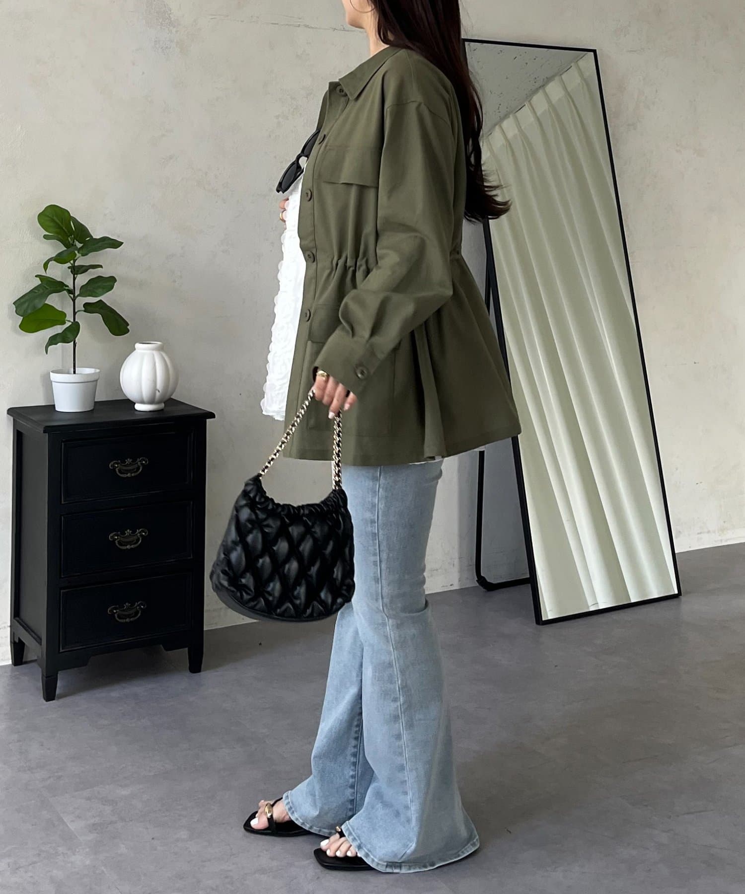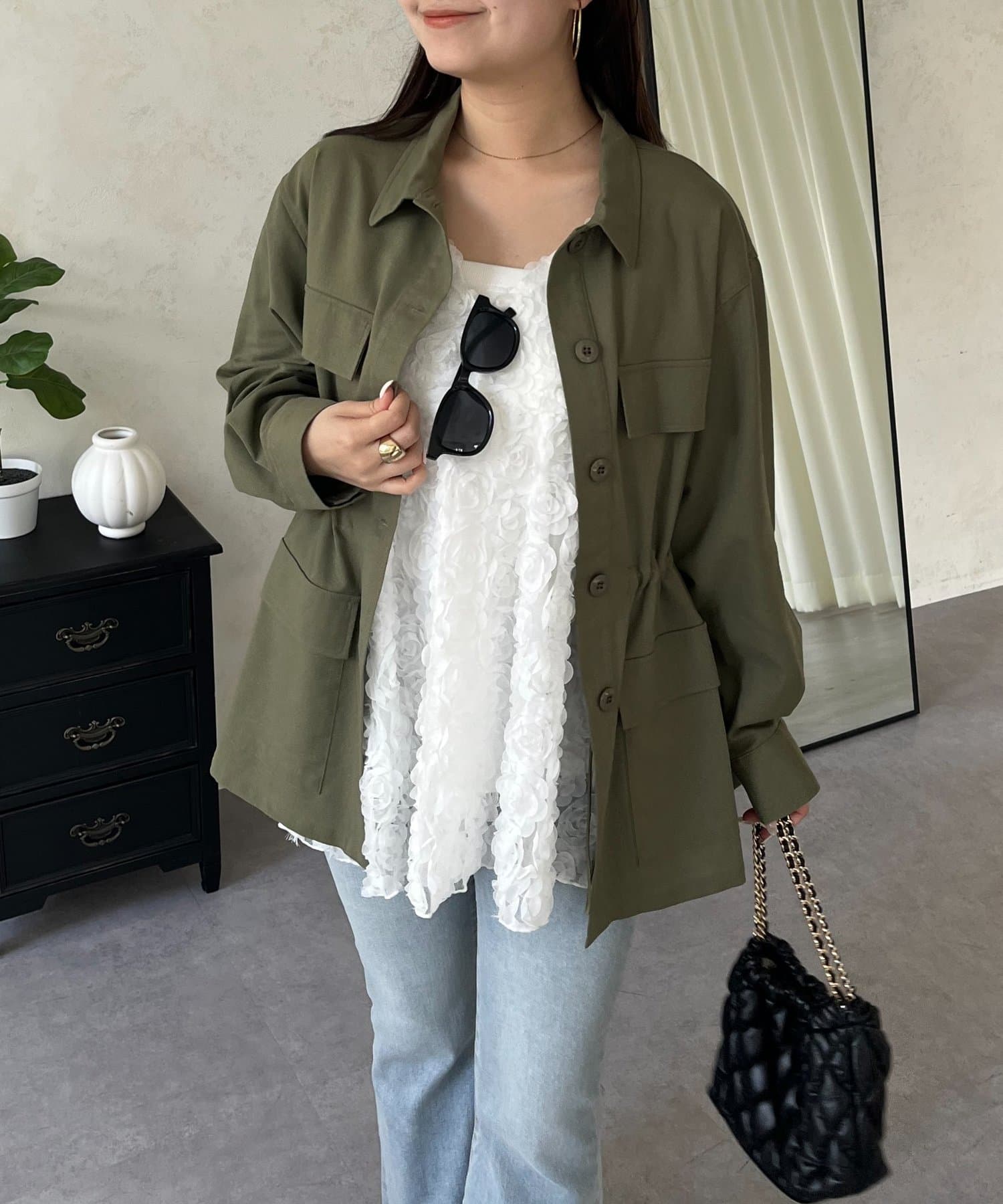 シルエット自在で着回し力抜群!大人のドロストペプラムミリタリーシャツ