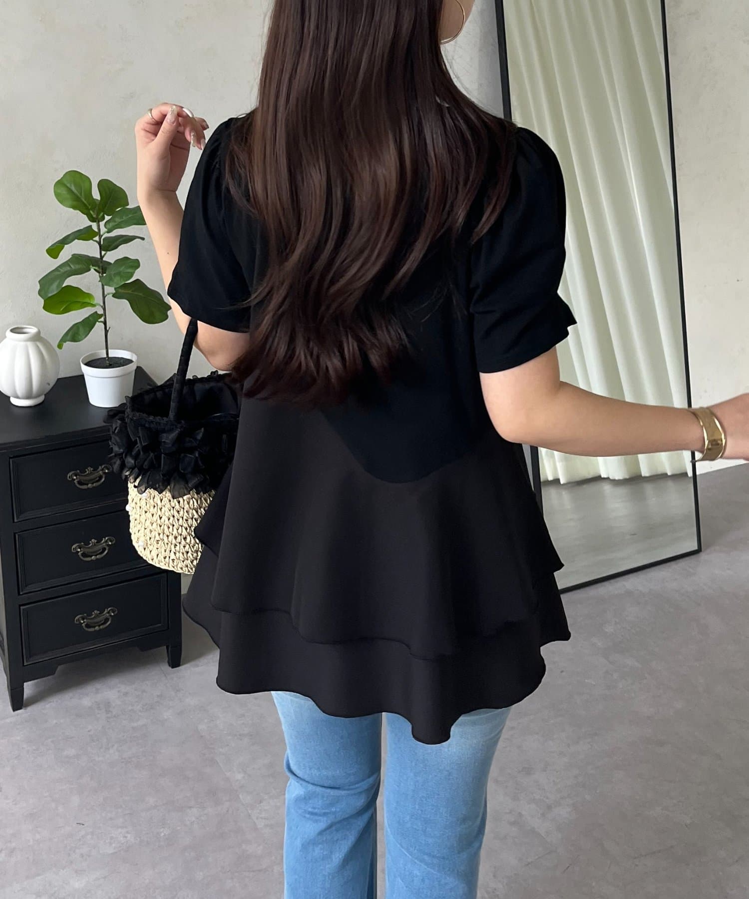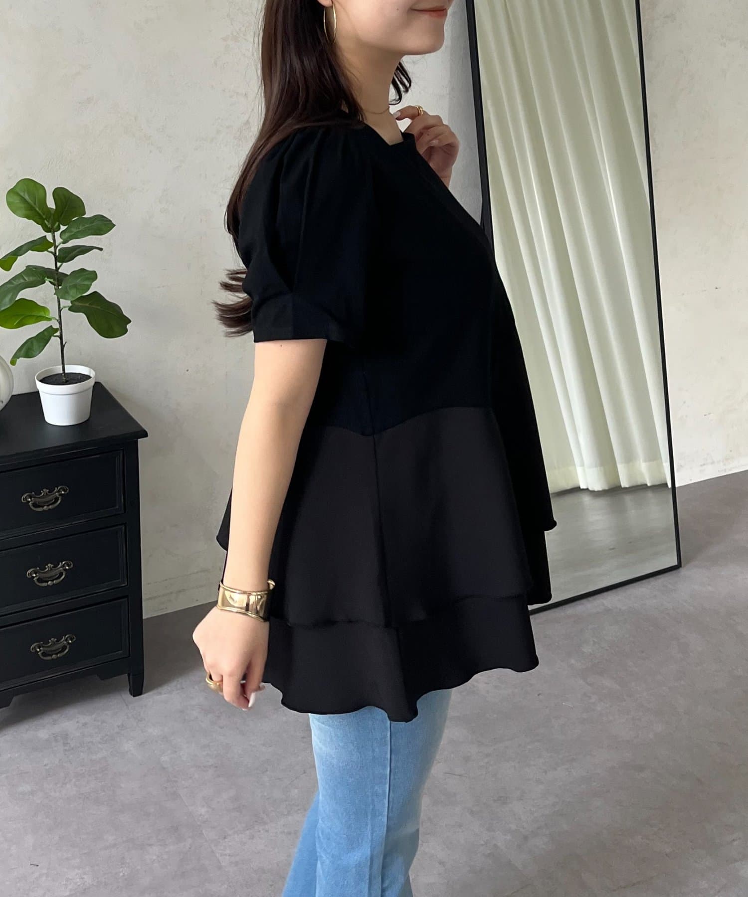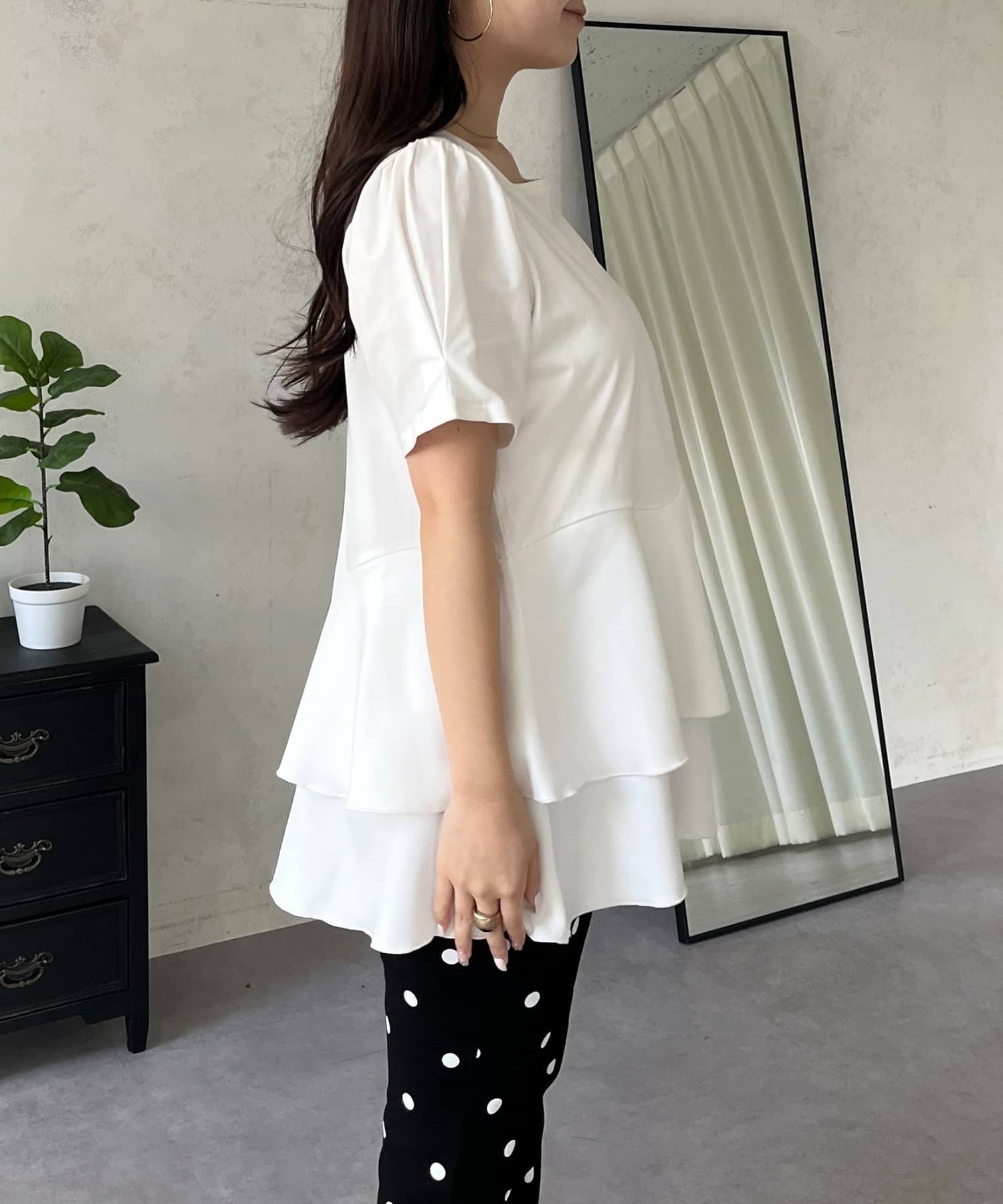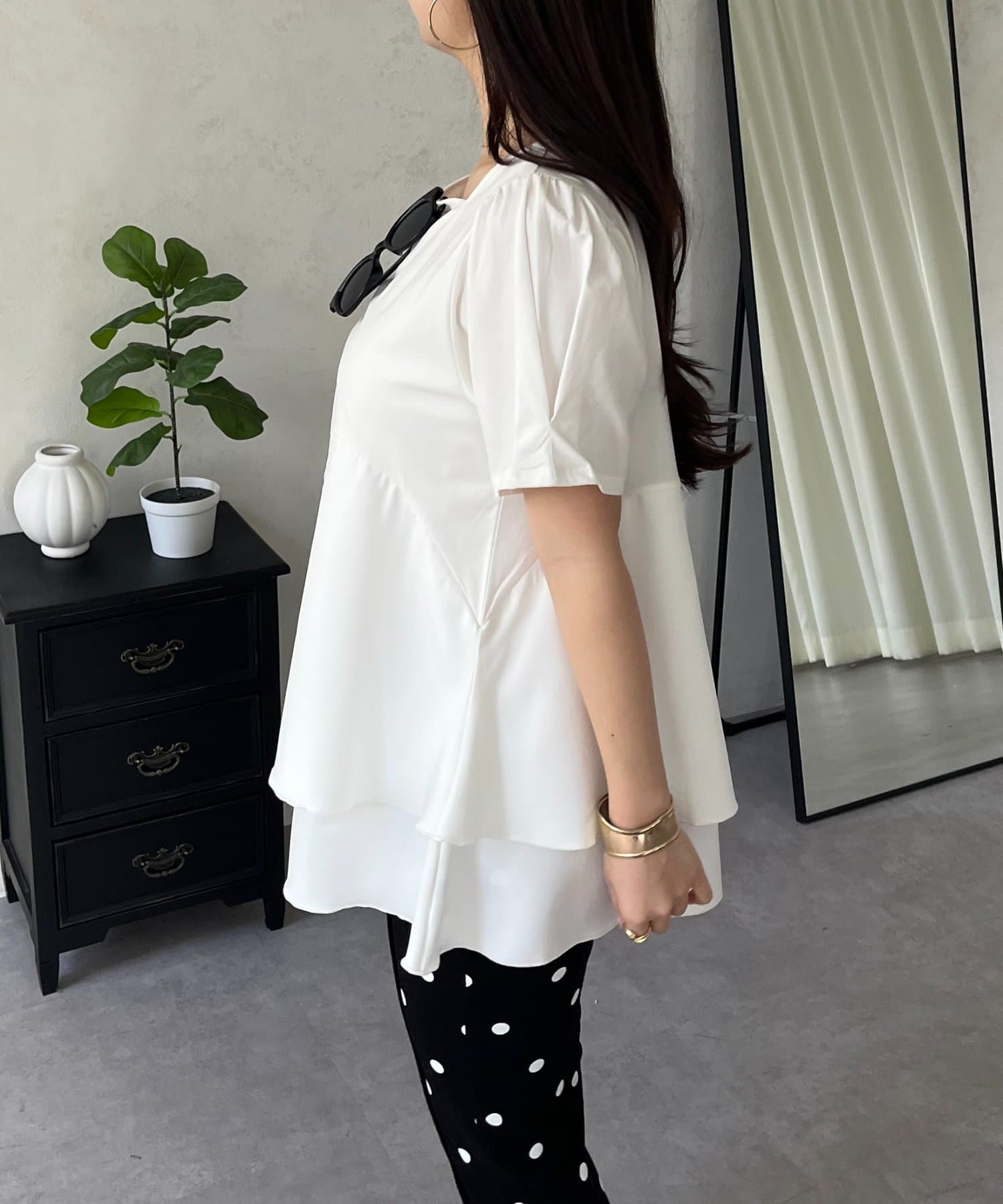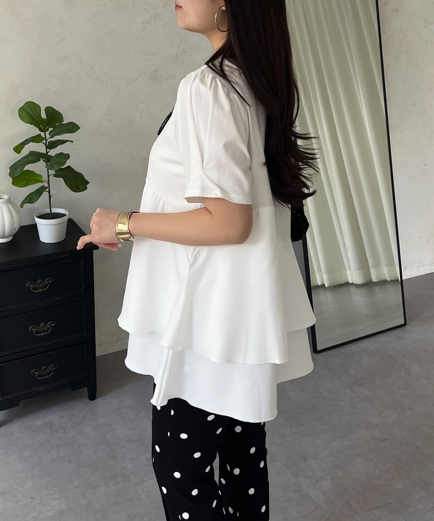 一枚で着映える、大人のための異素材ドッキングティアードTシャツ