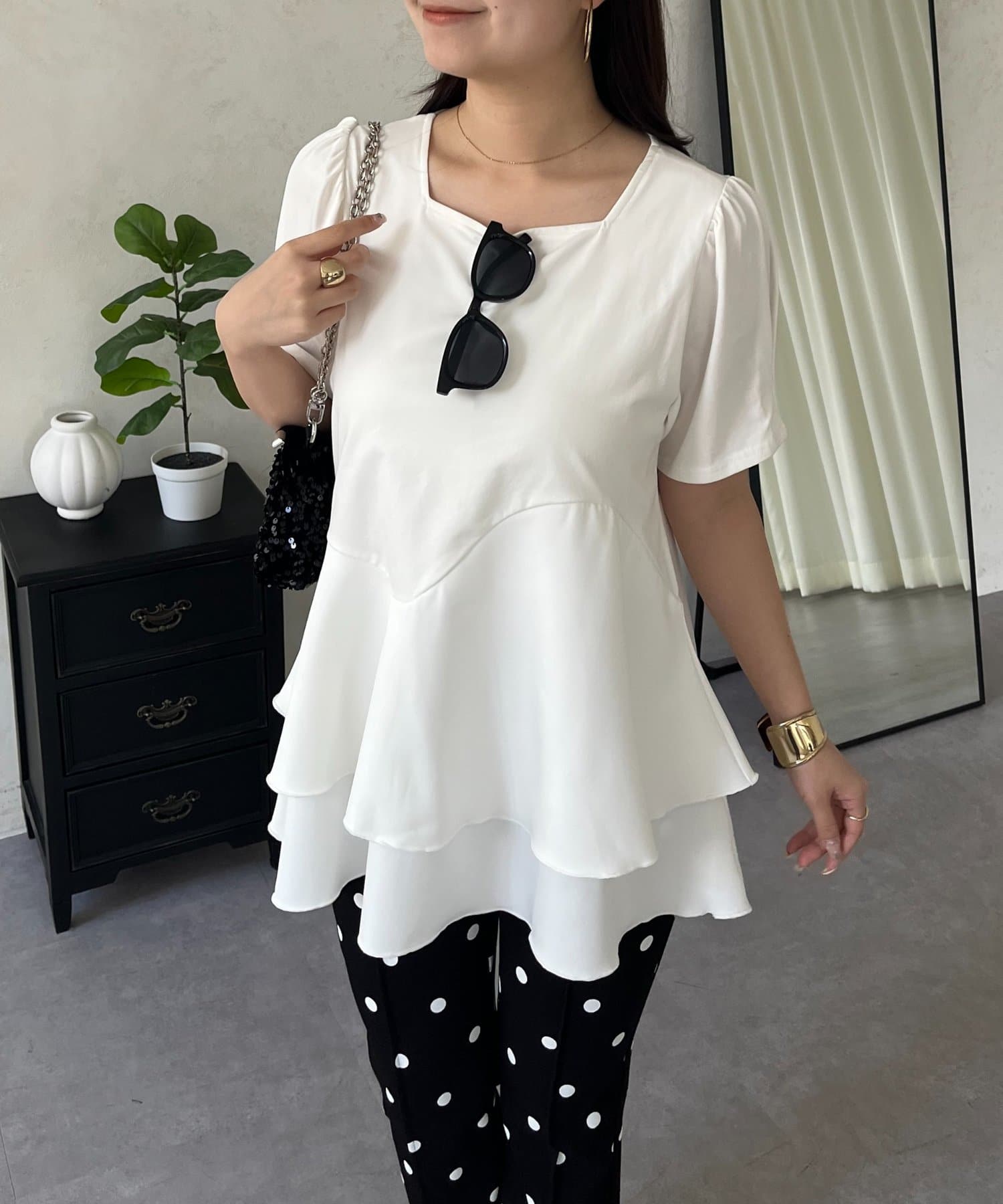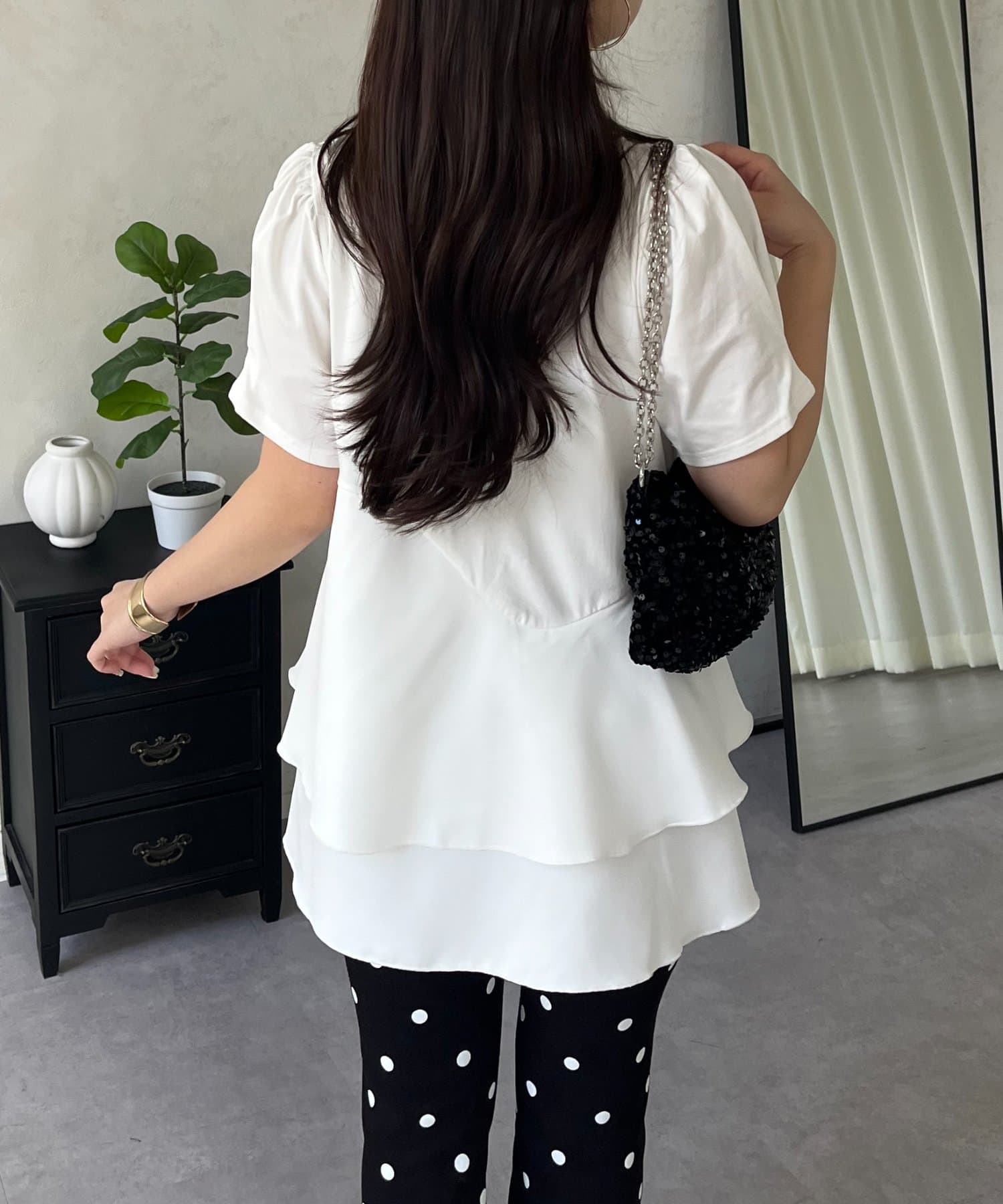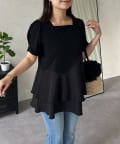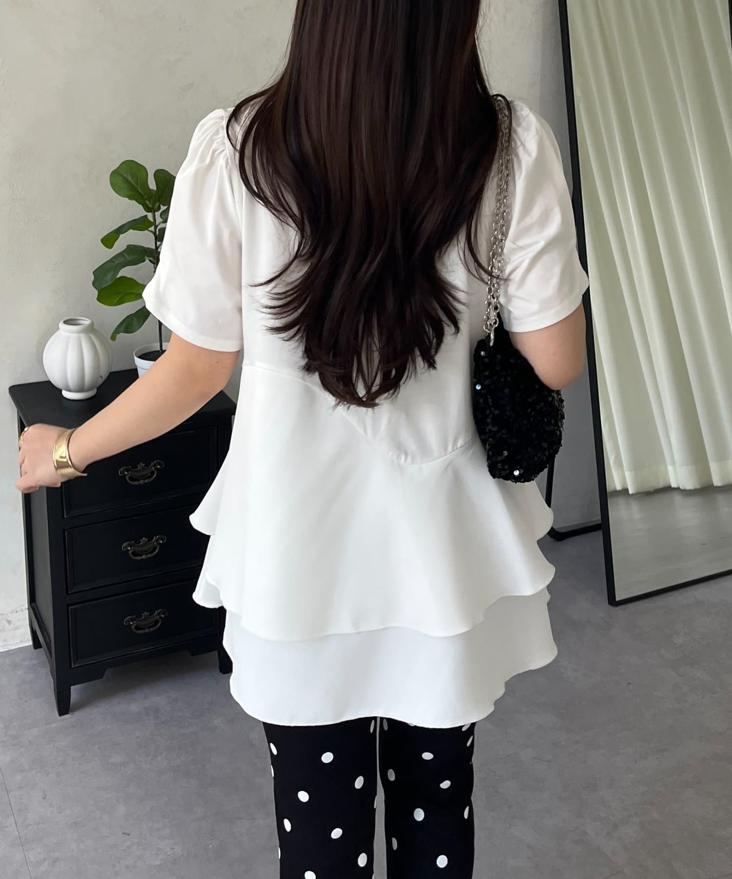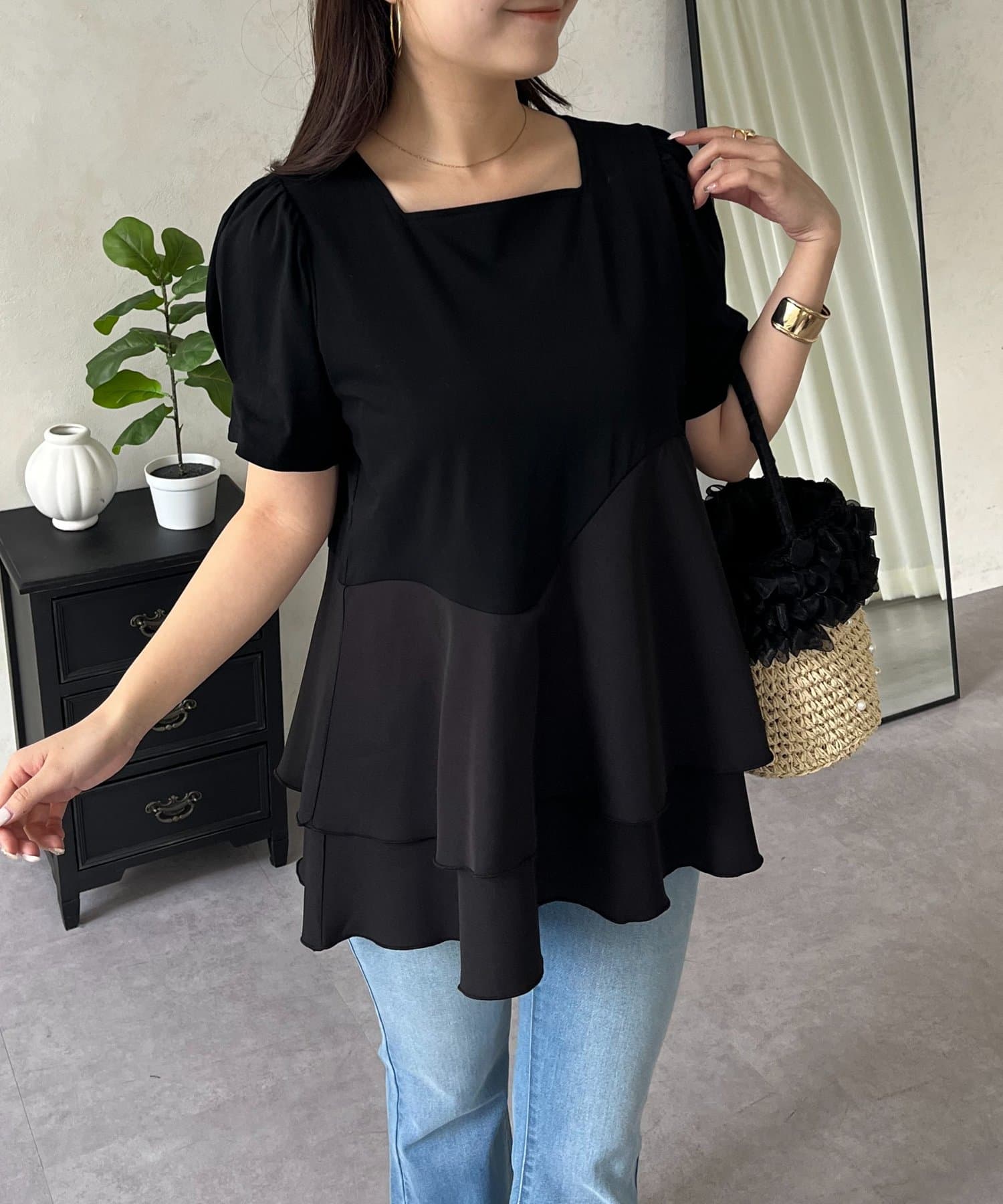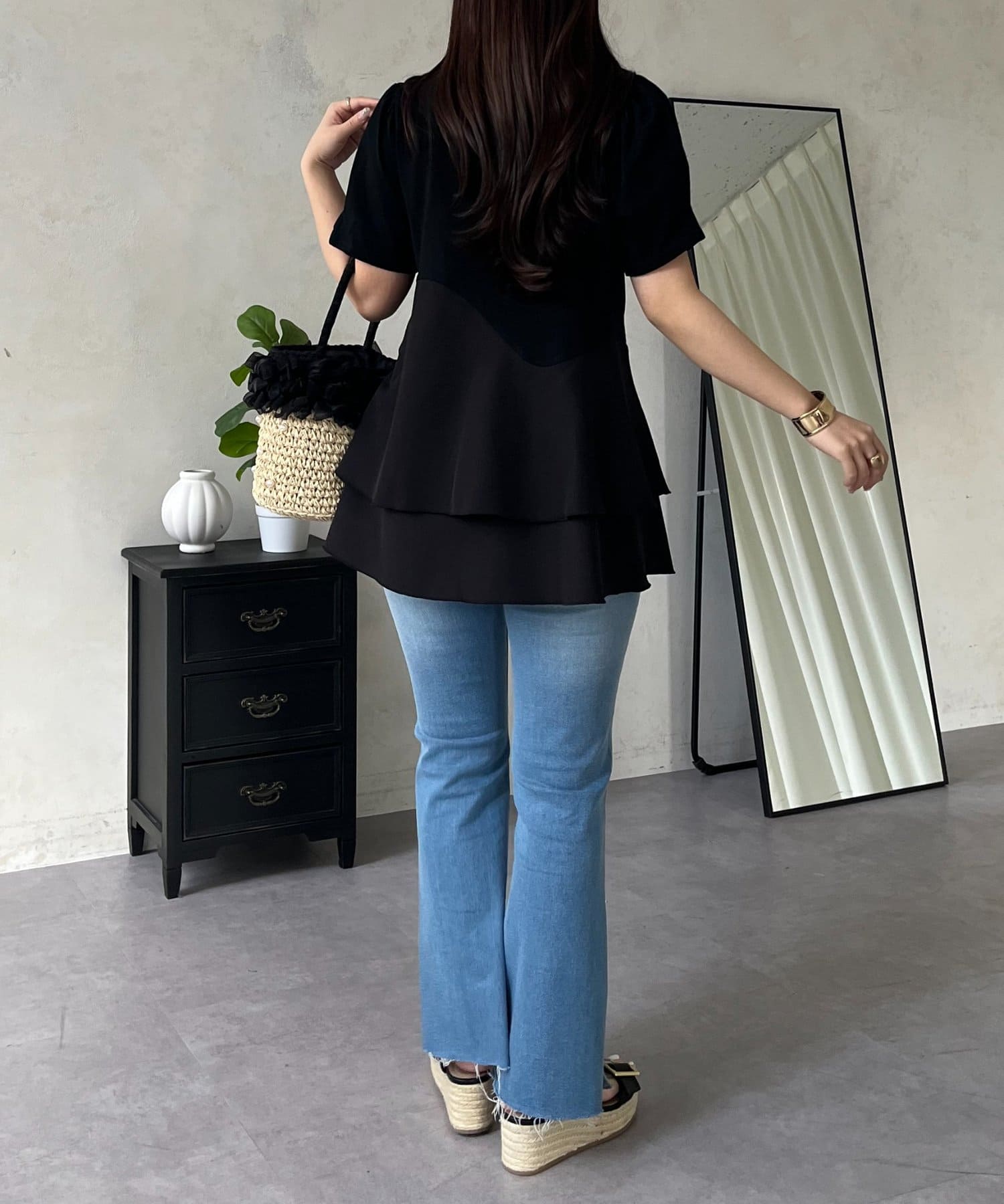 一枚で着映える、大人のための異素材ドッキングティアードTシャツ