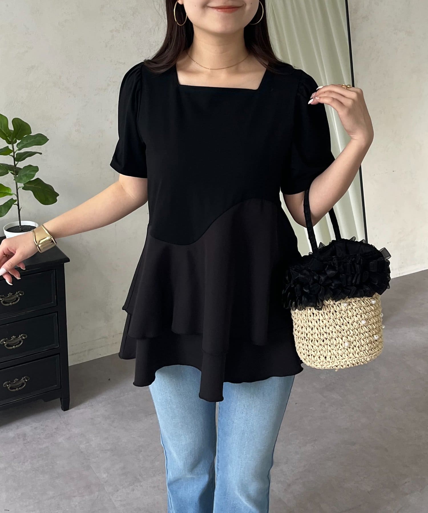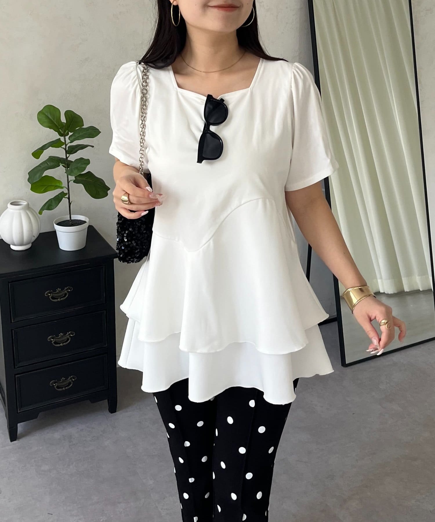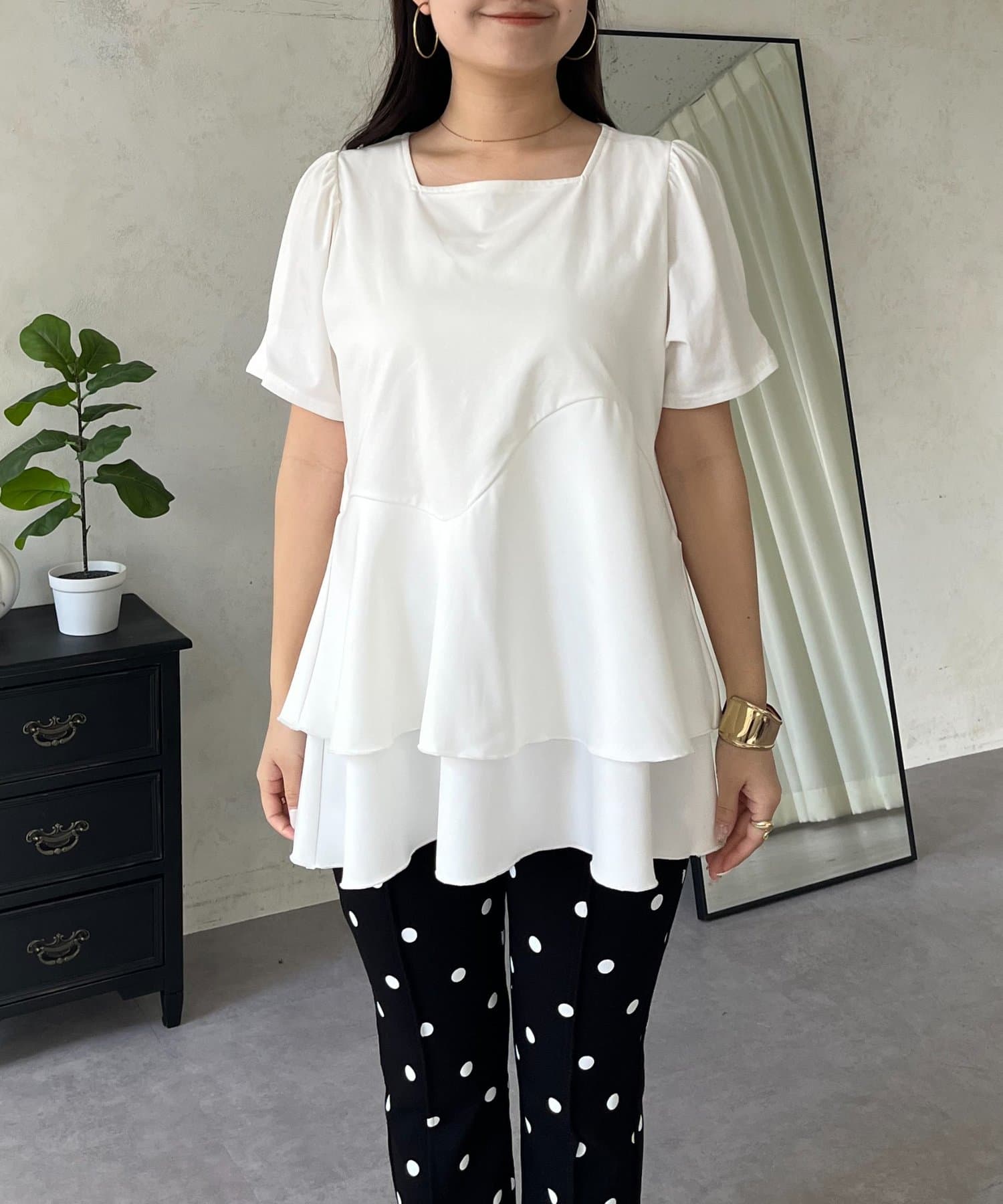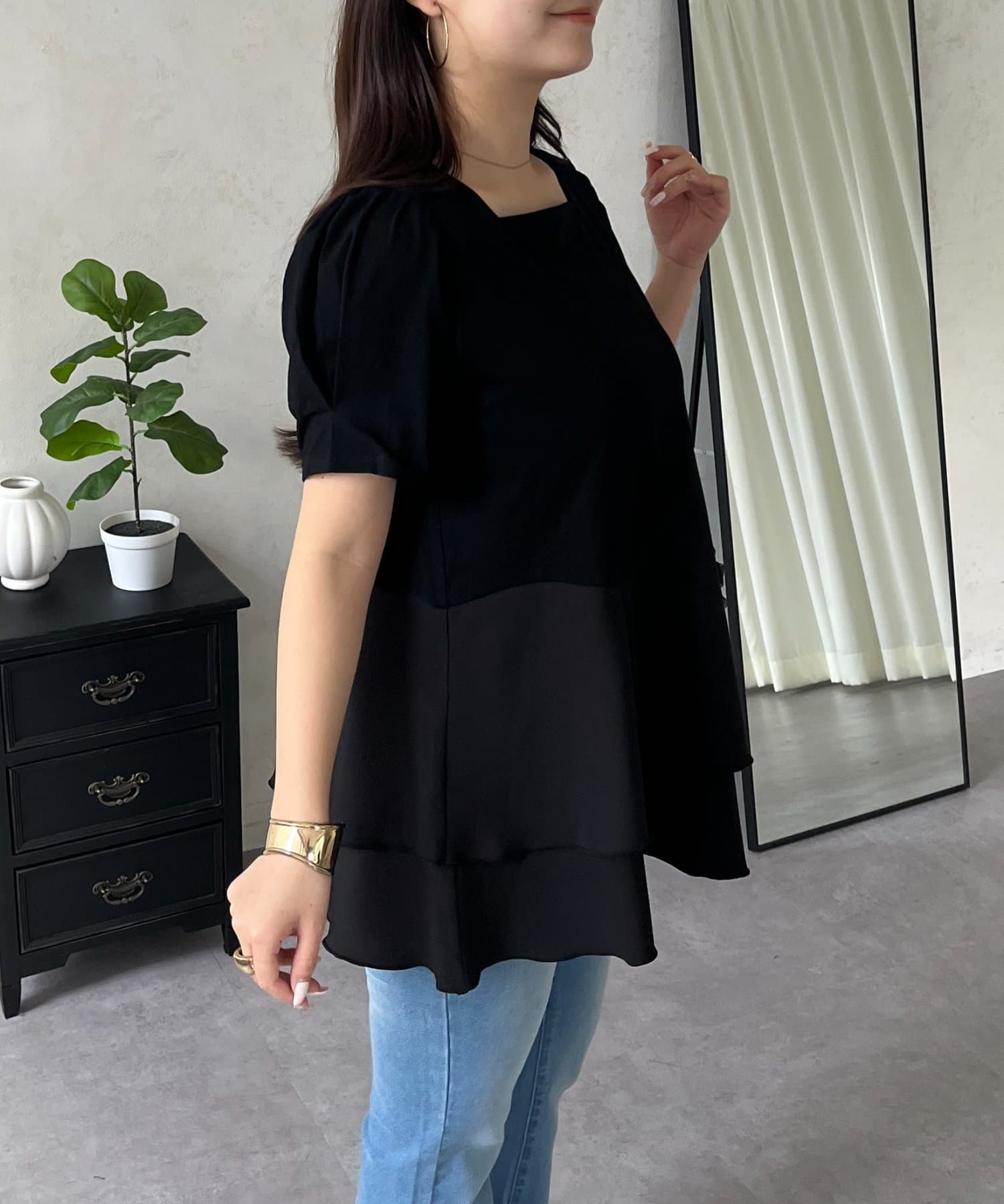 一枚で着映える、大人のための異素材ドッキングティアードTシャツ