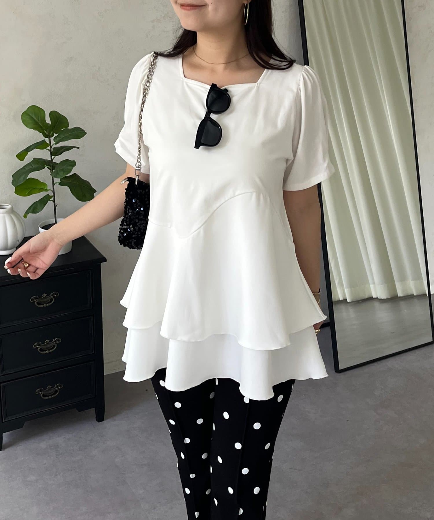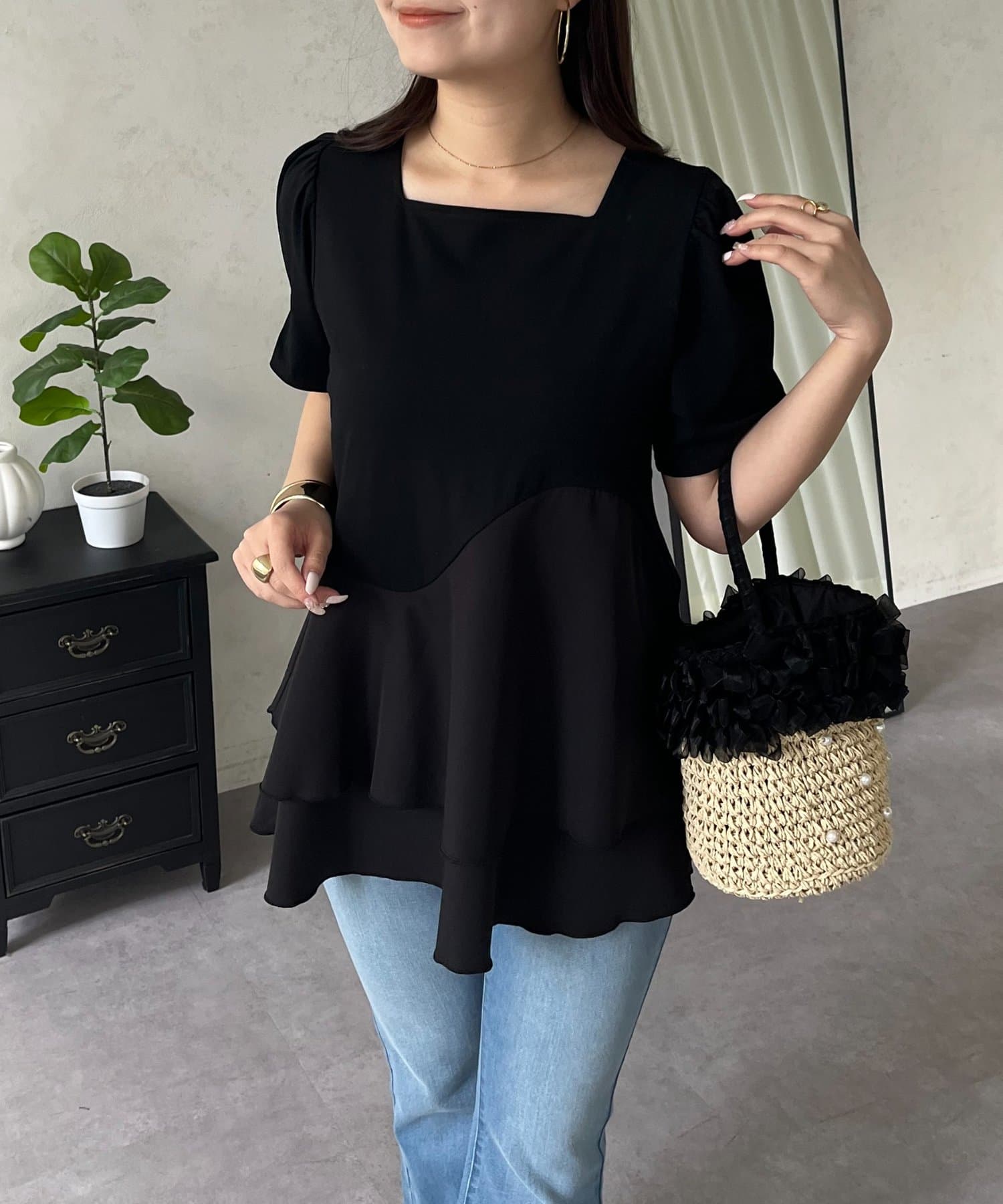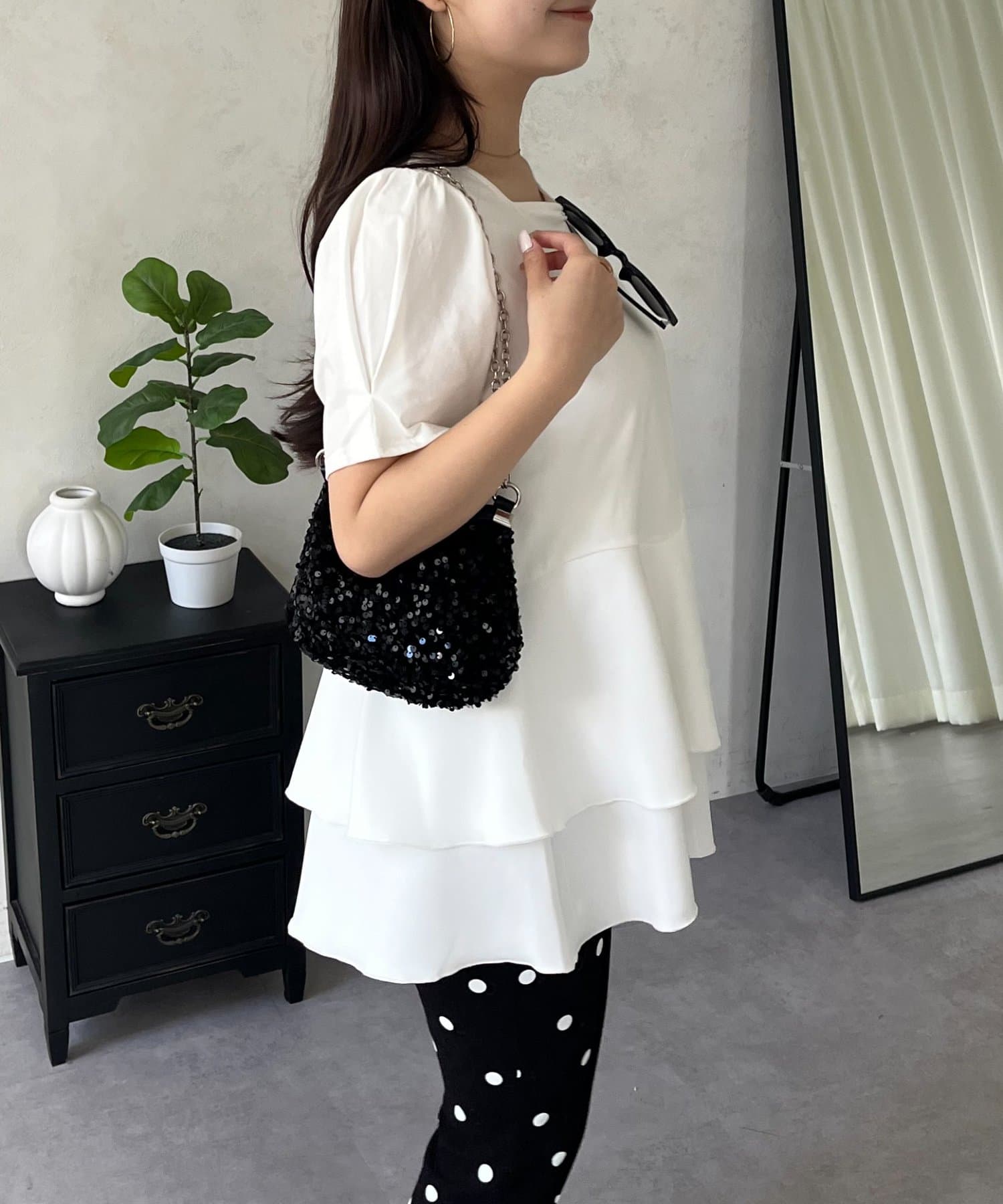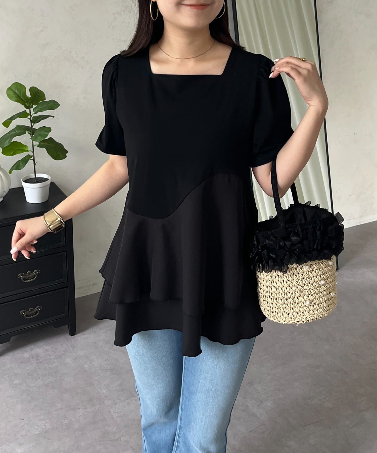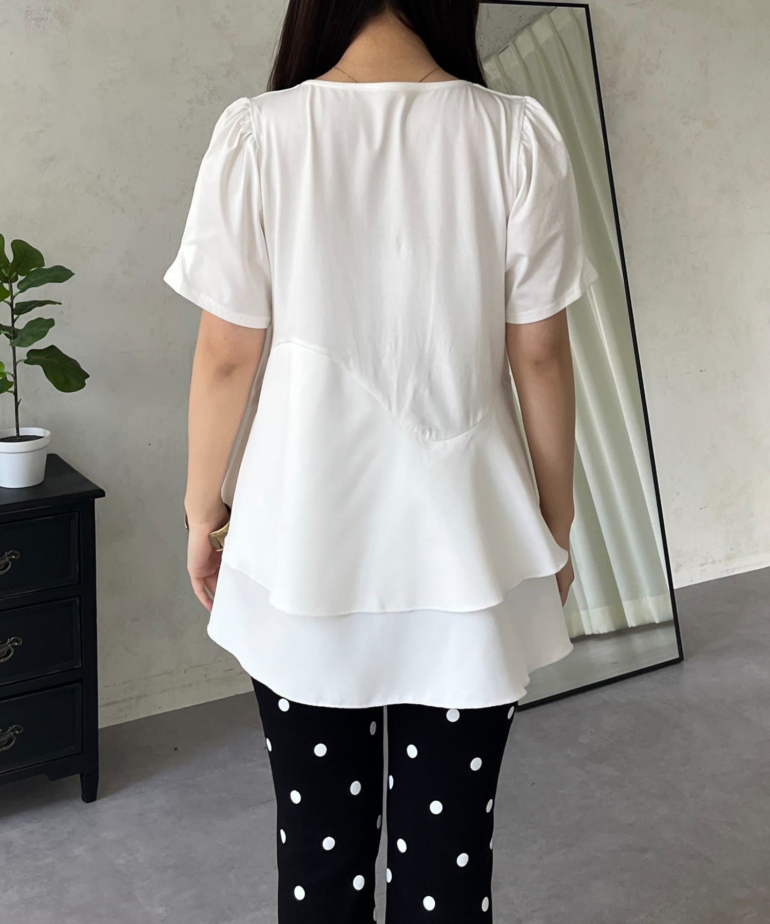一枚で着映える、大人のための異素材ドッキングティアードTシャツ