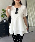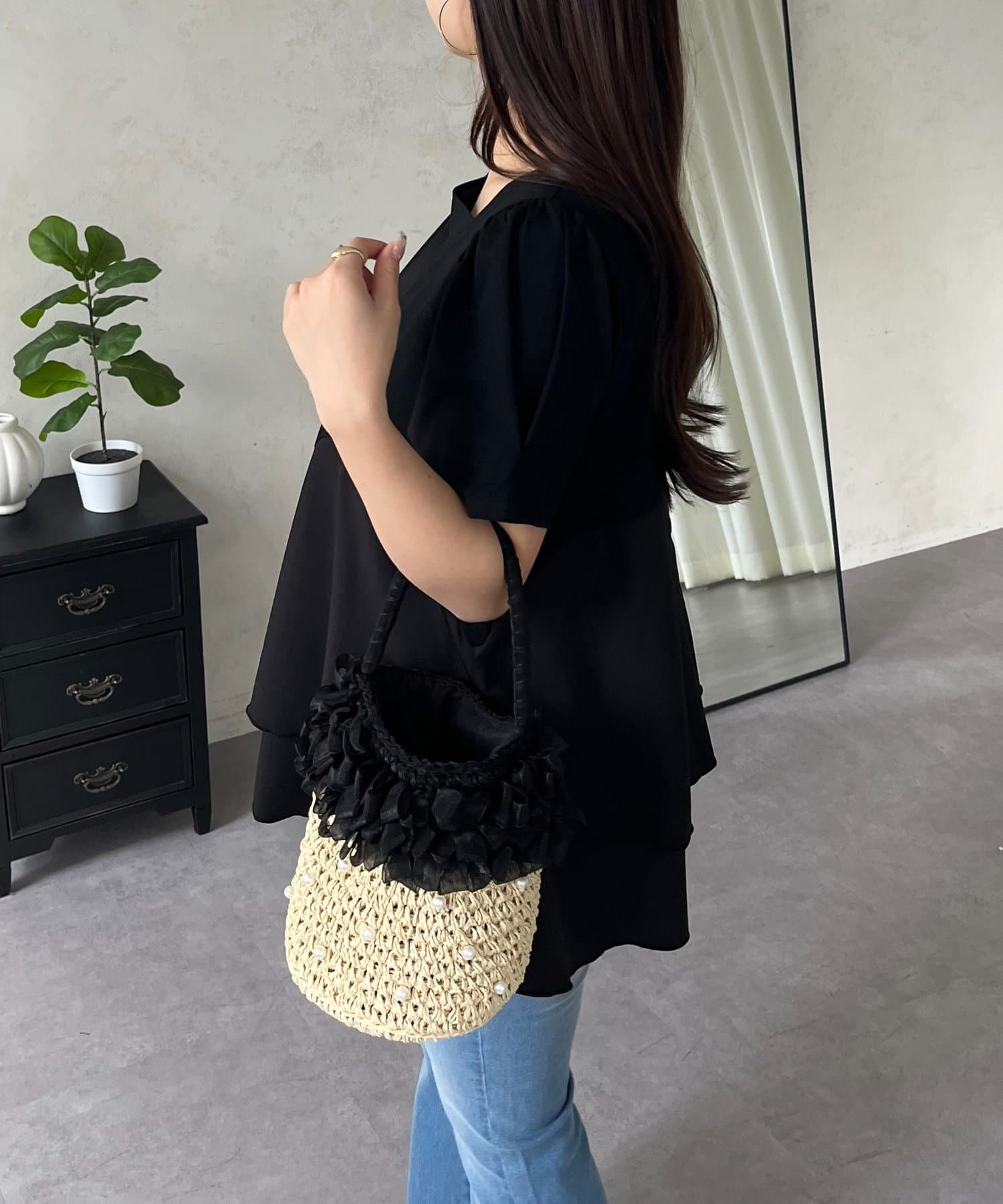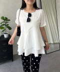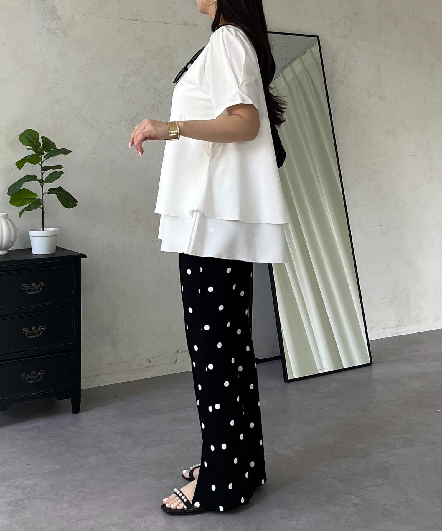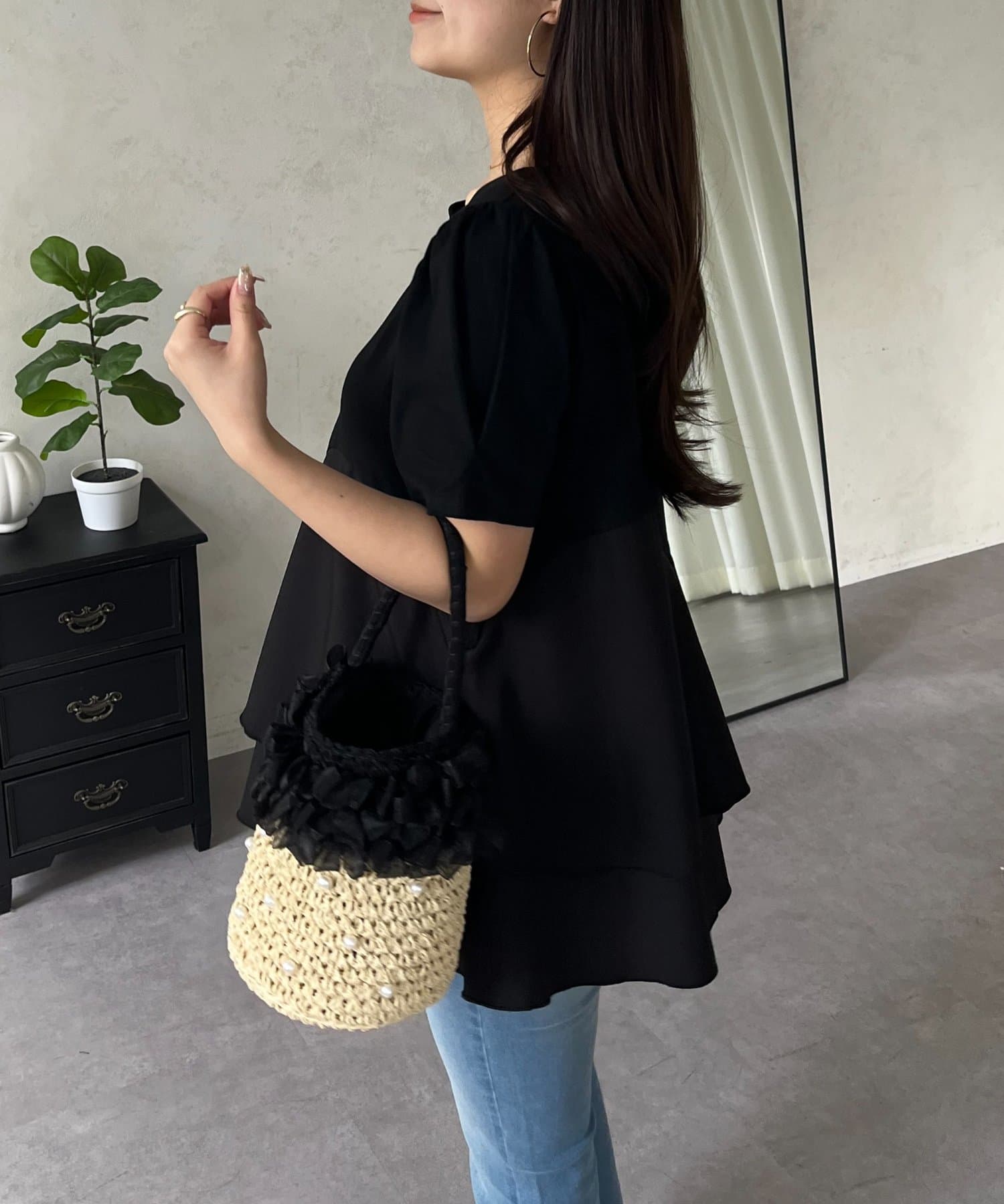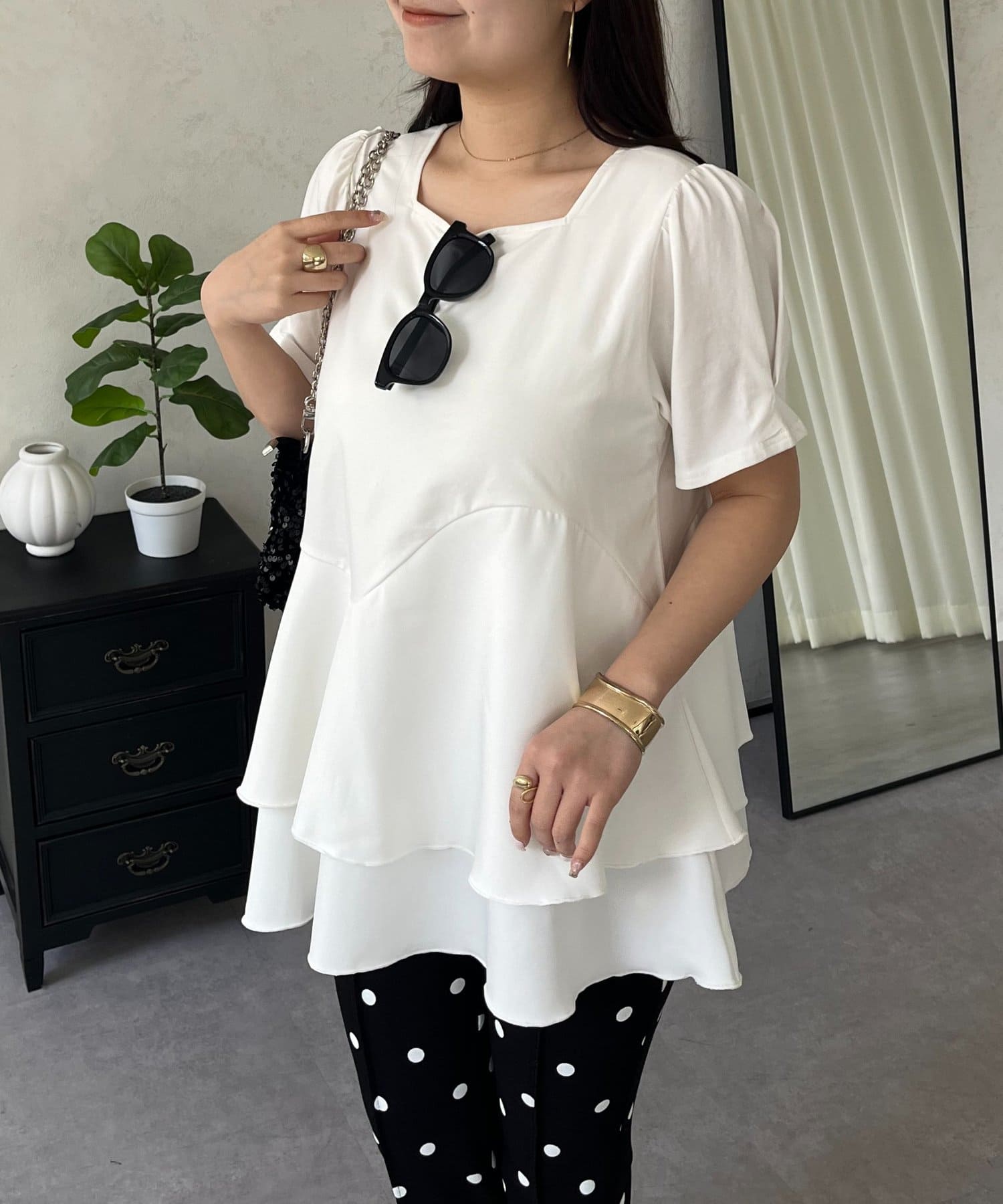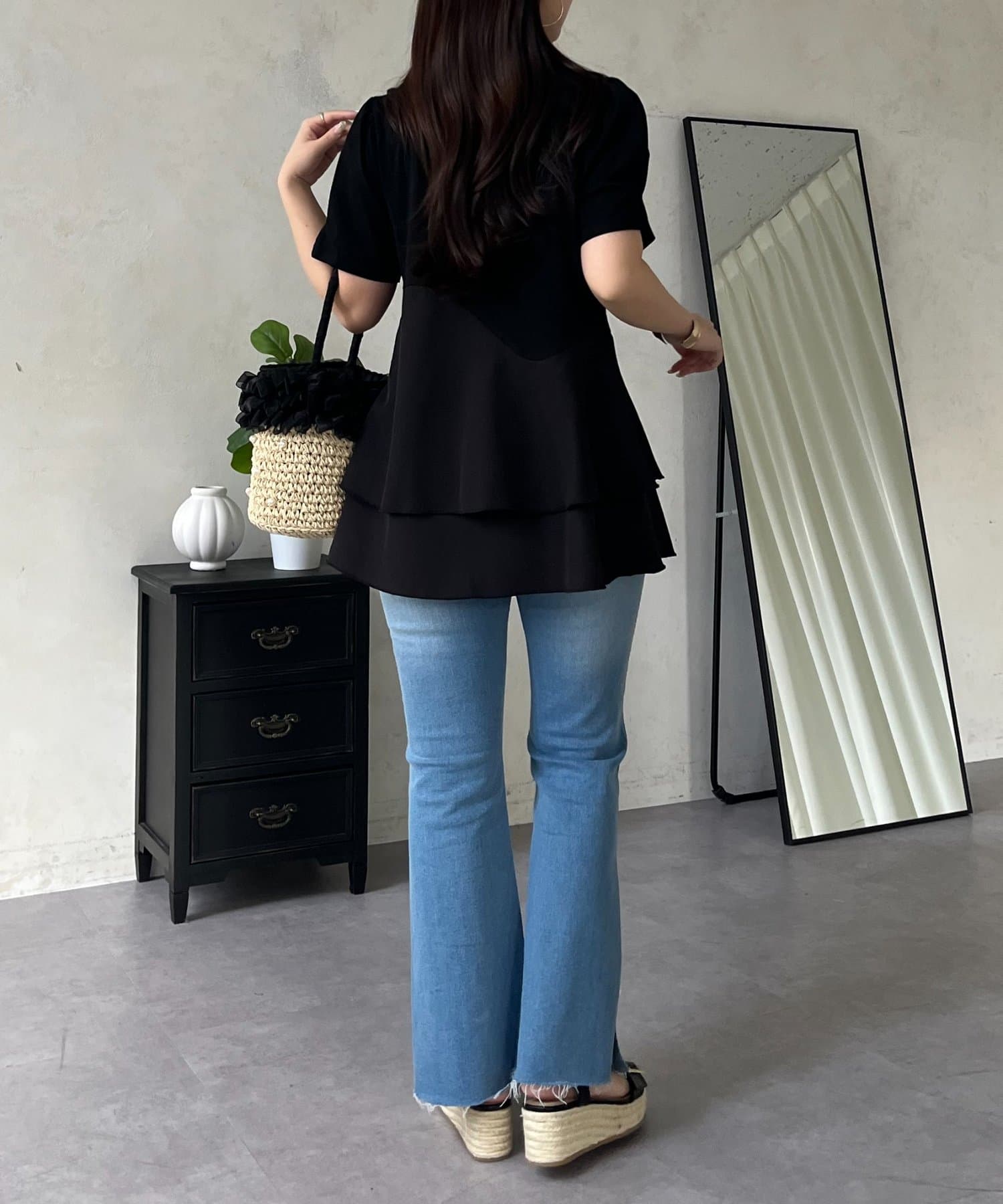 一枚で着映える、大人のための異素材ドッキングティアードTシャツ