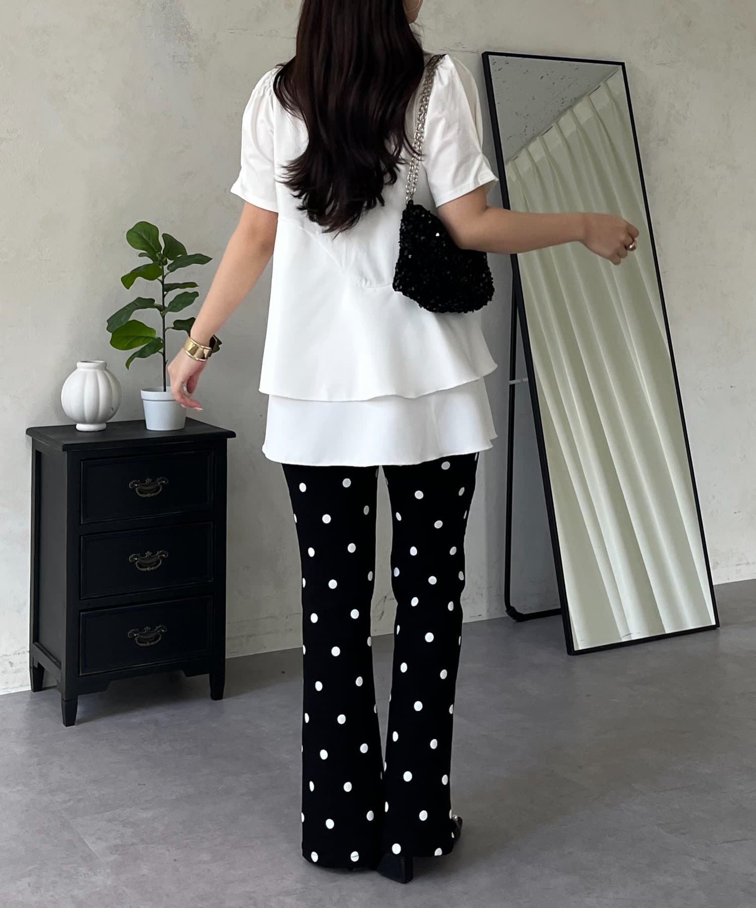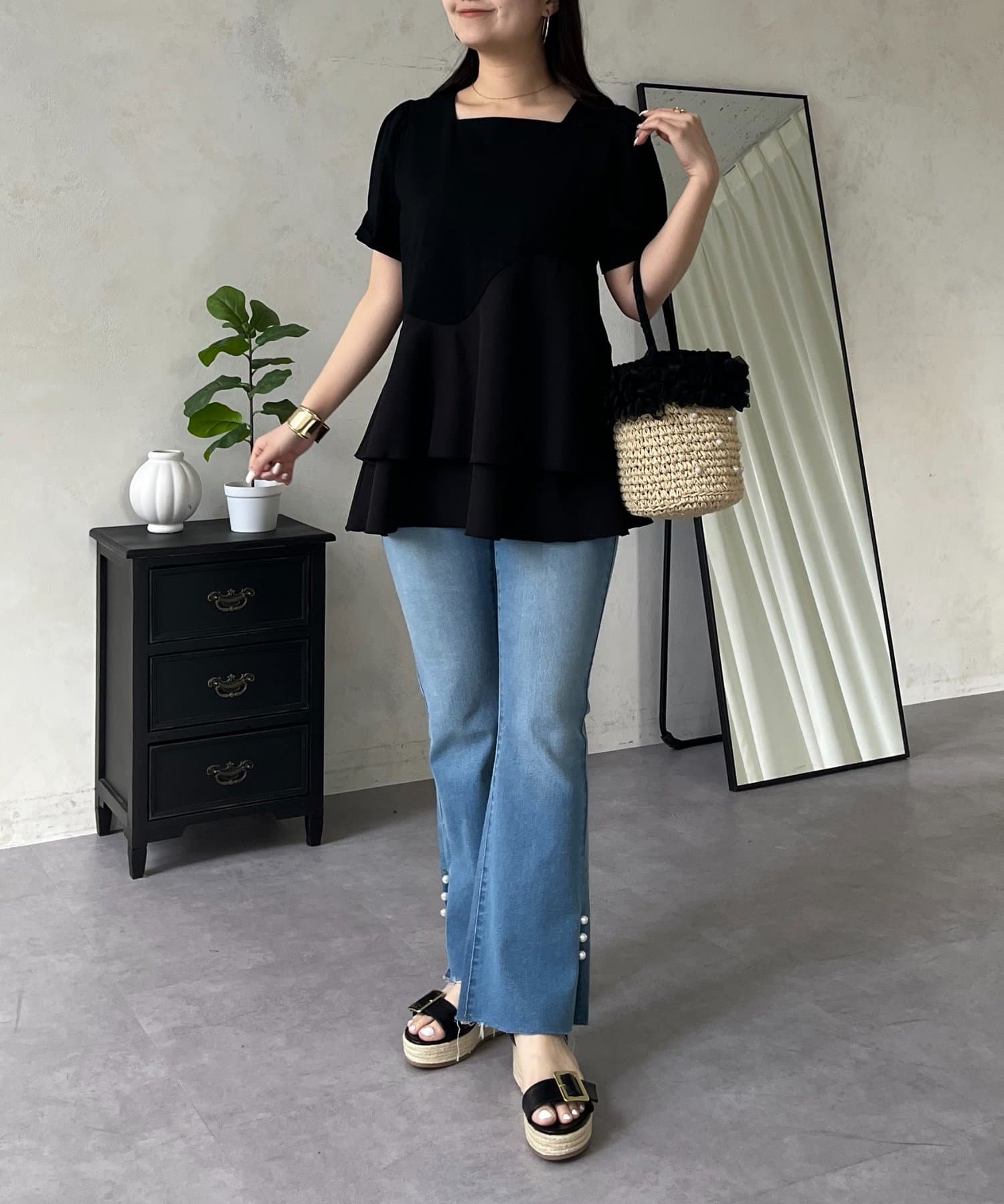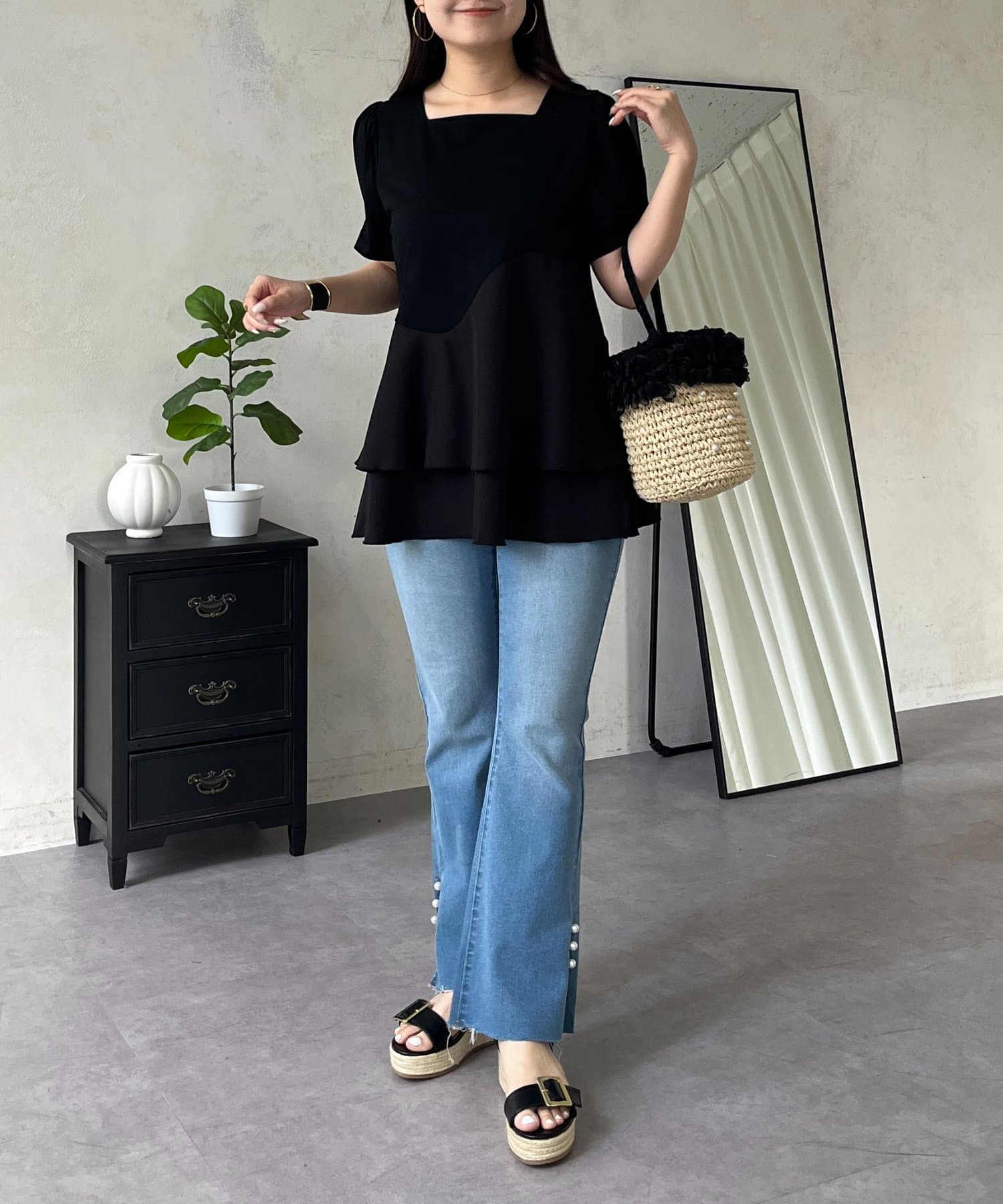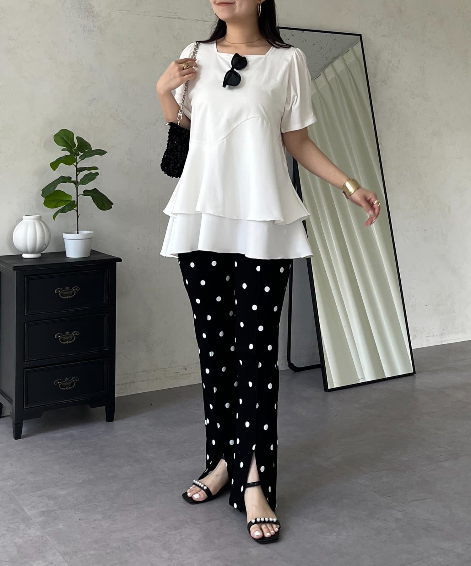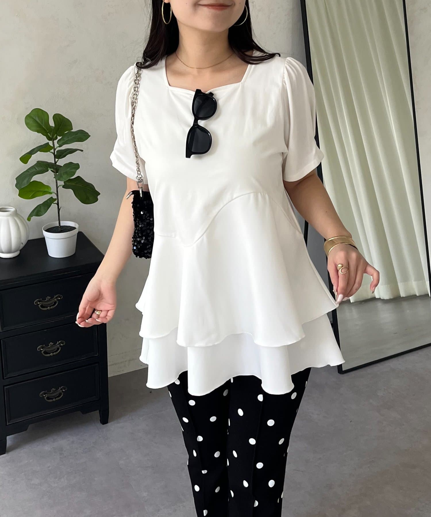 ●カットソー素材の快適さと、ティアードデザインがドッキングした一枚で着映えるトップス