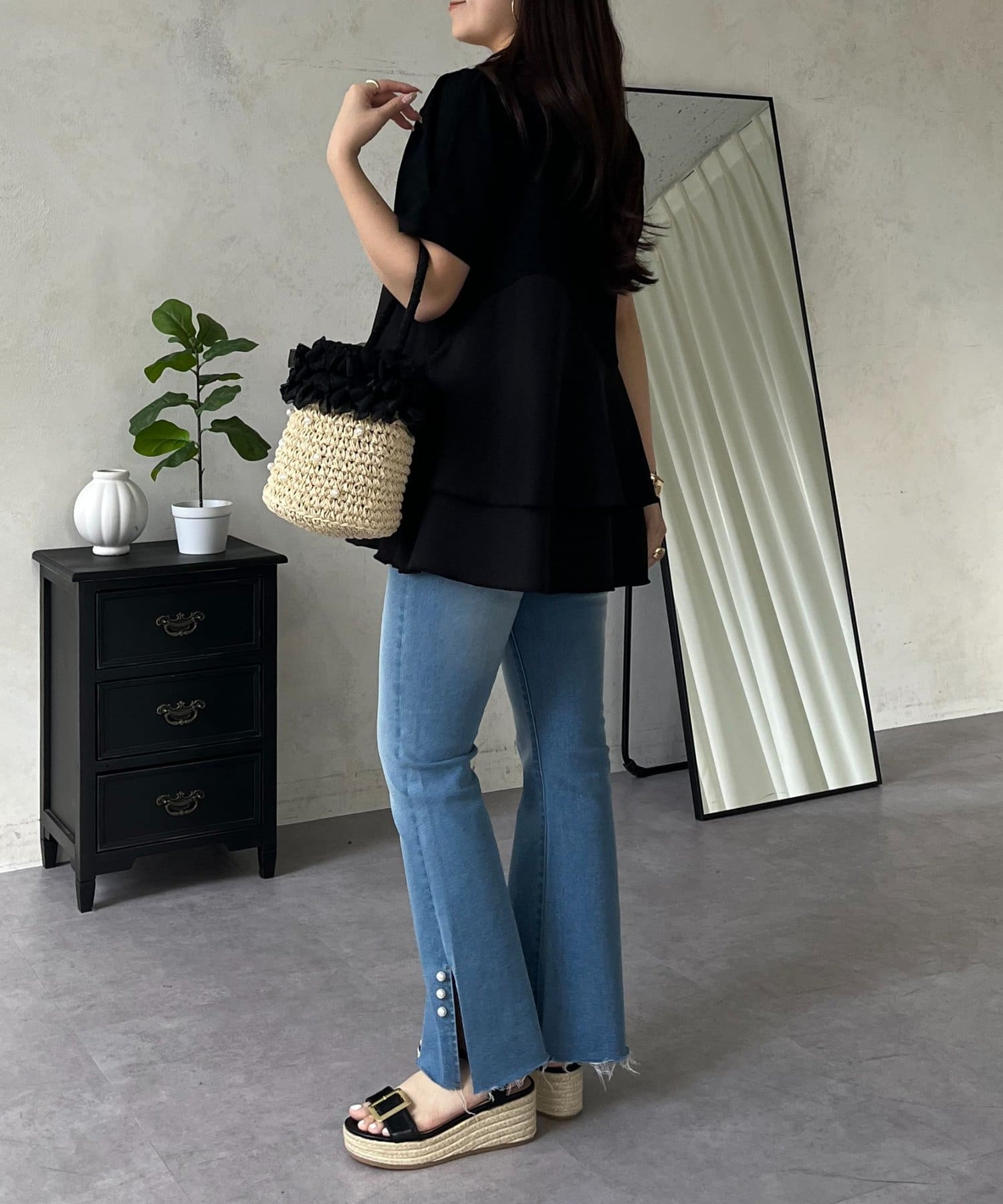 ●デニムでカジュアルにも、きれいめパンツやスカートでオフィススタイルにも着回せる万能さが魅力♩