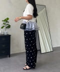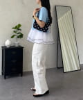 ●裾にあしらわれたバイカラーのラインが、コーディネート全体をきゅっと引き締めるアクセントに