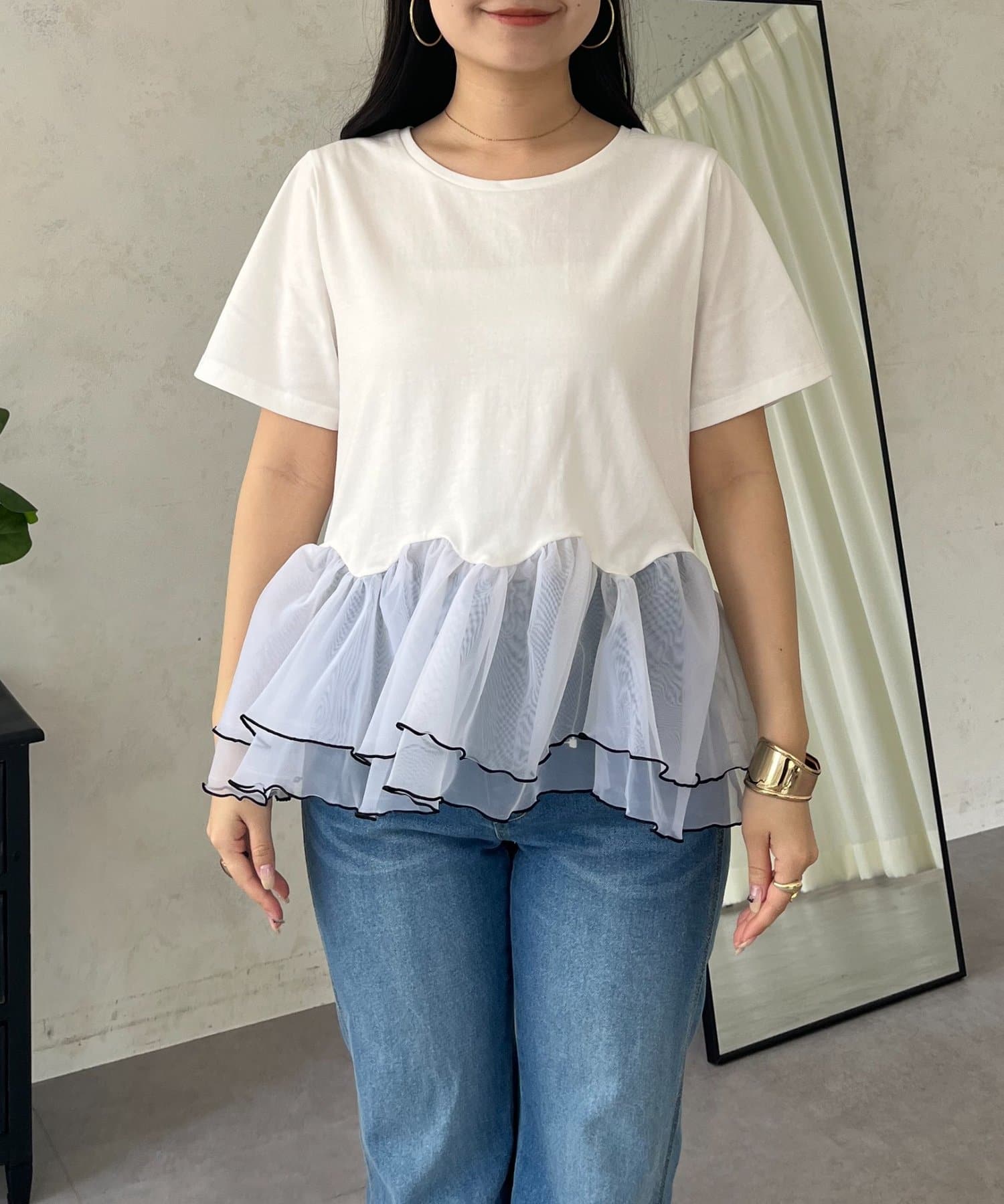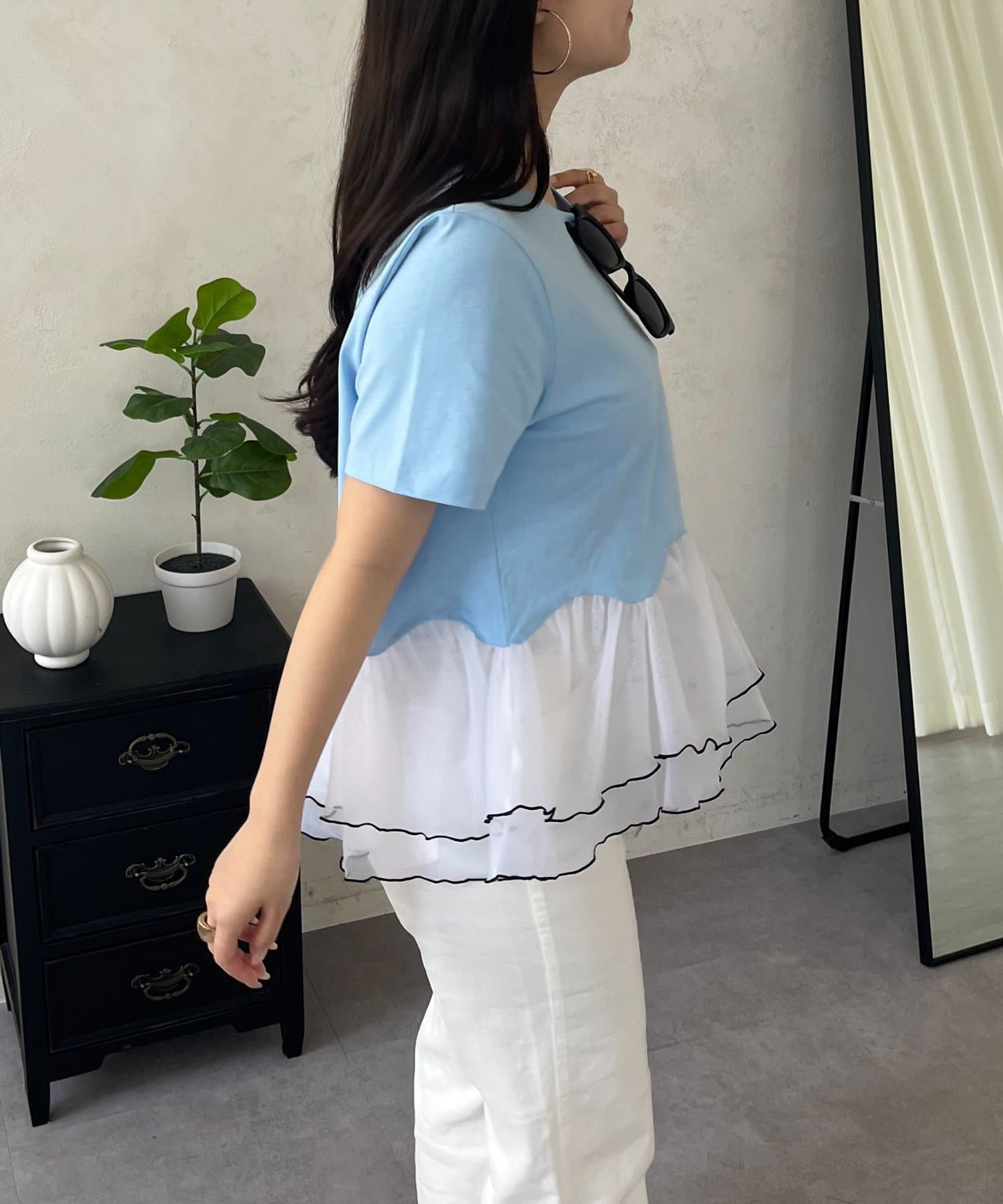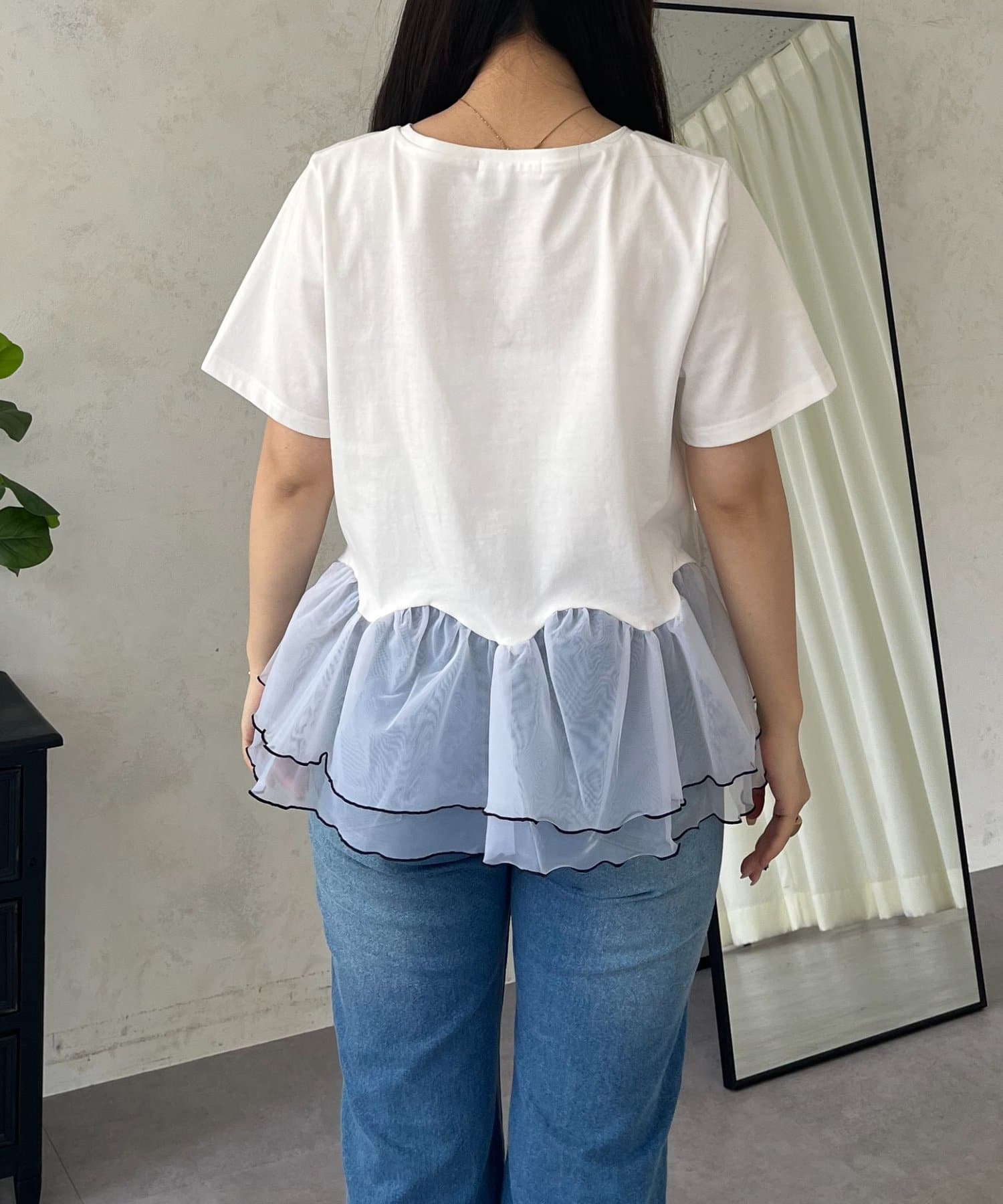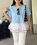 バイカラー裾フリルTシャツ
