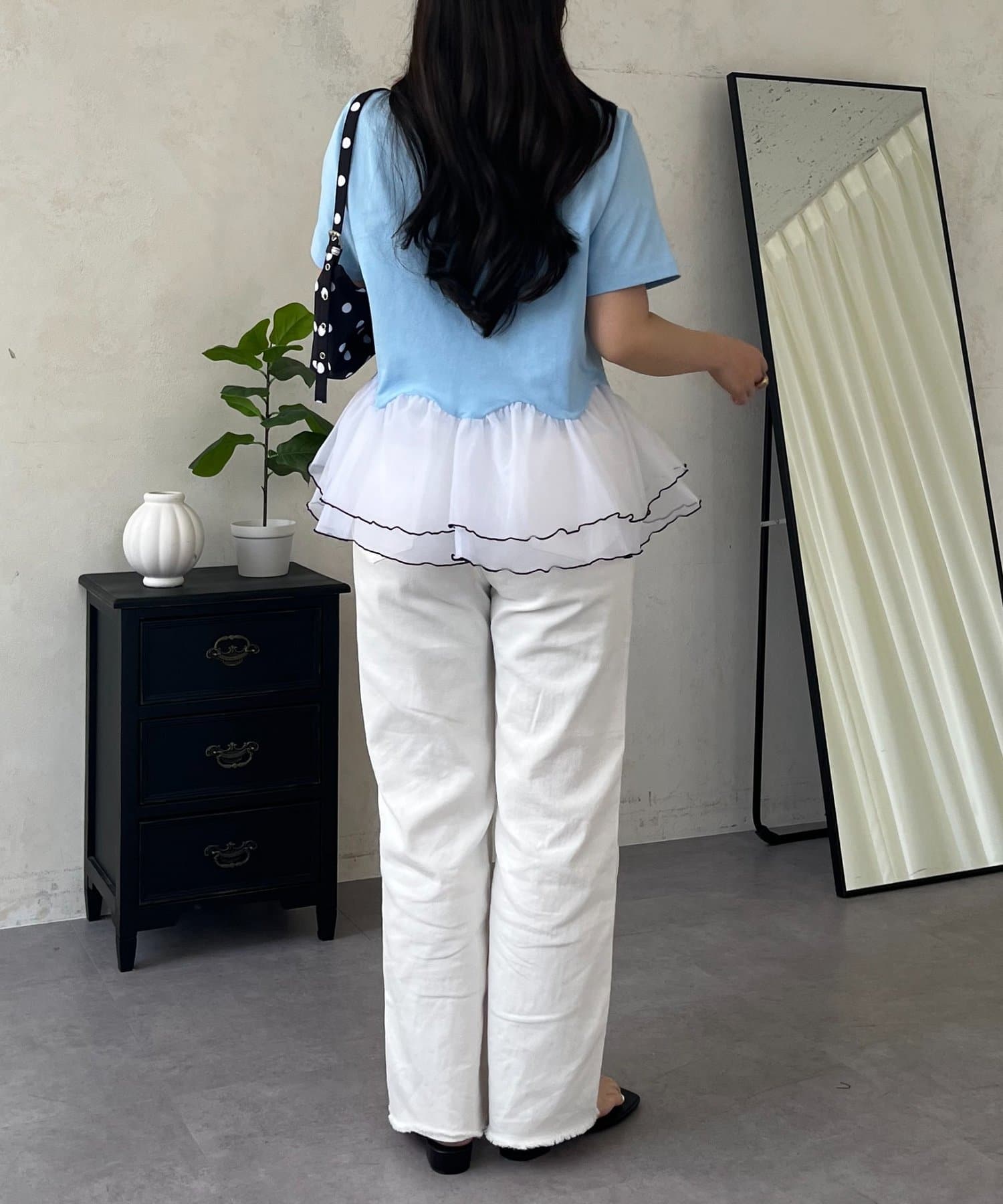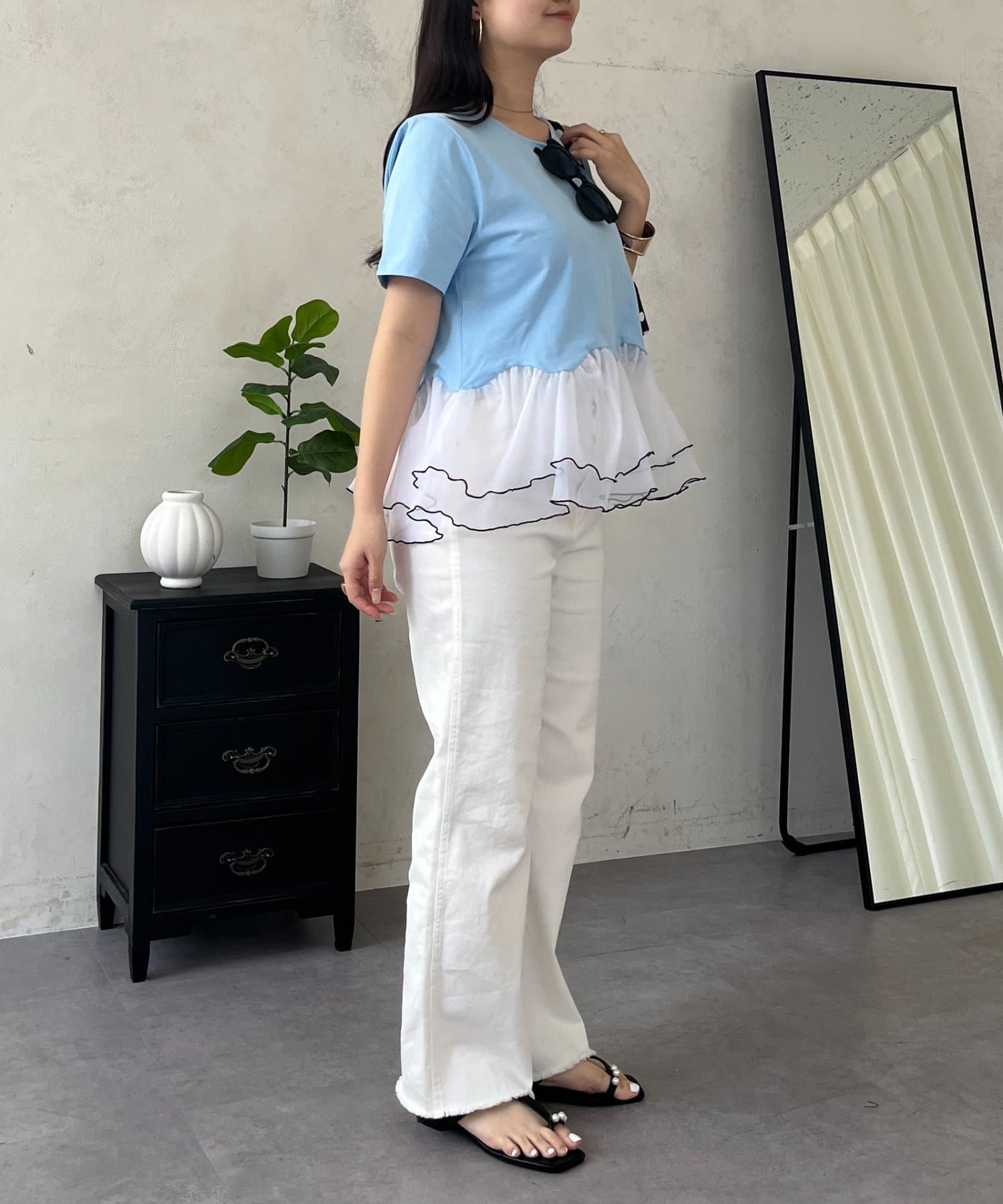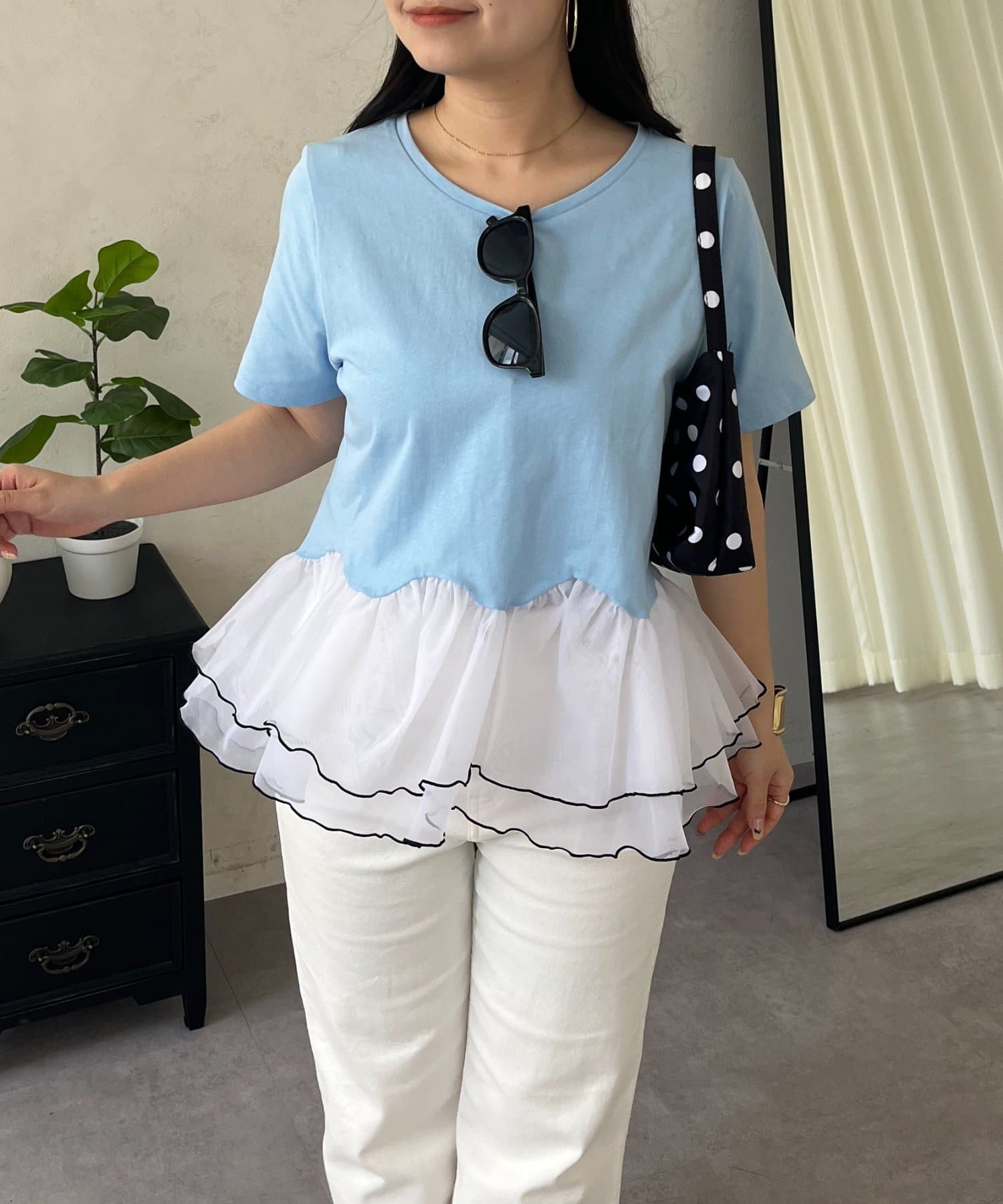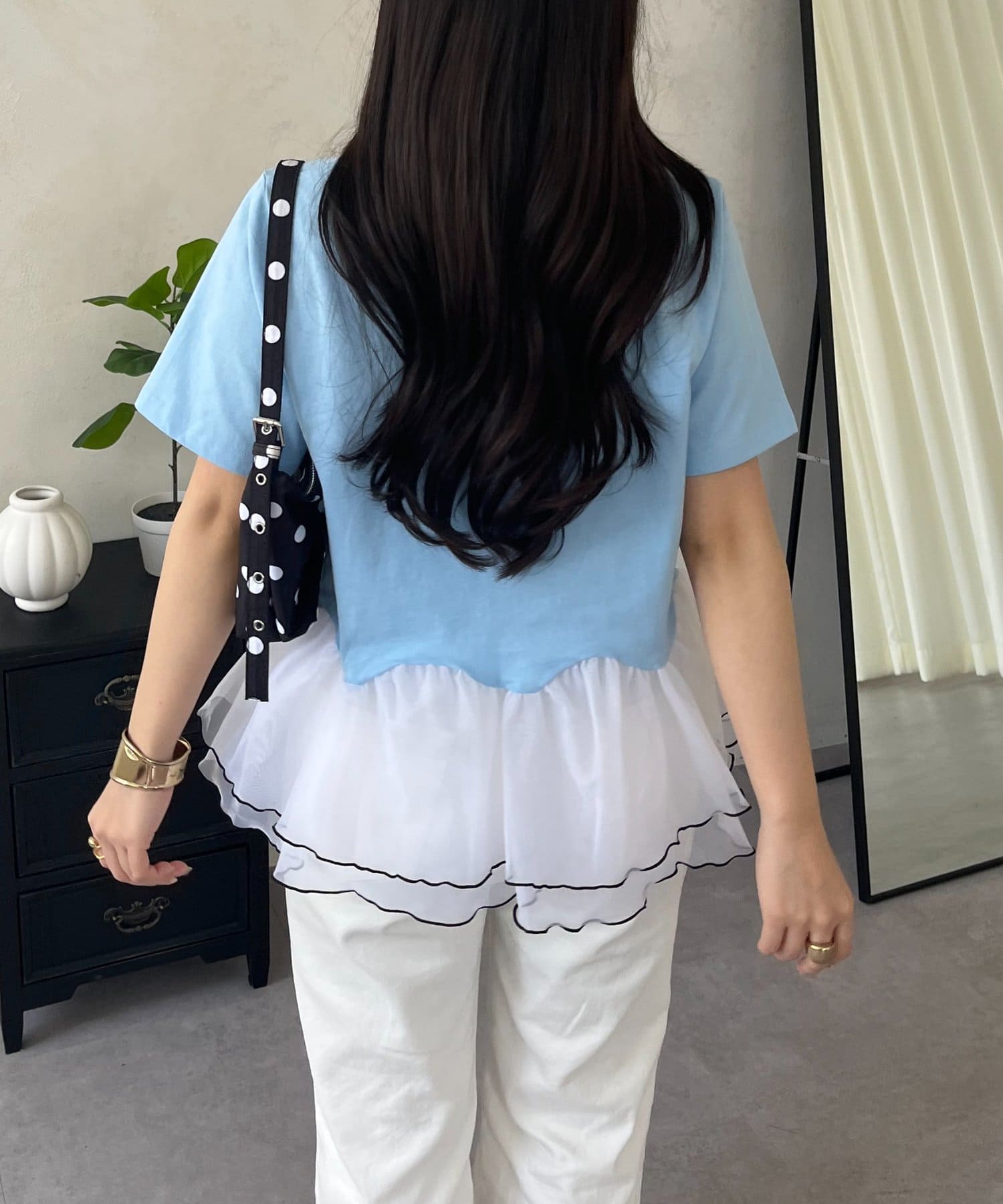 バイカラー裾フリルTシャツ