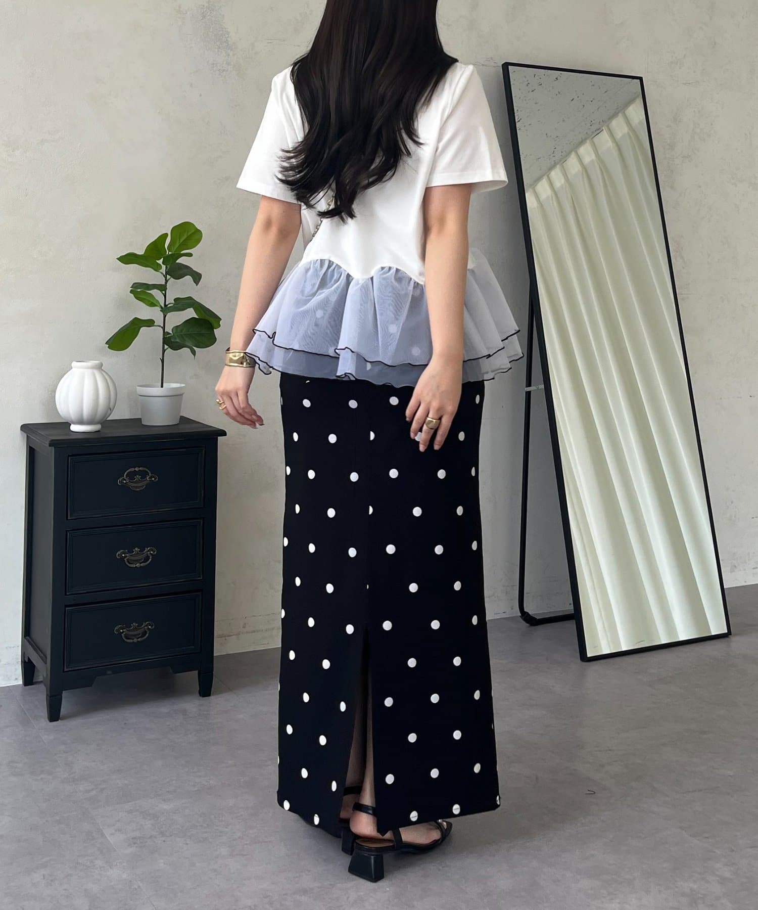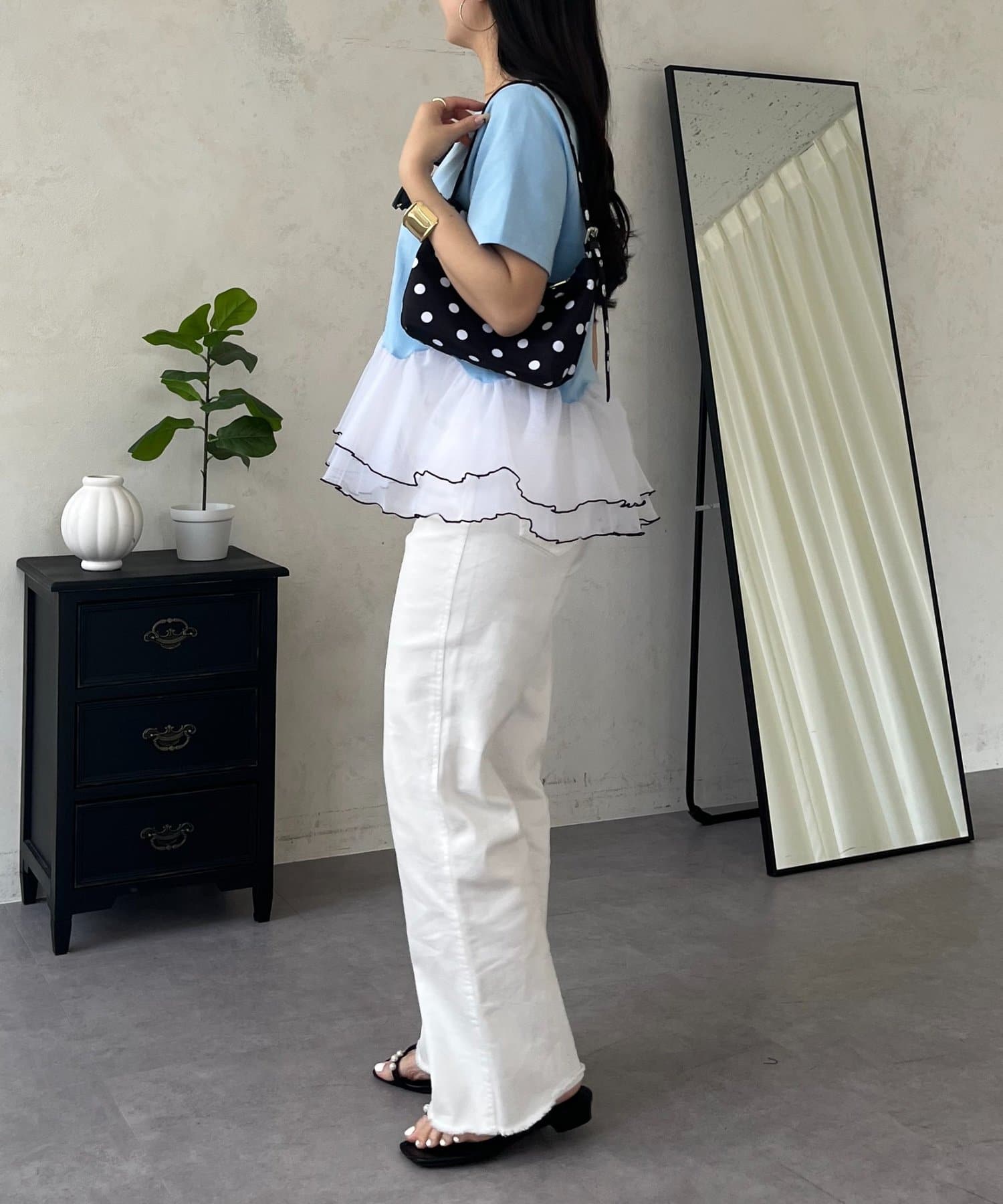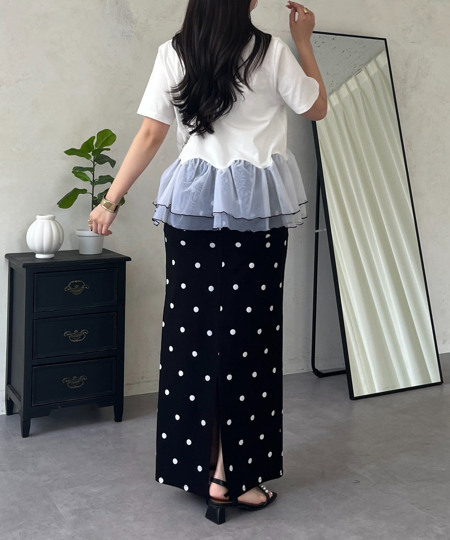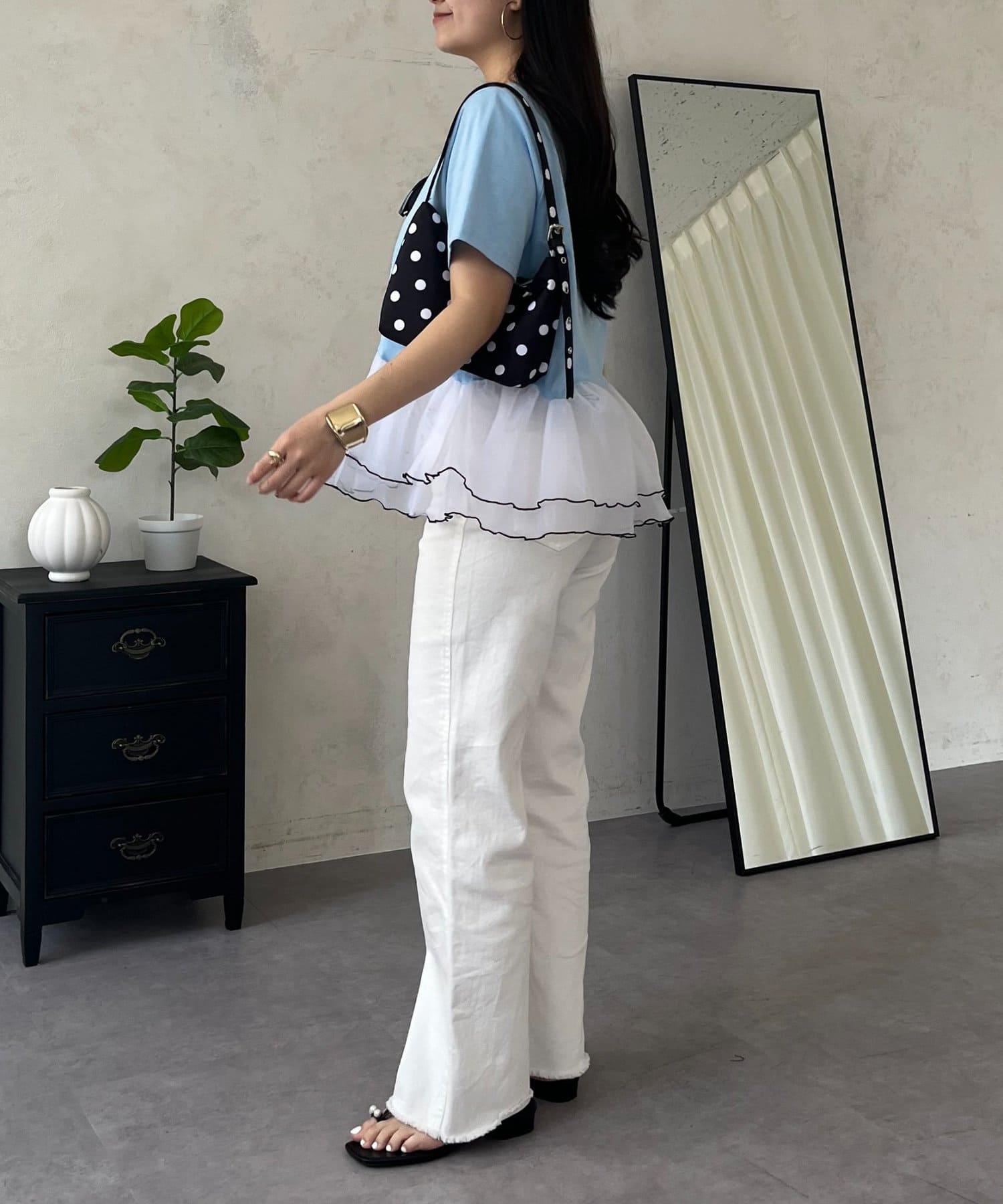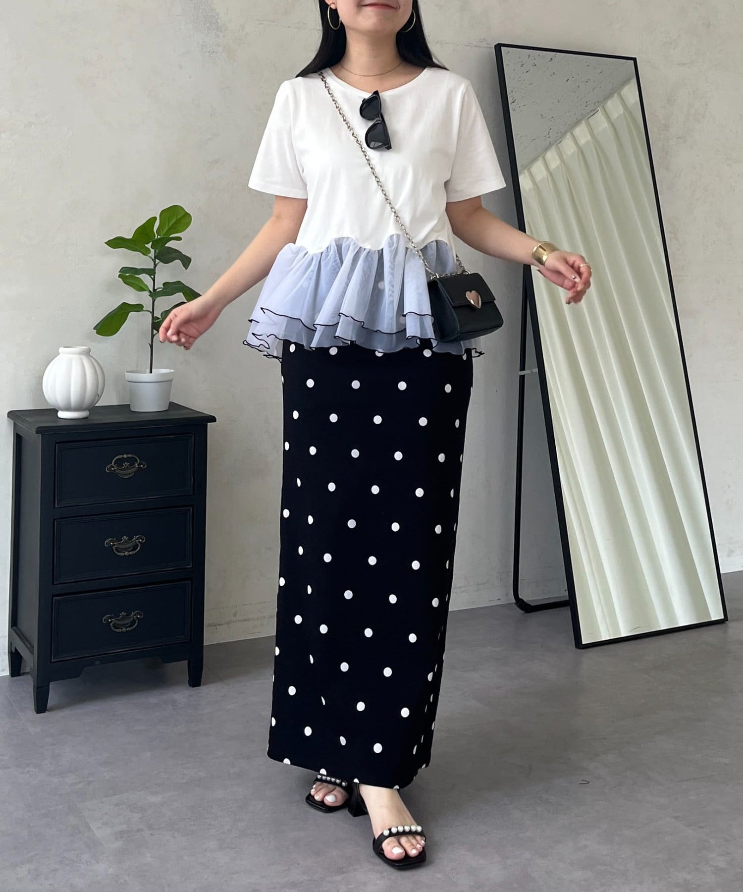 ●デニムでカジュアルダウンしたり、きれいめスカートでフェミニンに着こなしたりと着回し力も抜群です