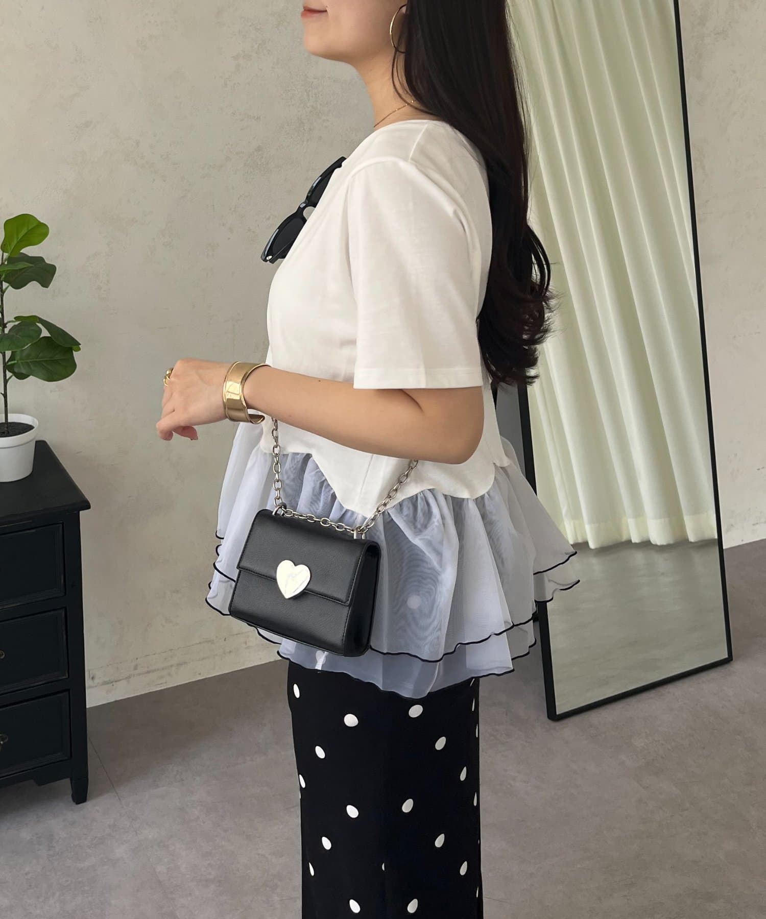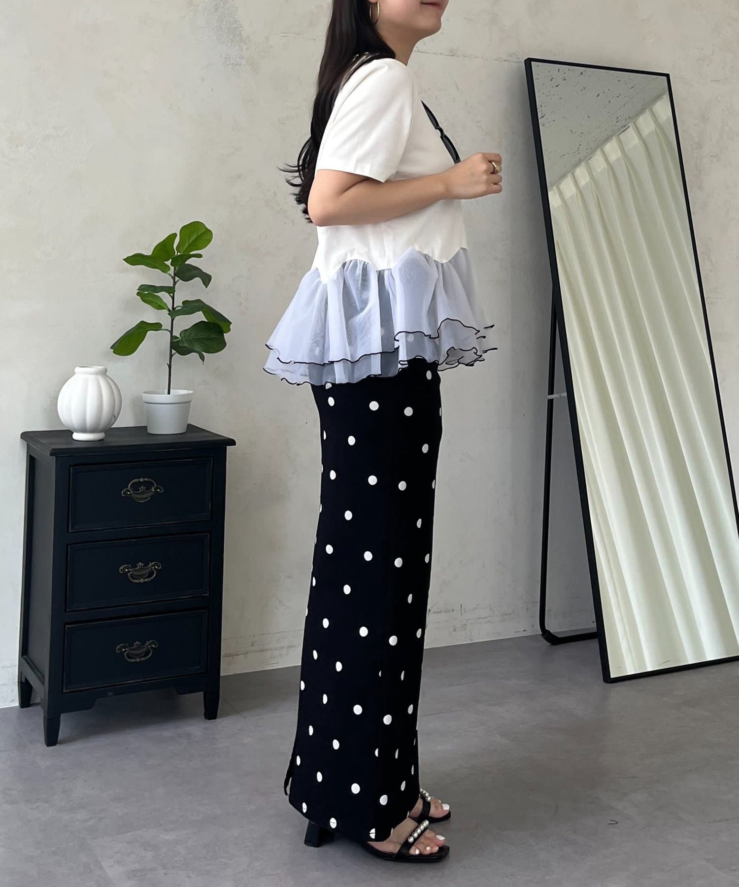 ●気になる腰回りをふんわりカバーしてくれる、華やかな2段フリルが嬉しいポイント