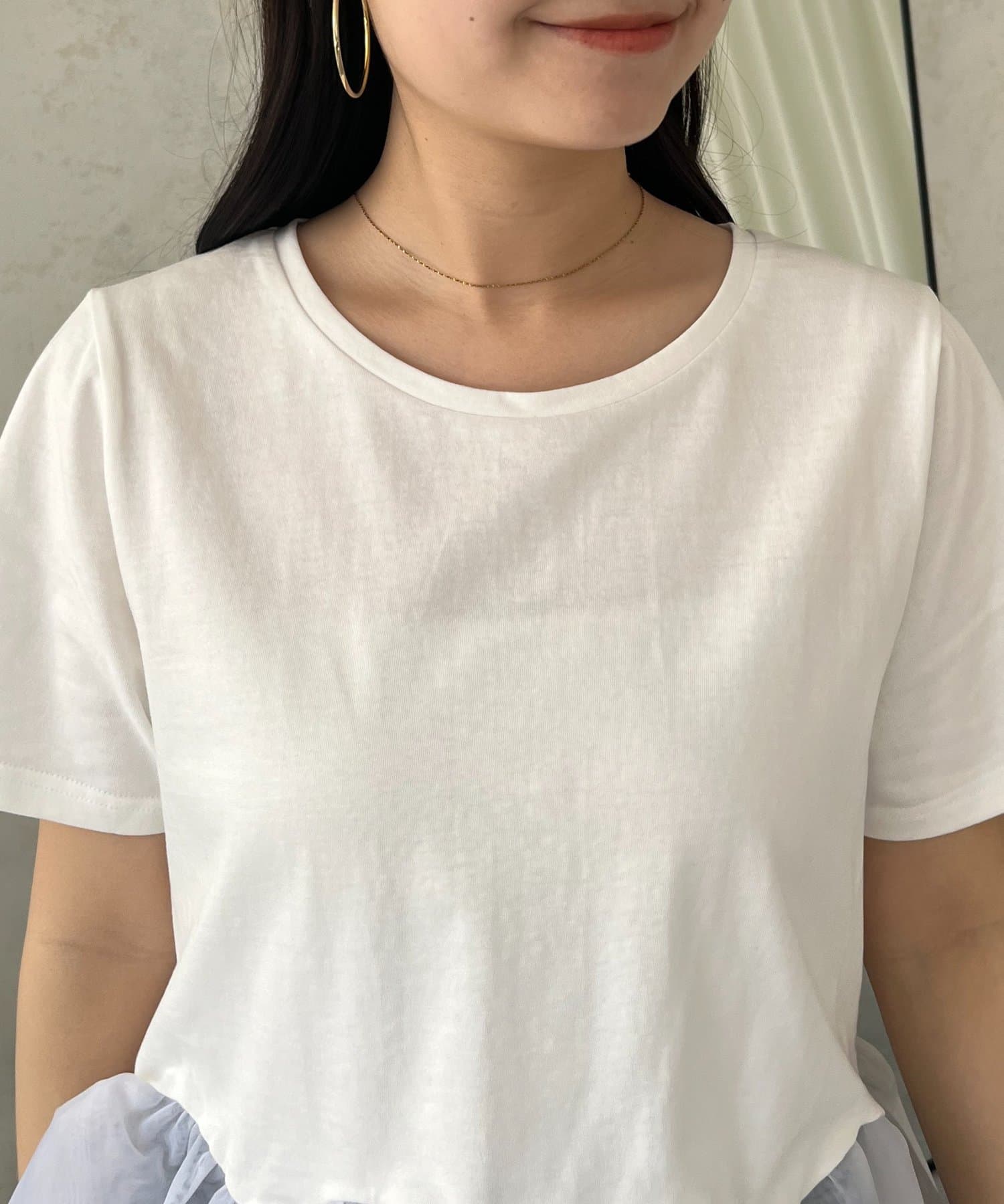 ●いつものTシャツスタイルをアップデートする、異素材ドッキングデザイン