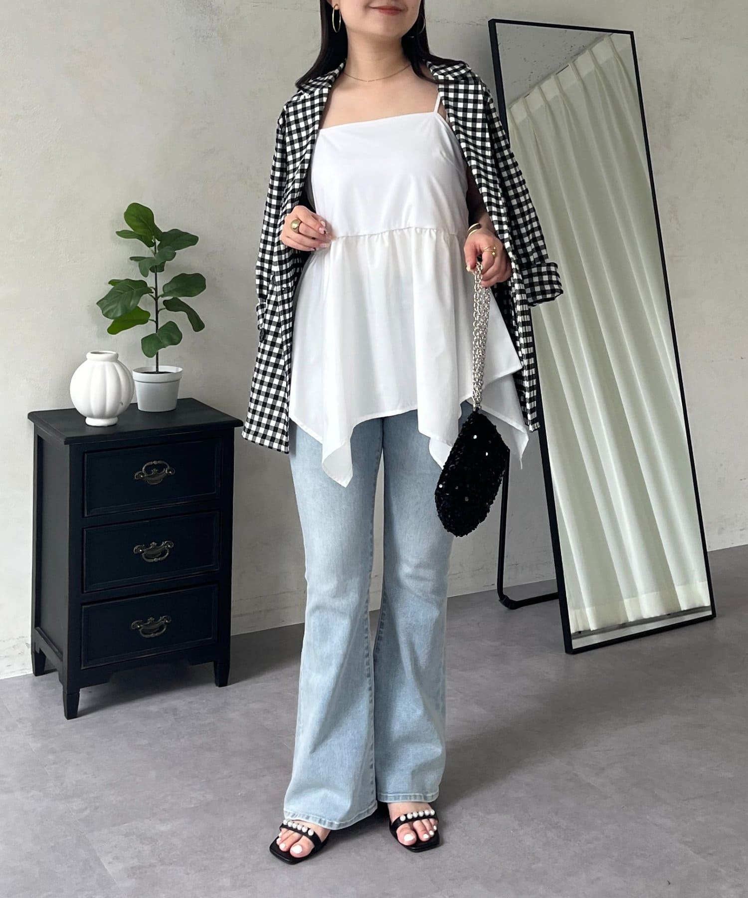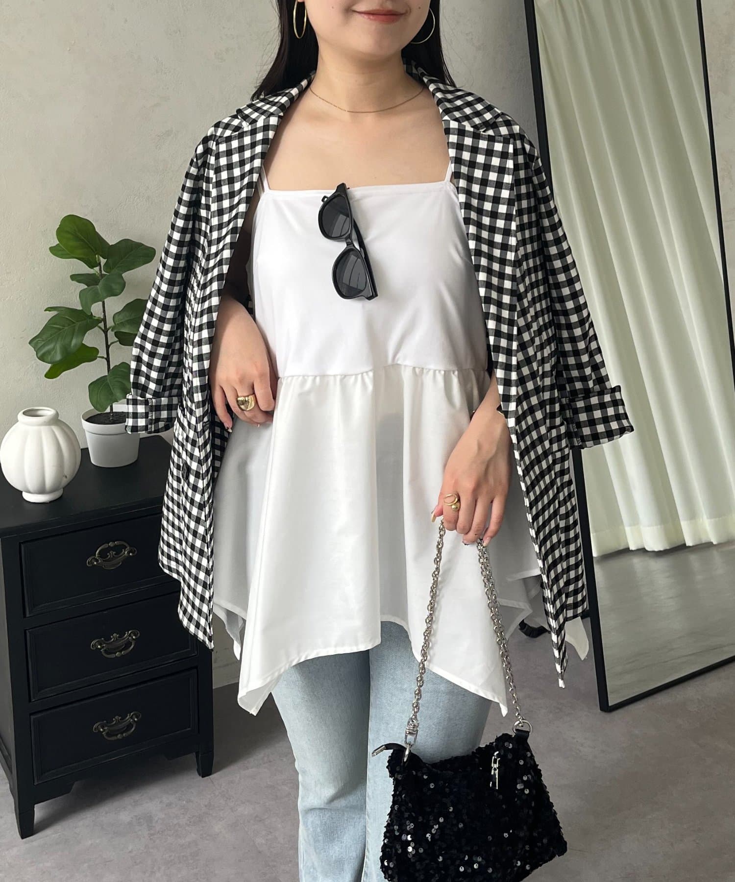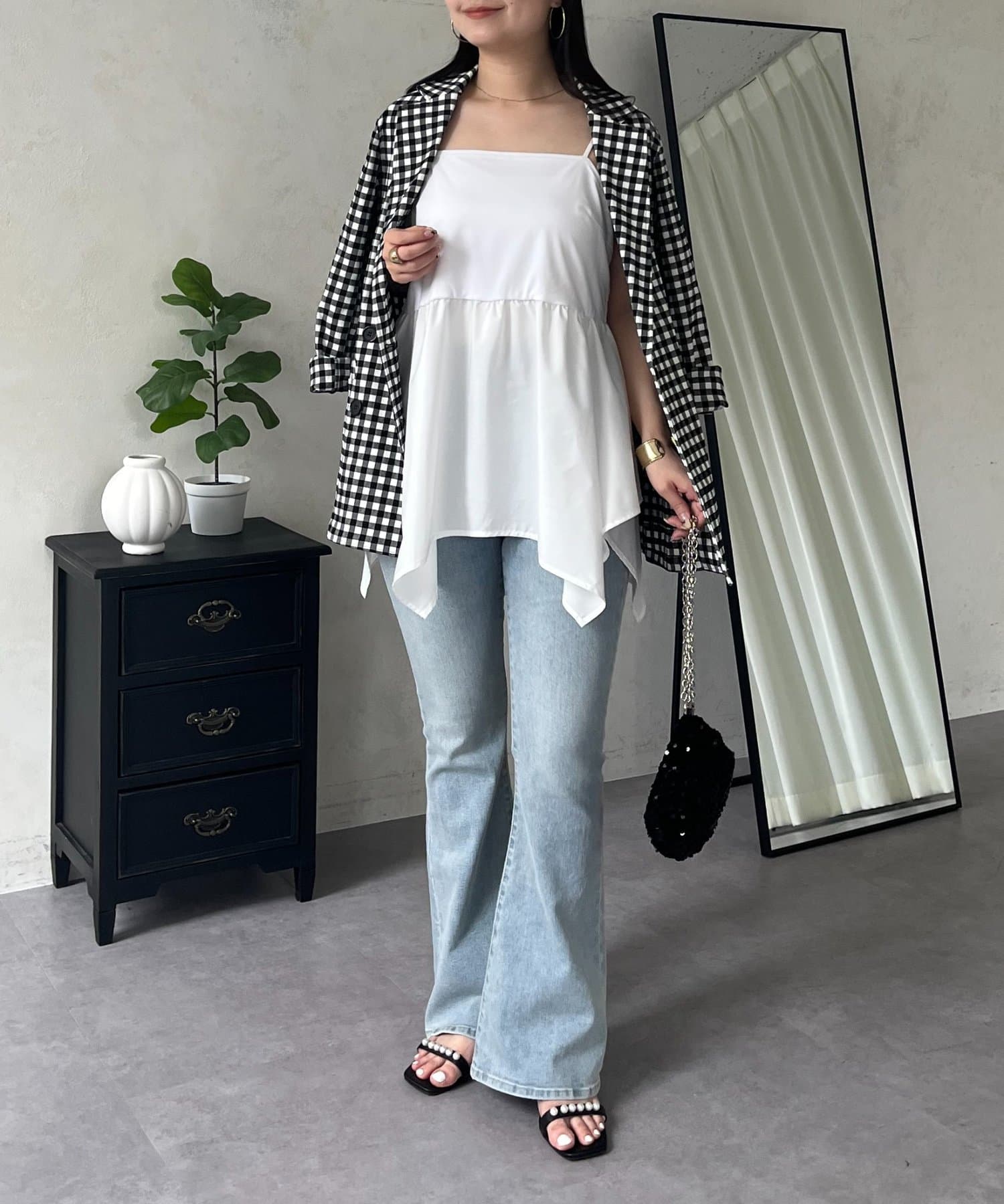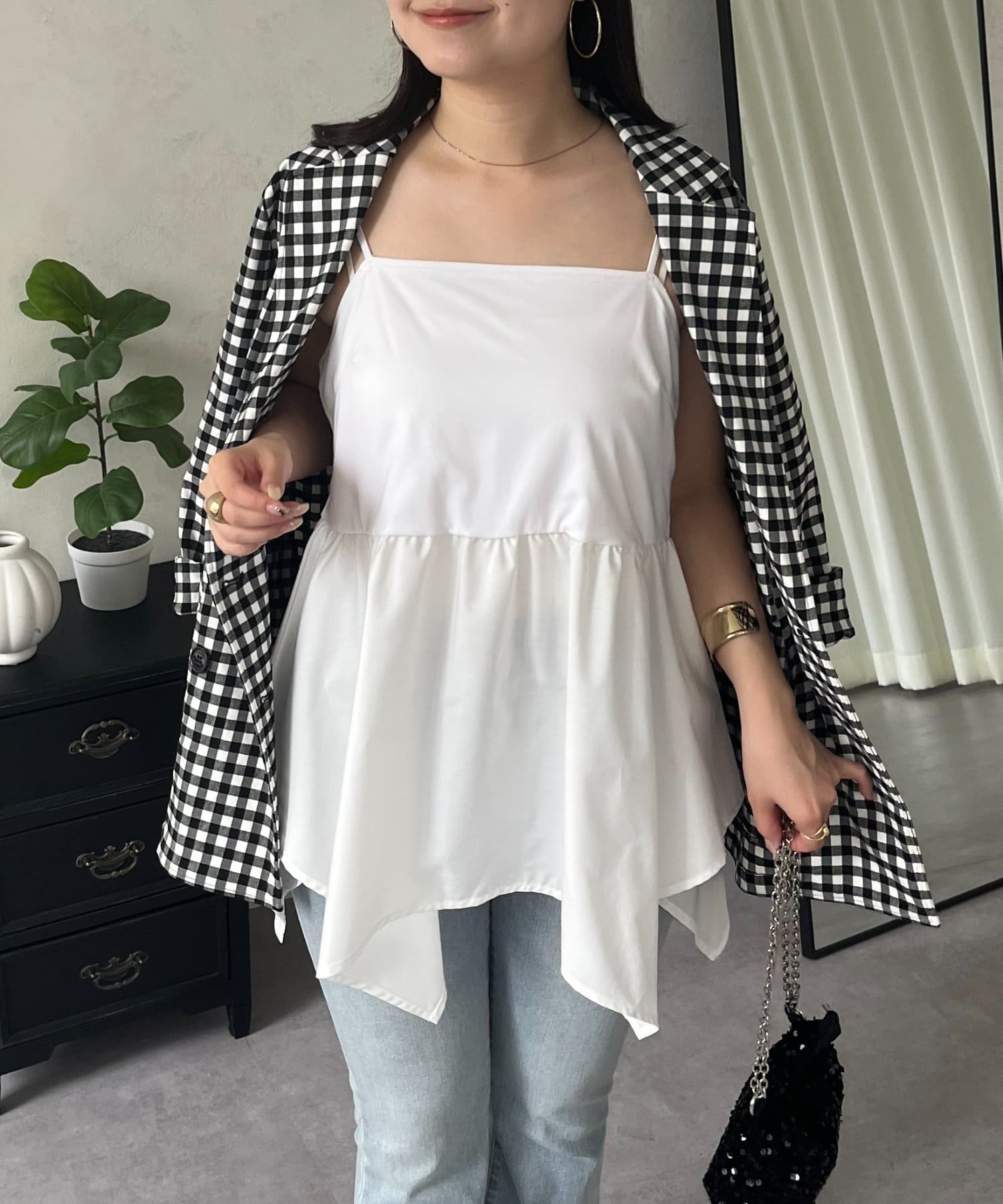 ペプラムキャミ/レイヤードコーデ/大人カジュアル/体型カバー