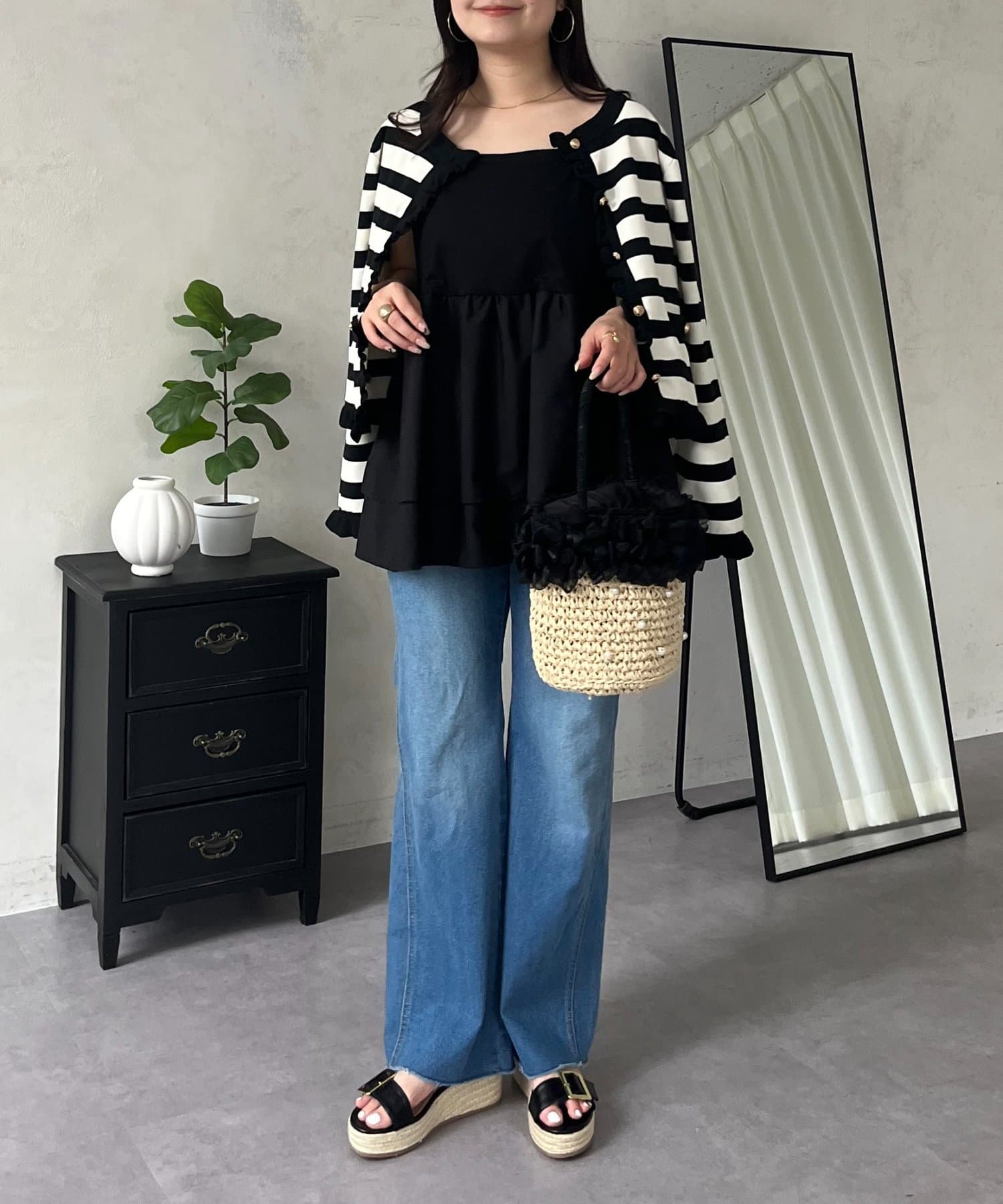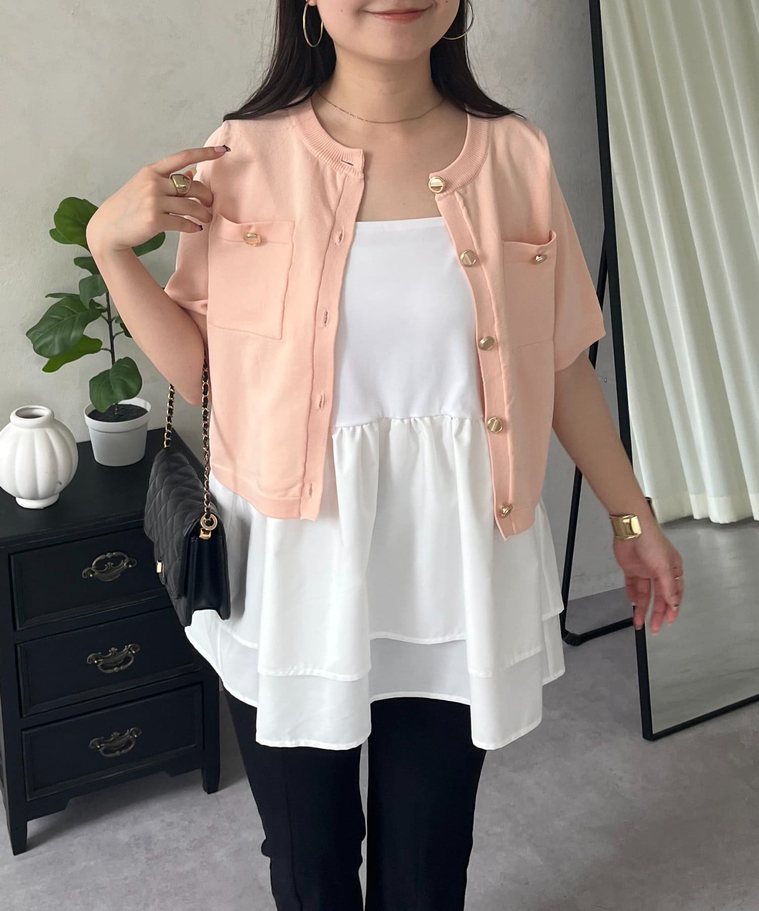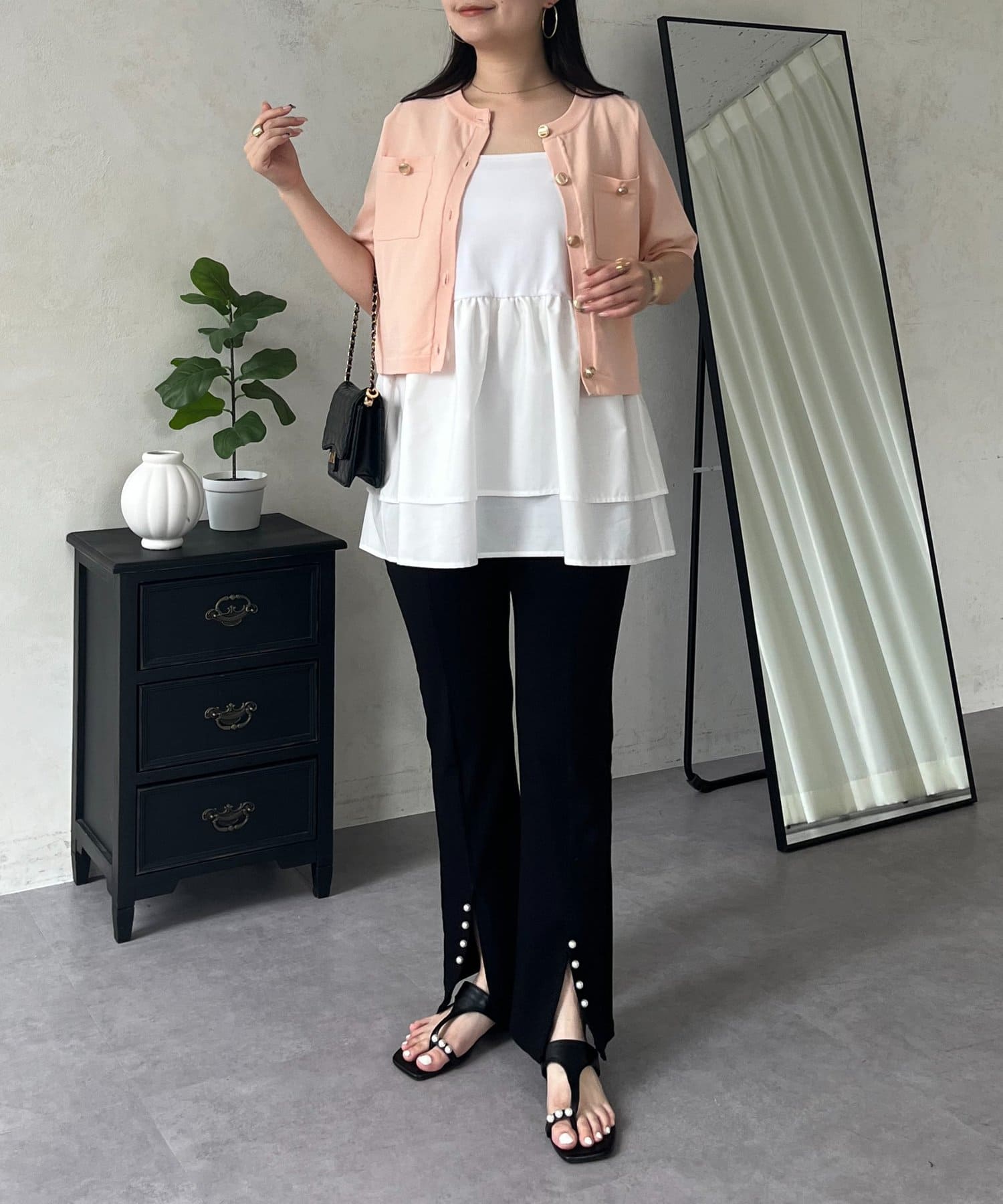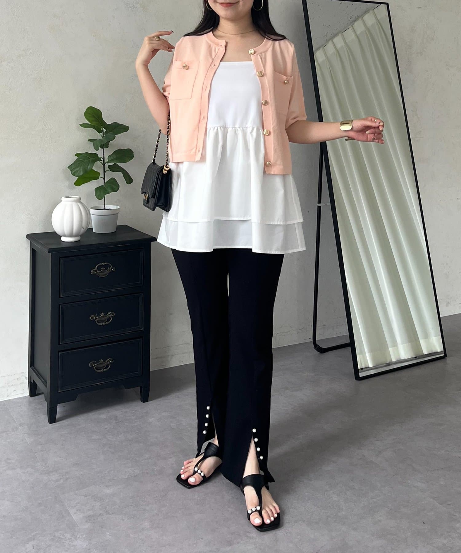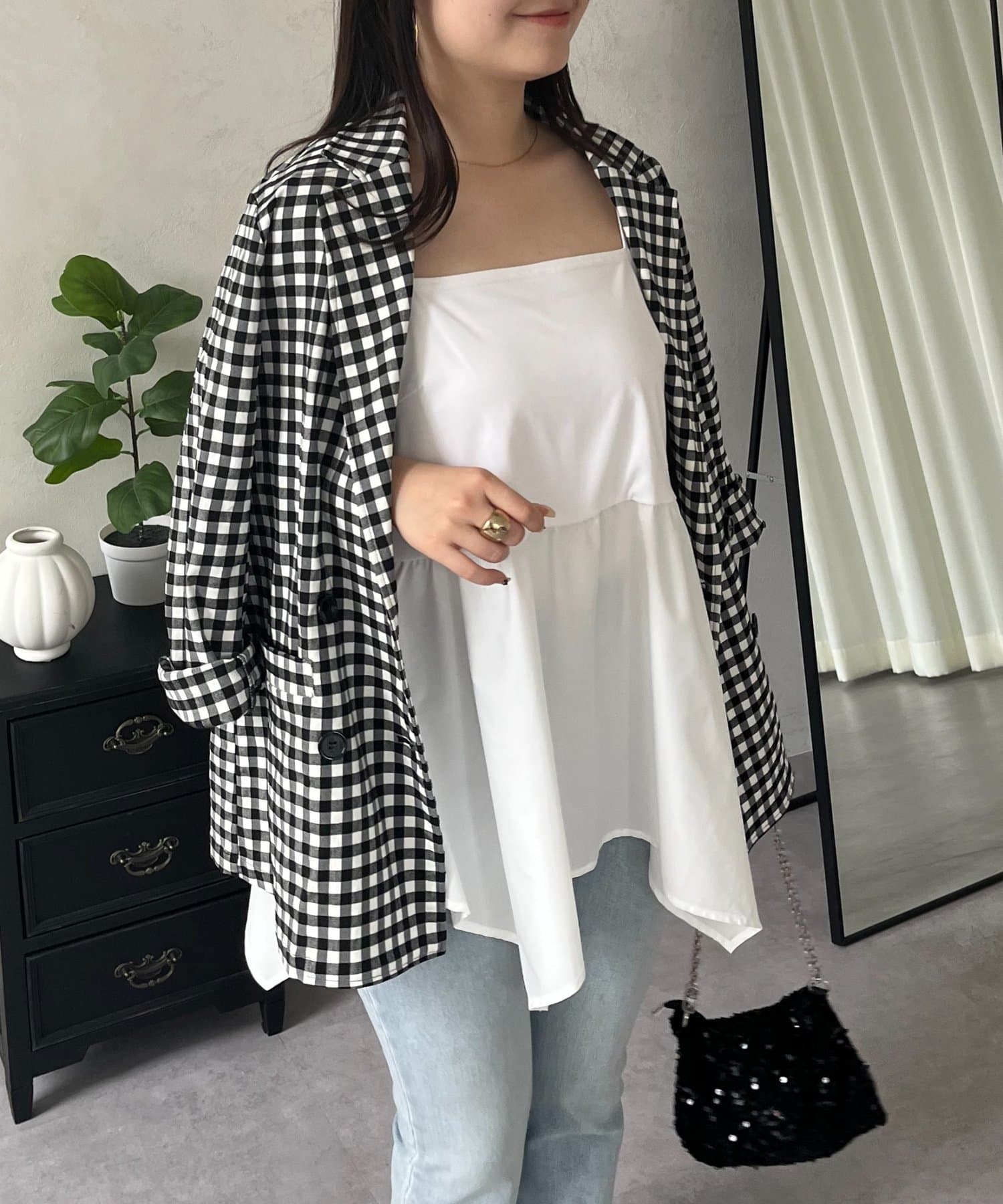 ペプラムキャミ/レイヤードコーデ/大人カジュアル/体型カバー