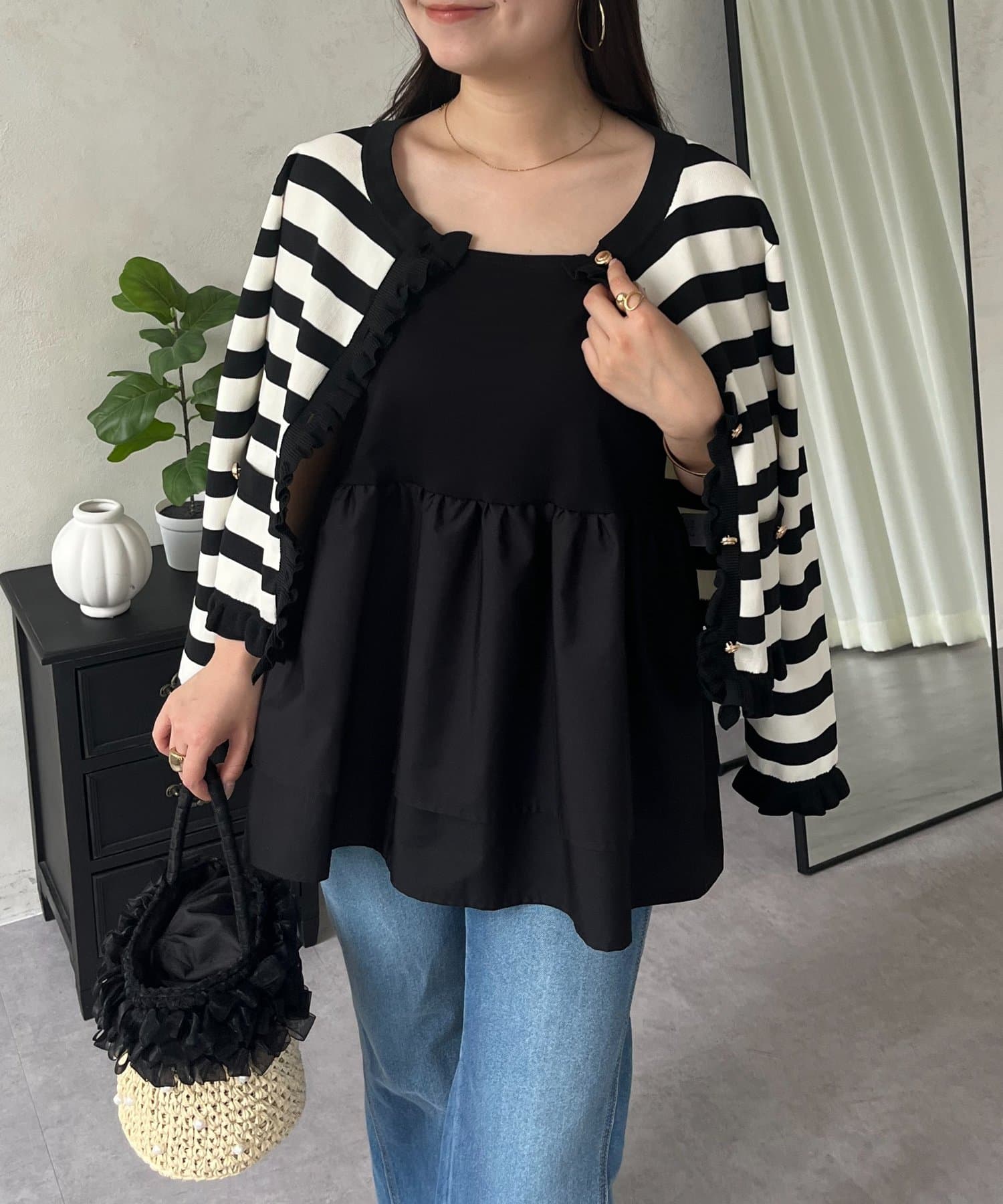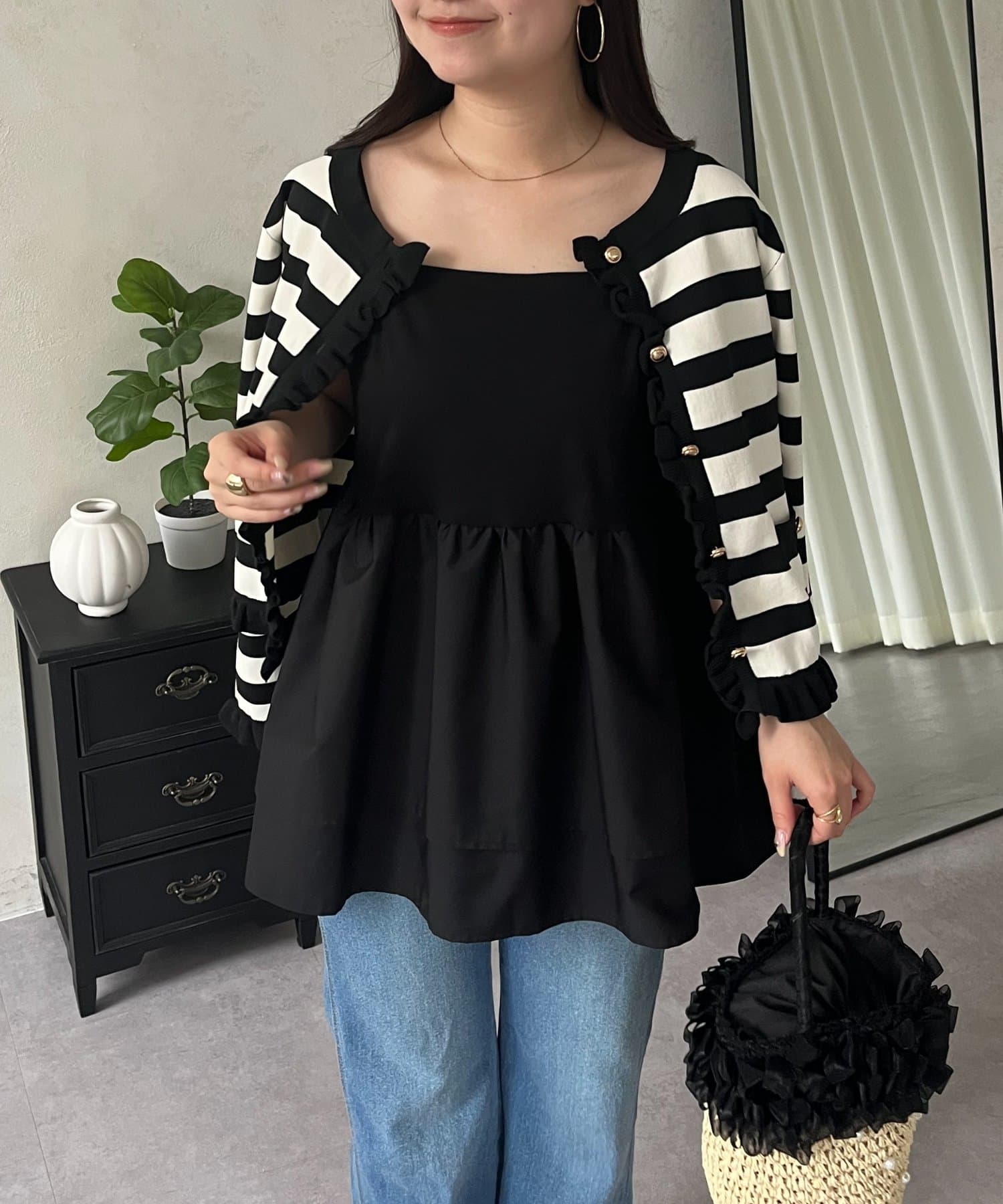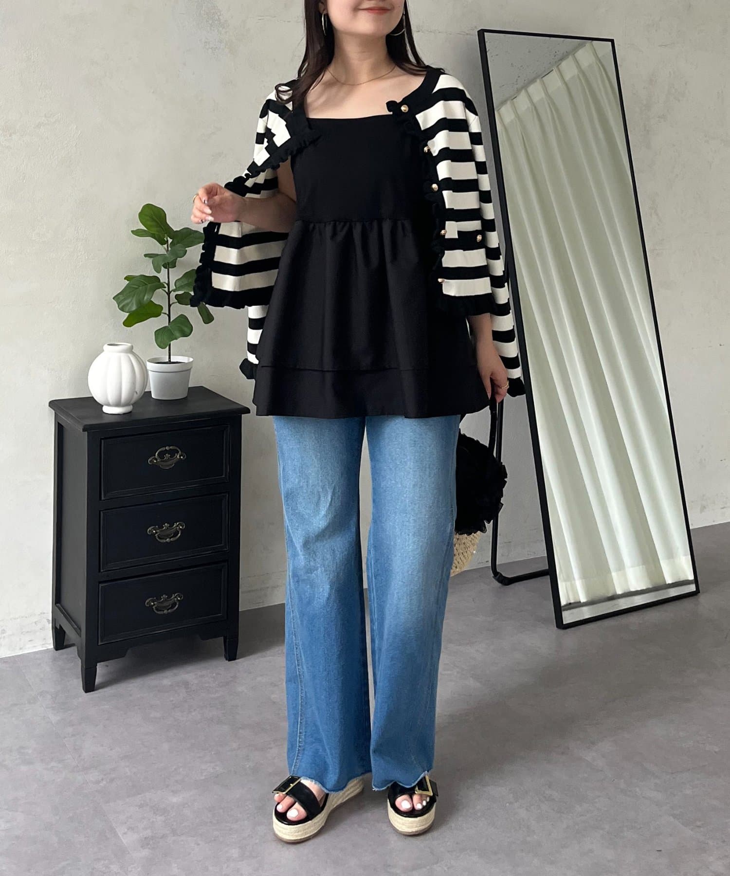 ●腰回りをふんわりとカバーしてくれるペプラムシルエットで、さりげなくスタイルアップを叶えてくれる一枚です