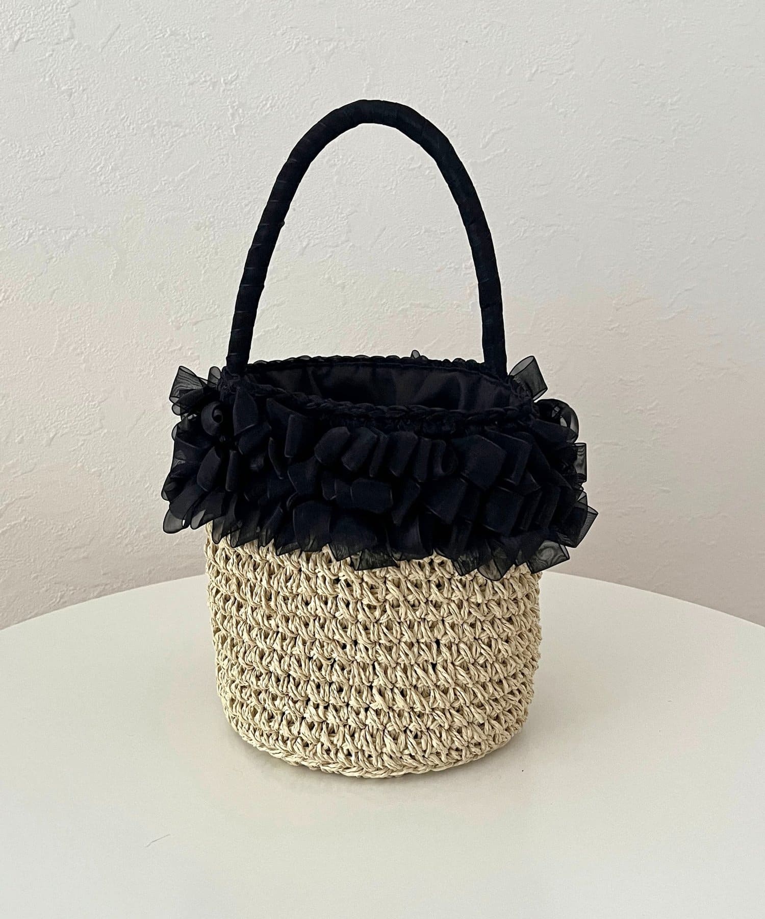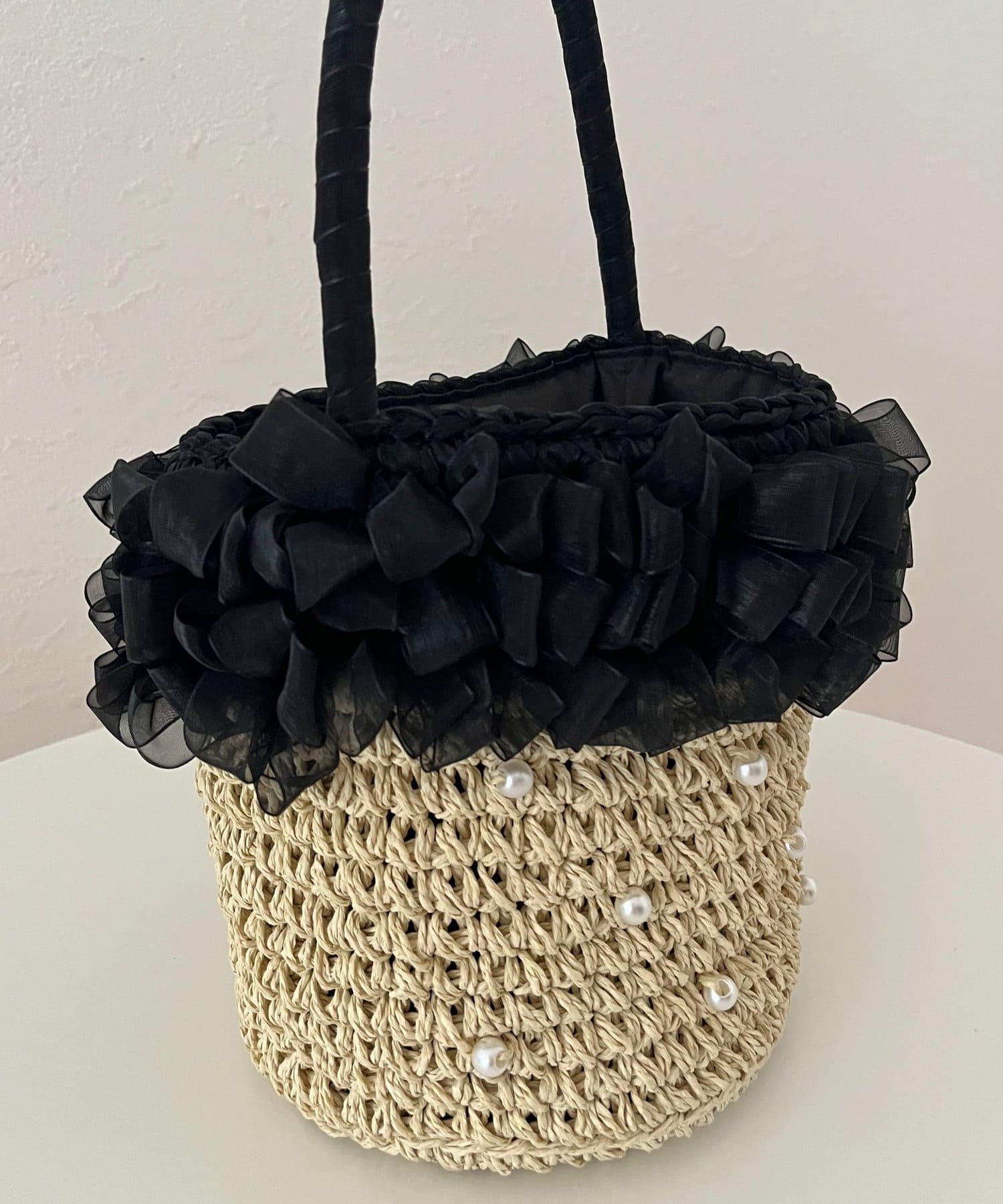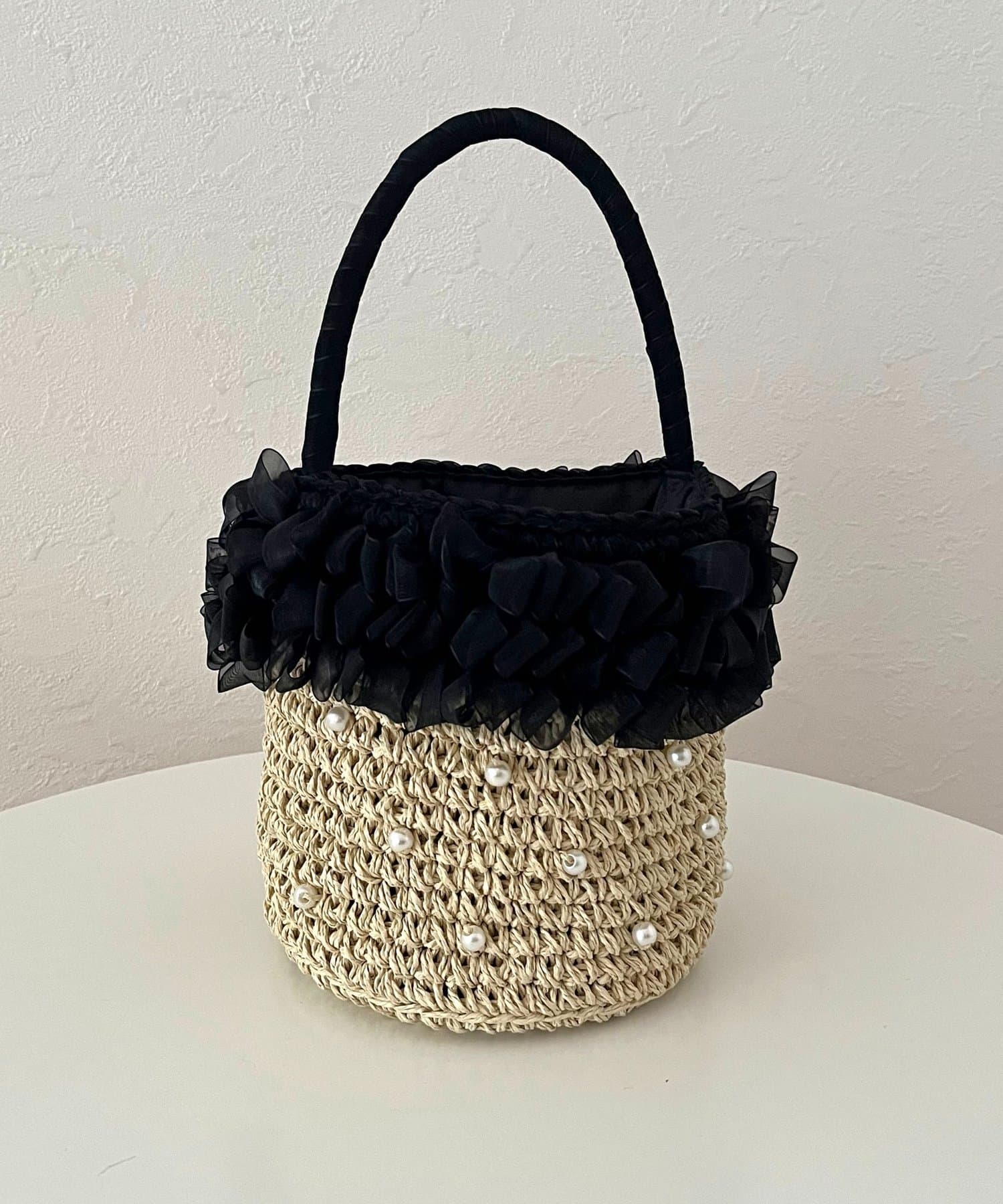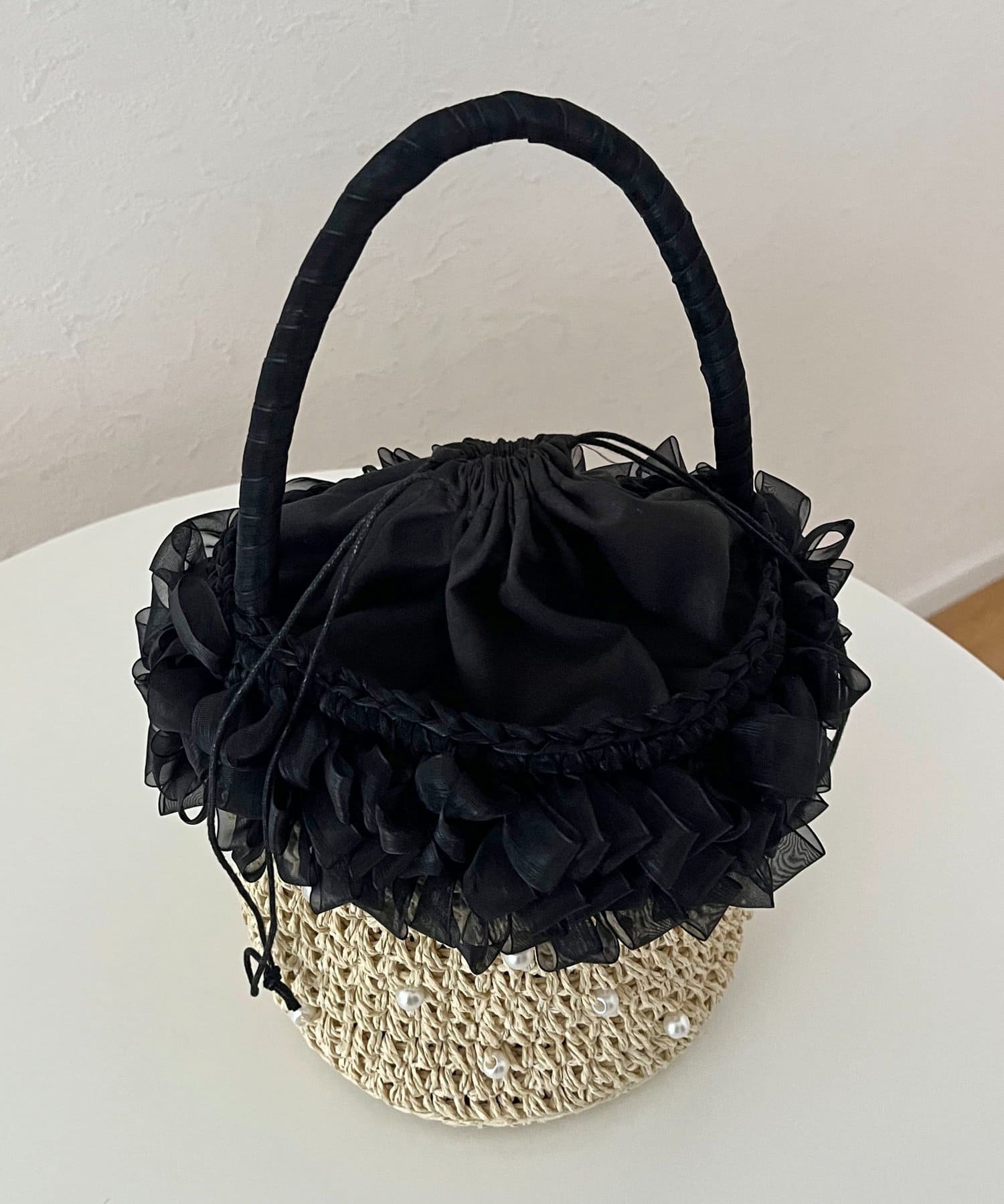 オーガンジーフリルパールかごバッグ