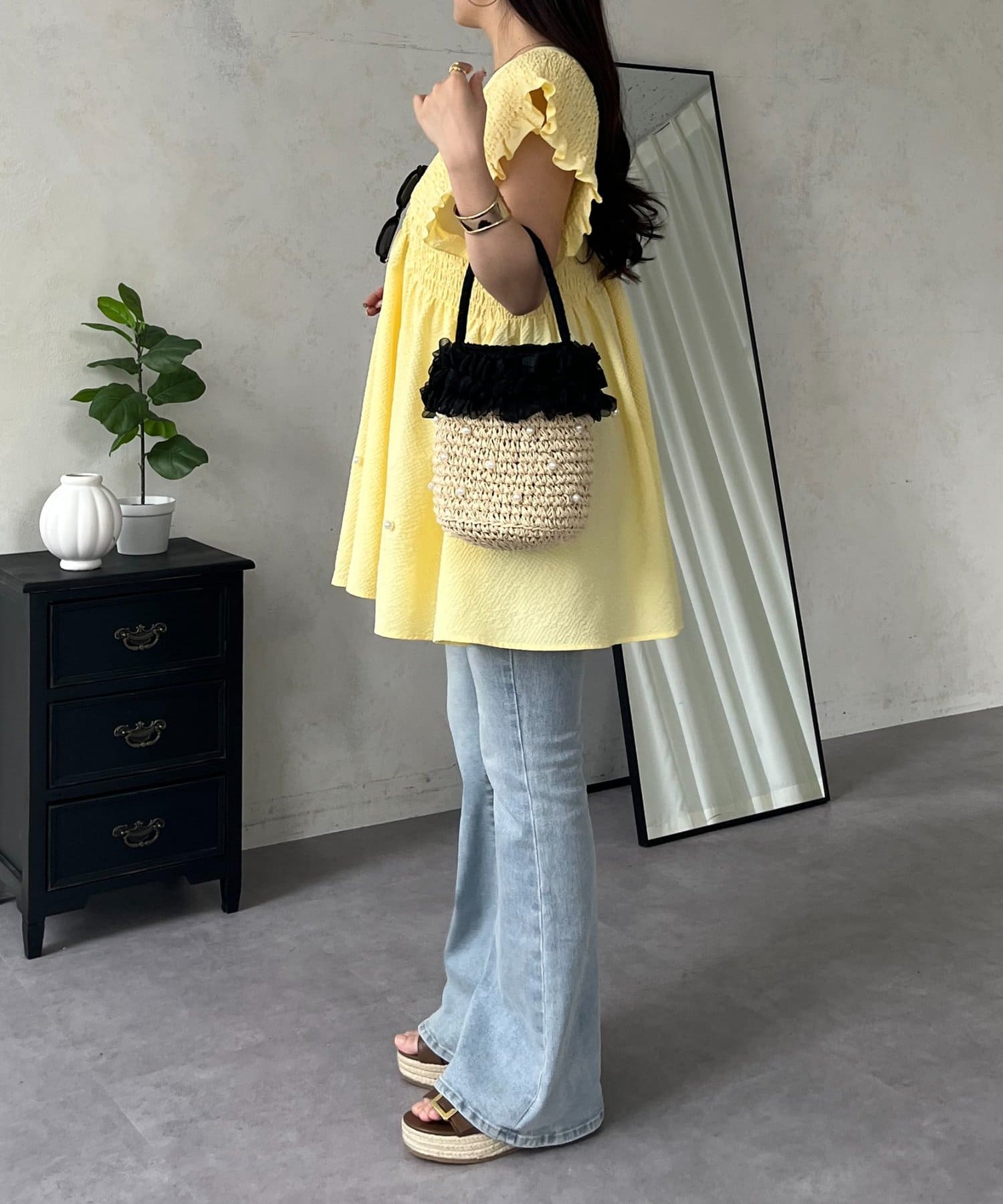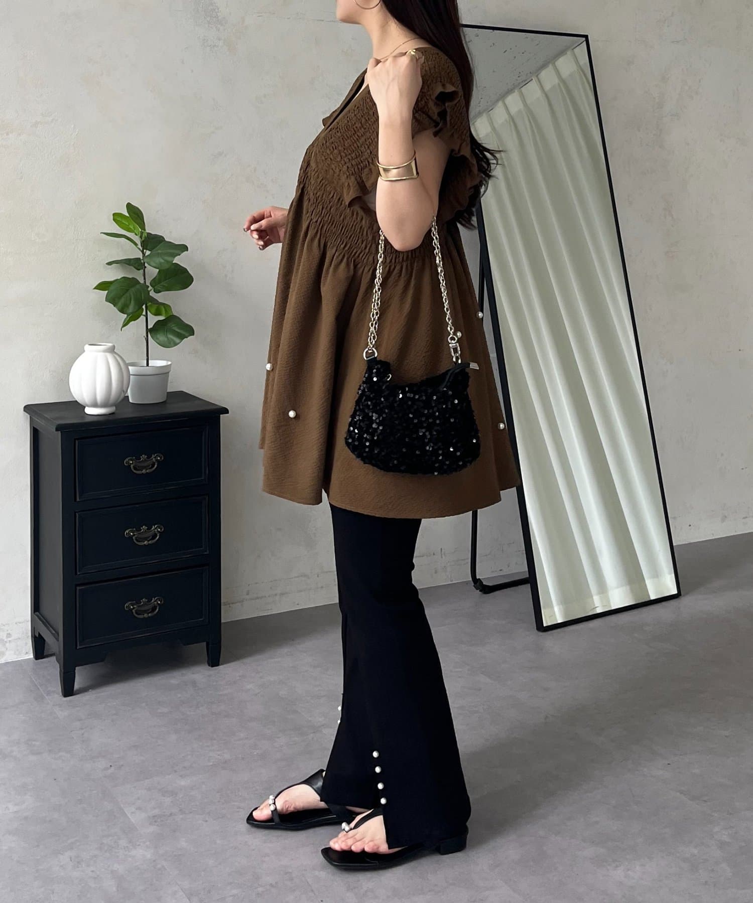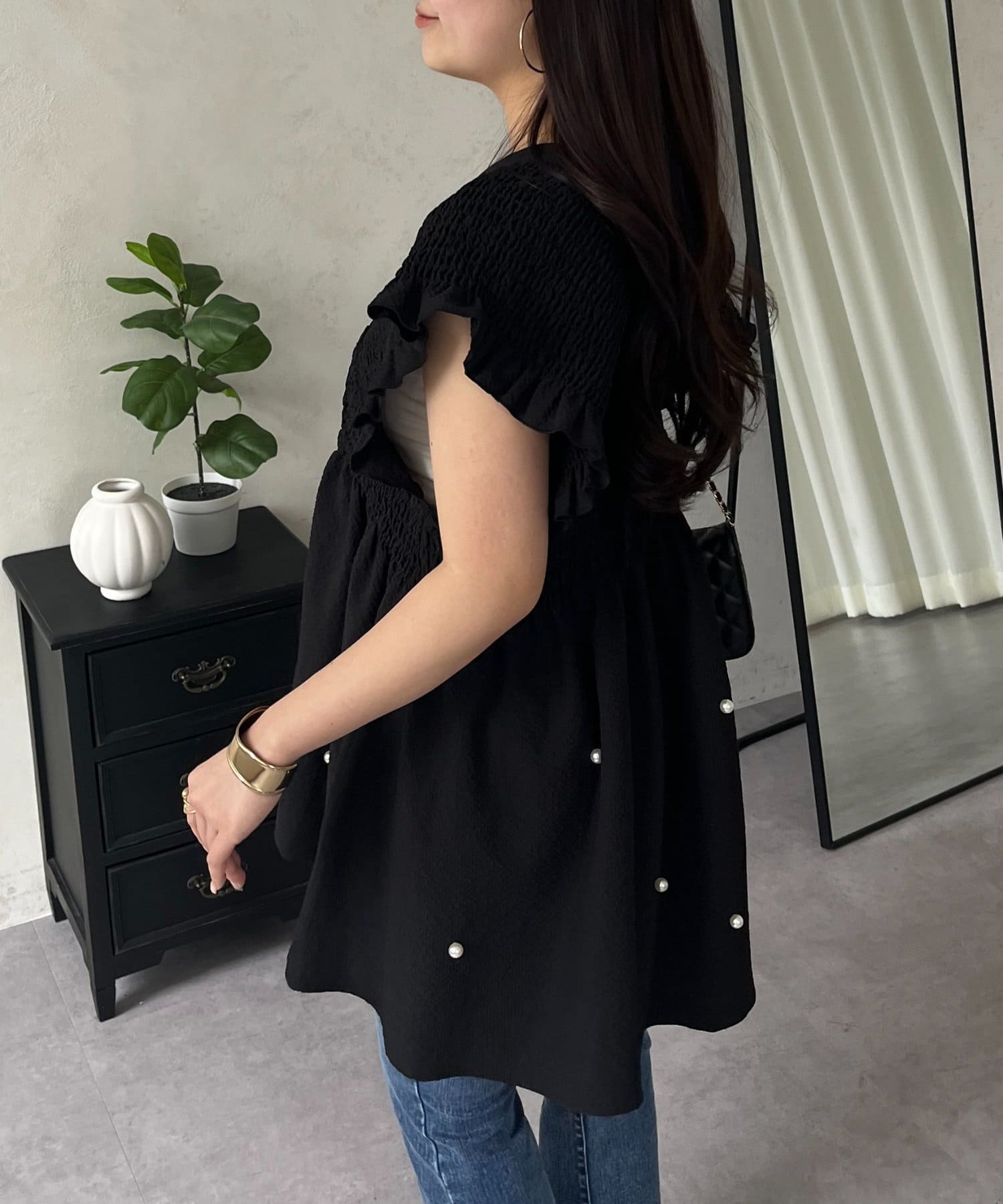 ●ランダムパールがコーデのアクセントに