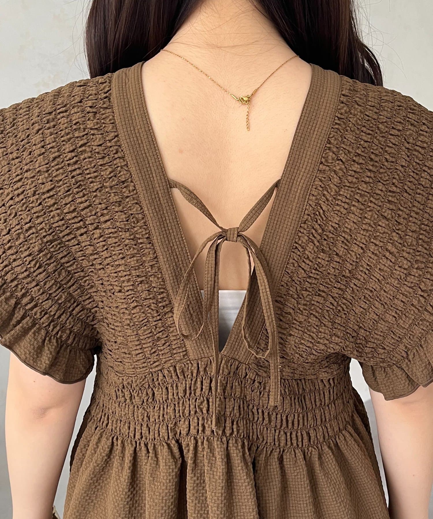 ●前後ともにVネック仕様で、デコルテを美しく演出