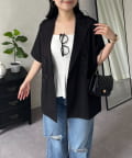 【羽織りにもなる2WAY】リネンタッチWボタン半袖シャツジャケット