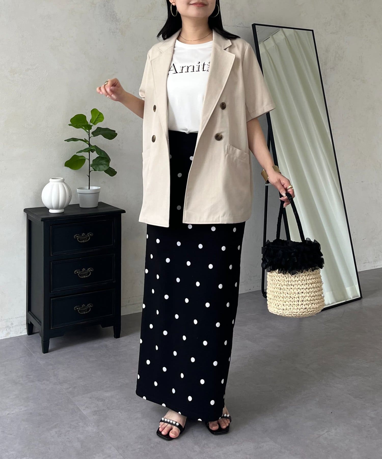 ●程よいゆとりのあるシルエットと二の腕をカバーする袖丈で、