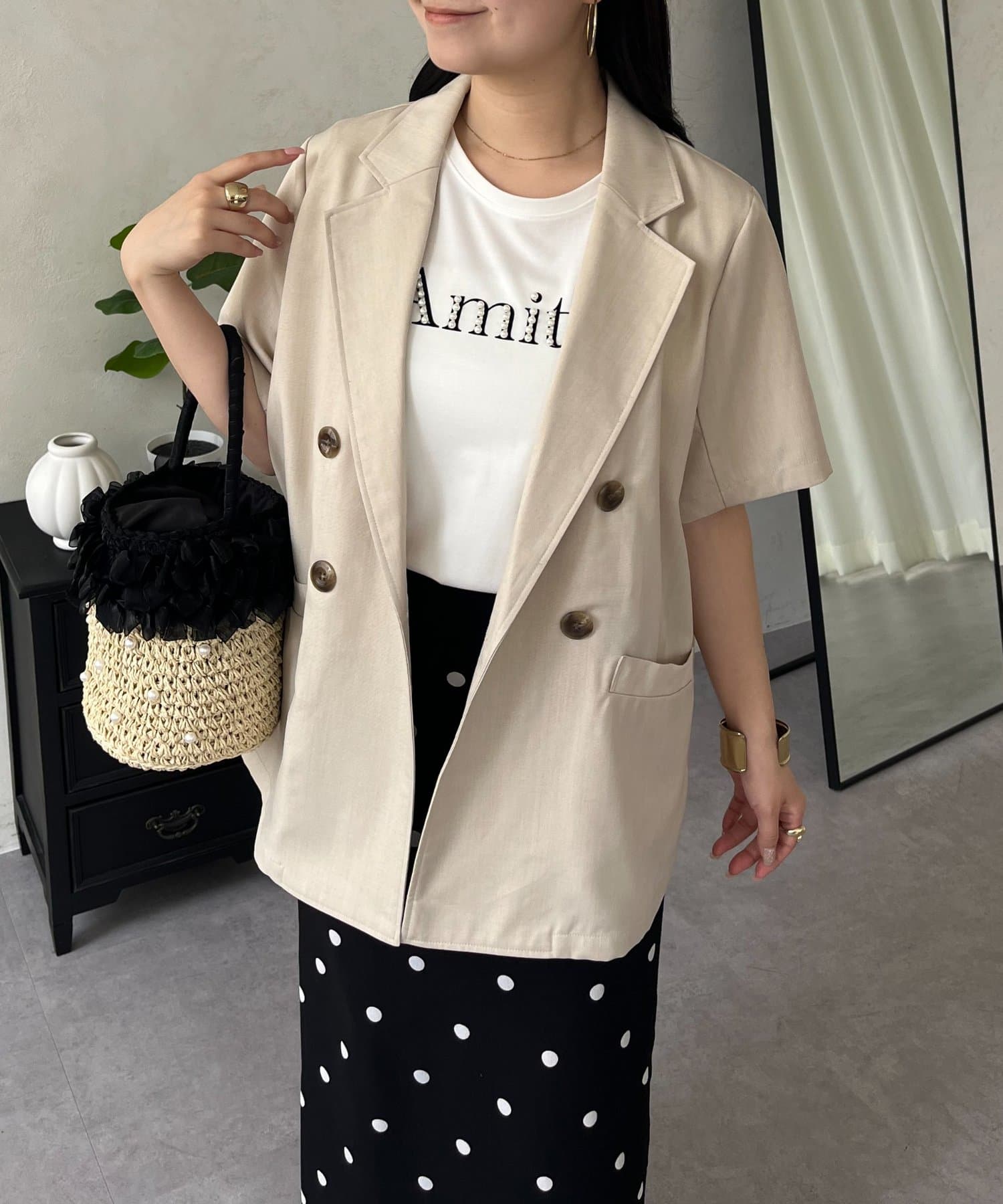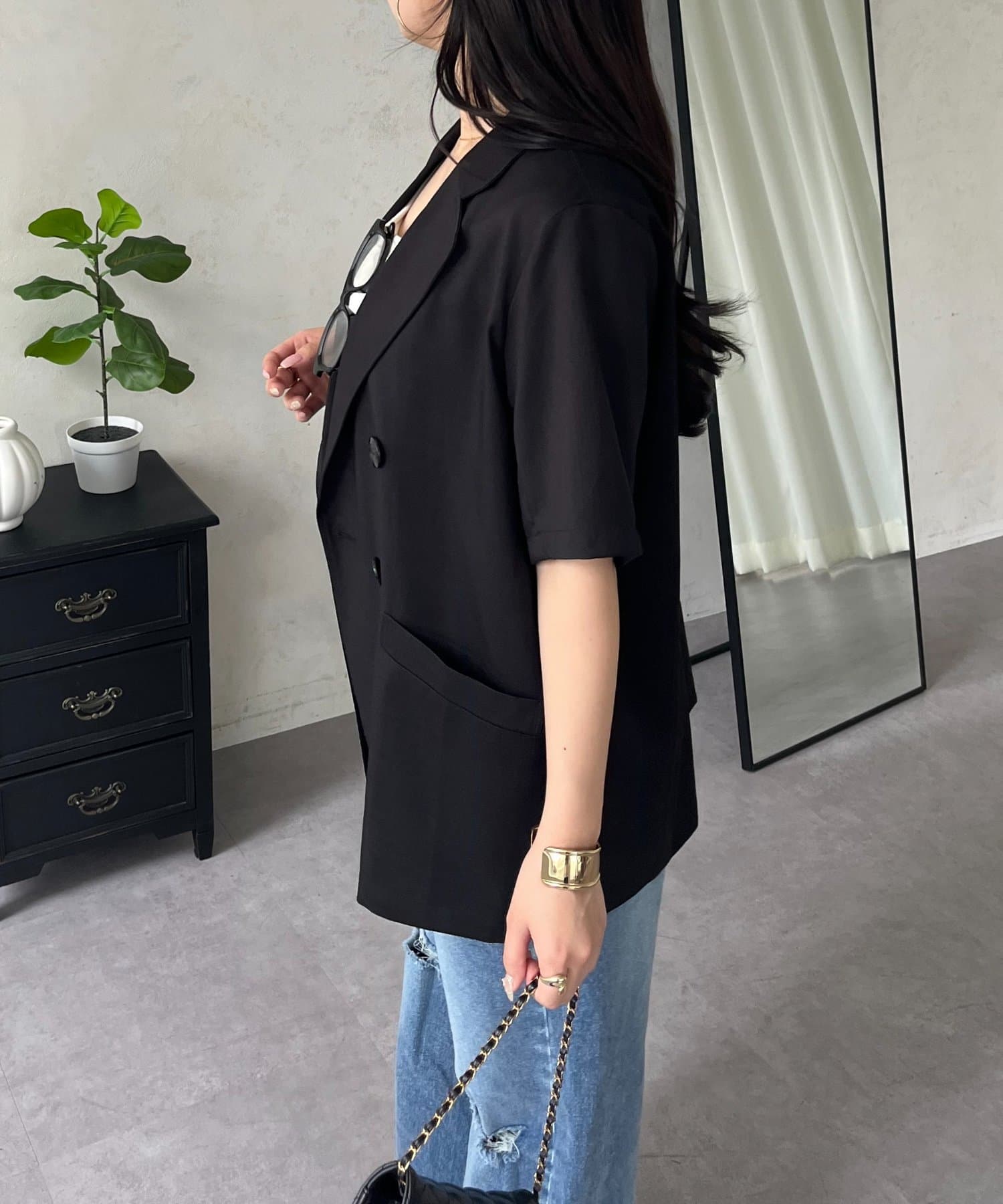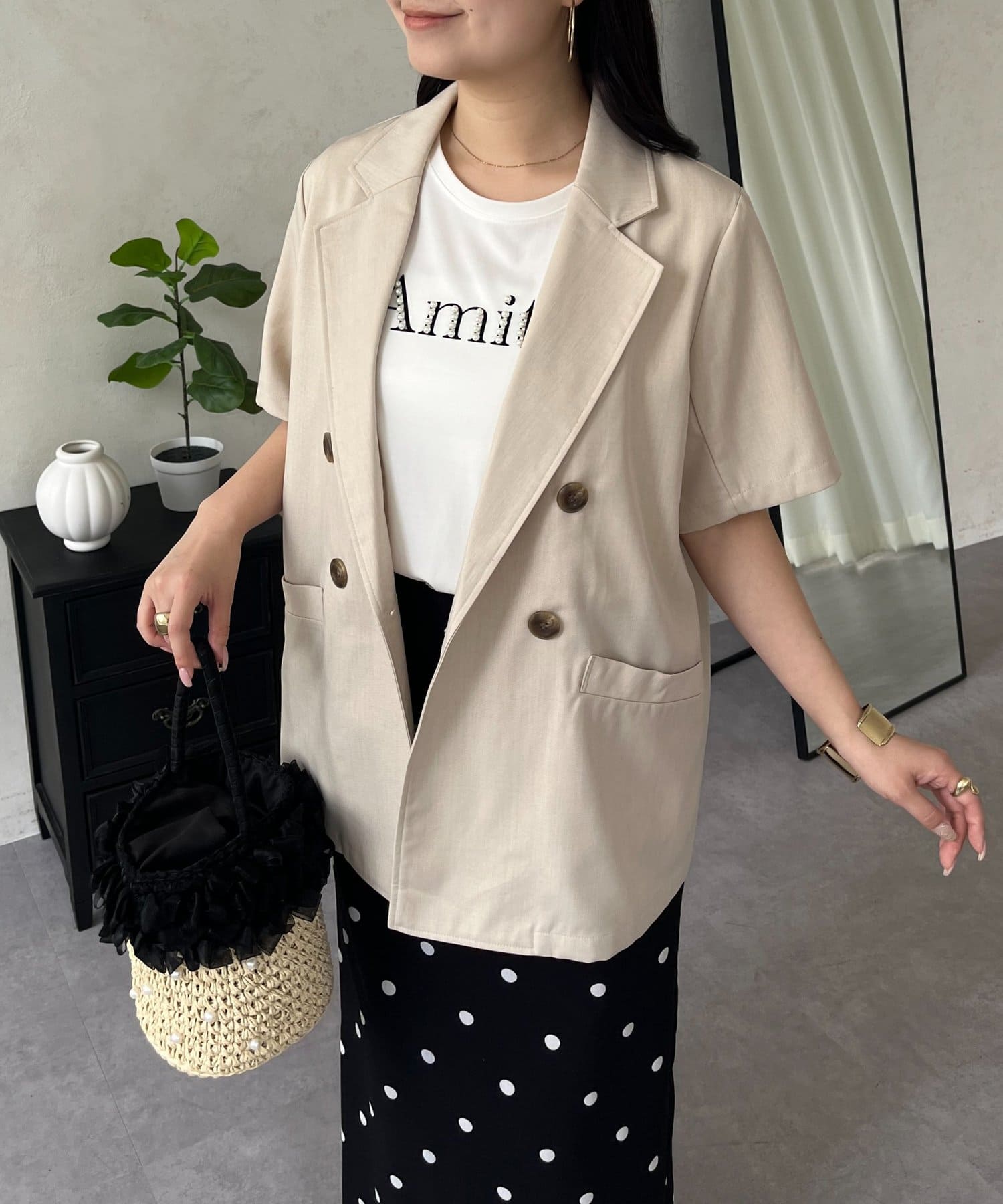 TOP > prose verse > レディース > ジャケット/アウター > テーラードジャケット > リネンタッチWボタン半袖シャツジャケット