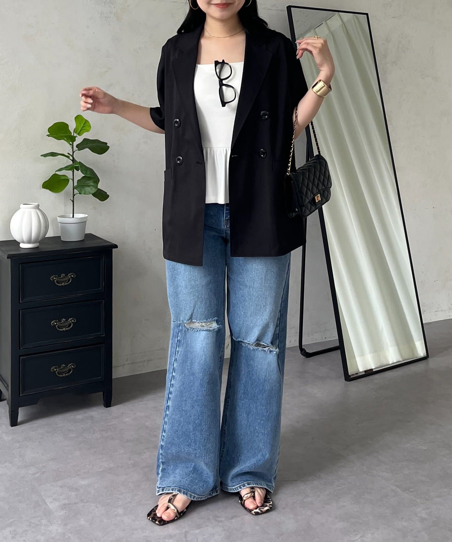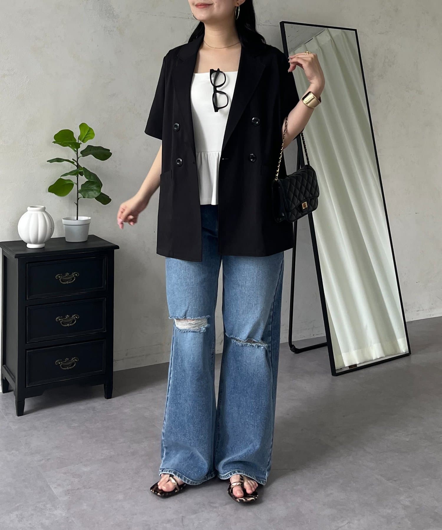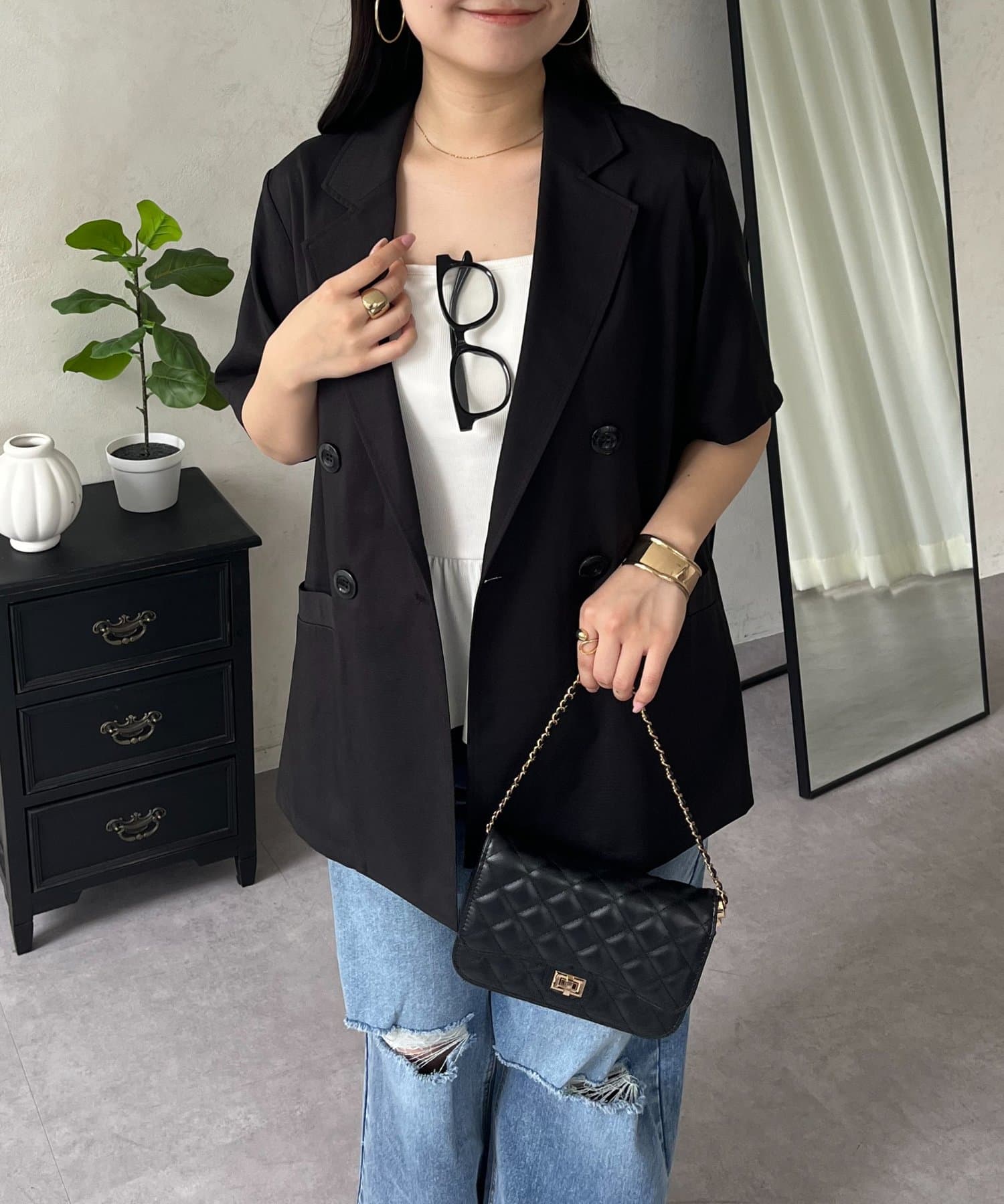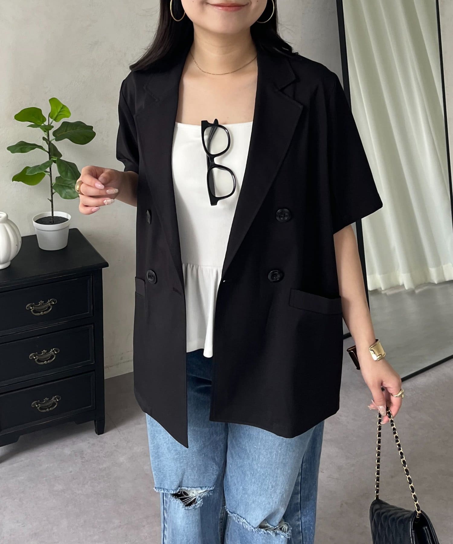TOP > prose verse > レディース > ジャケット/アウター > テーラードジャケット > リネンタッチWボタン半袖シャツジャケット