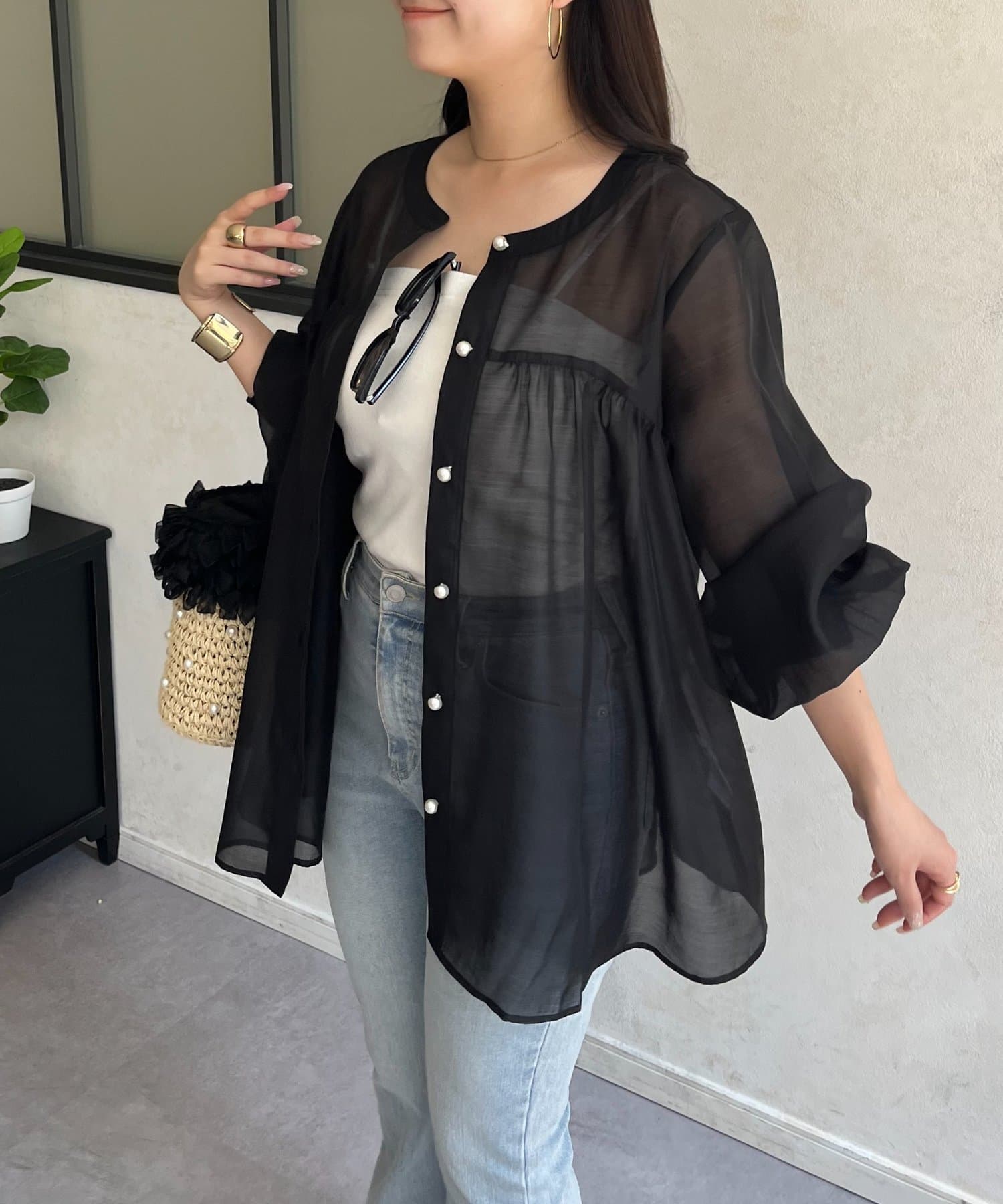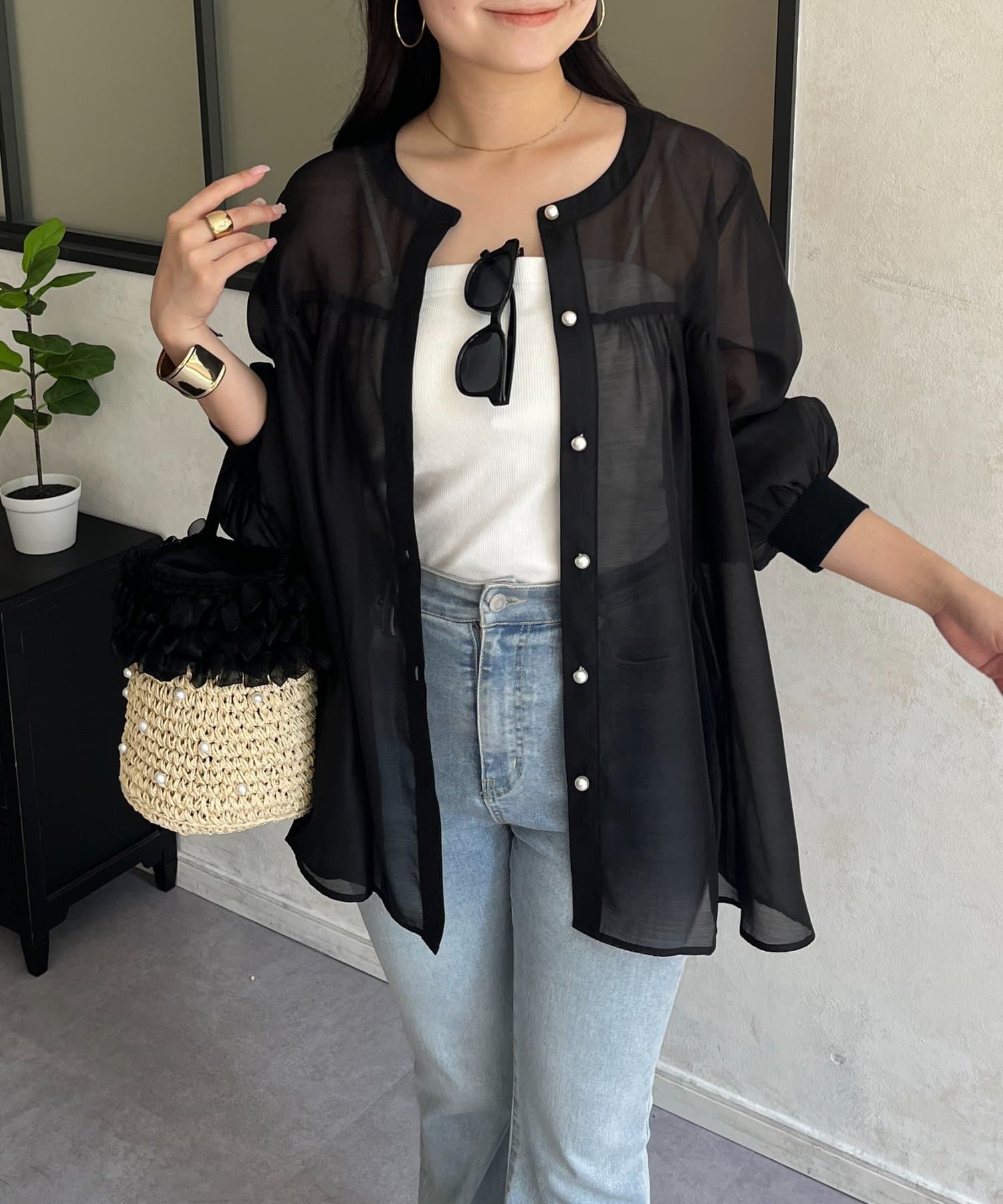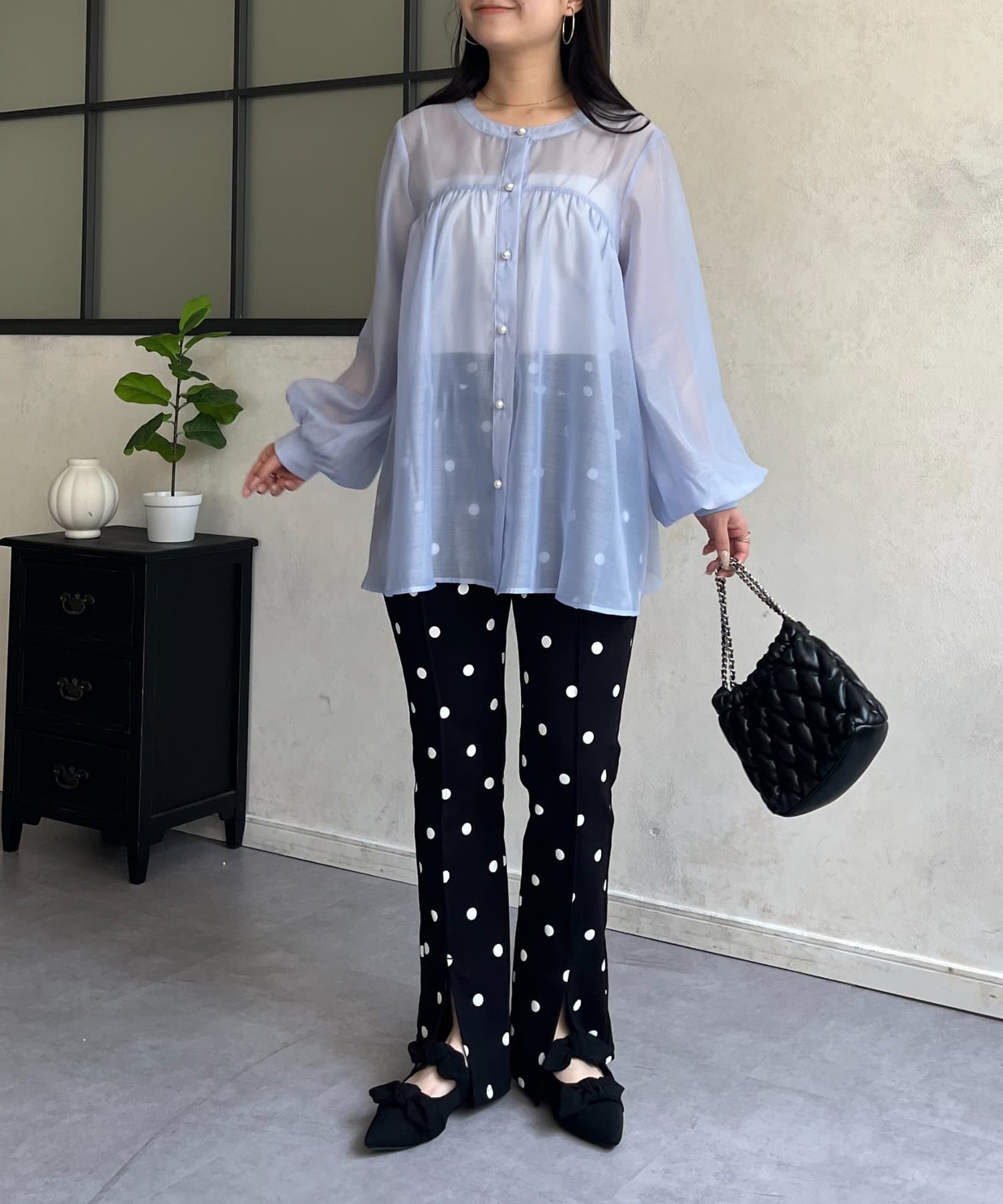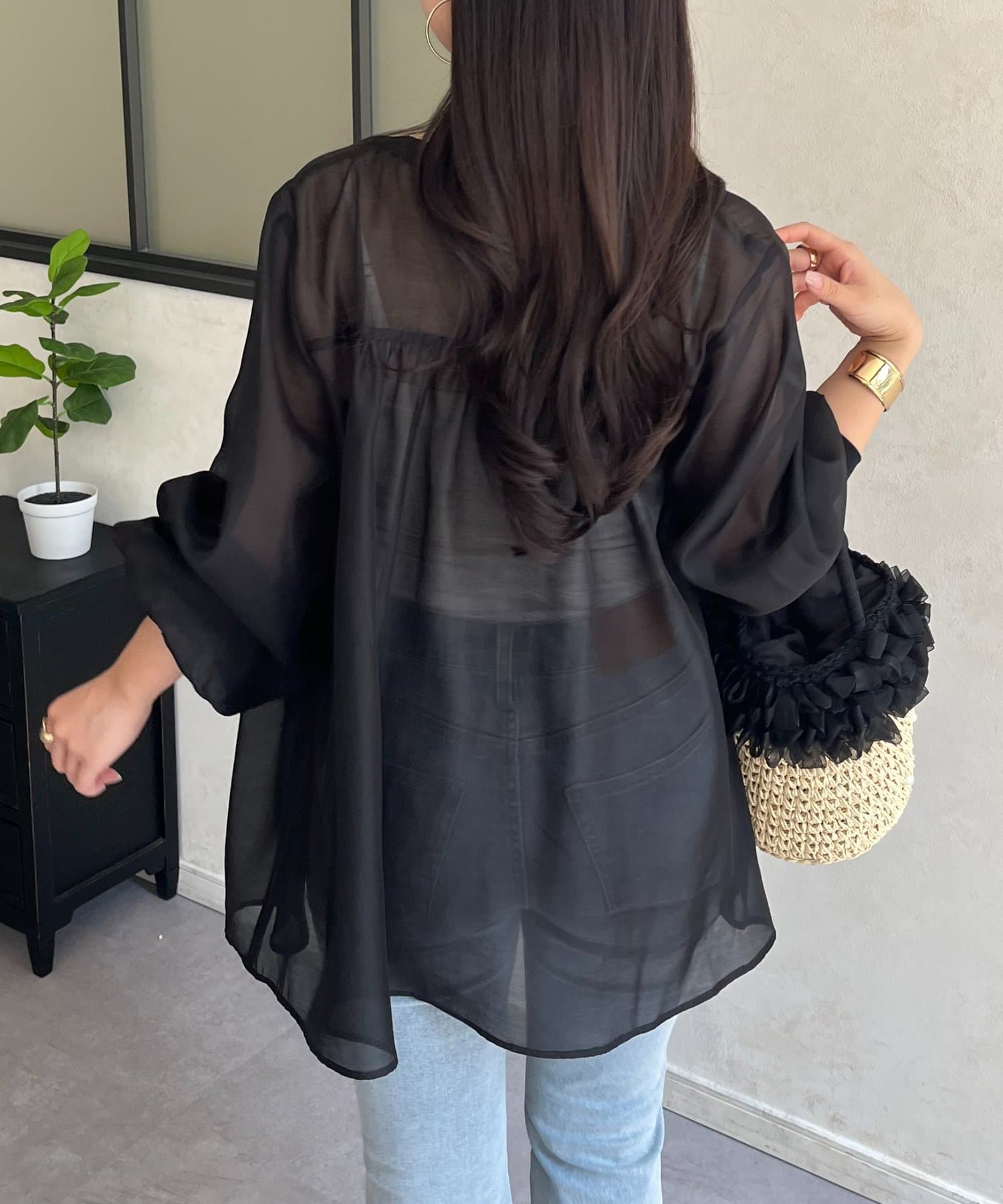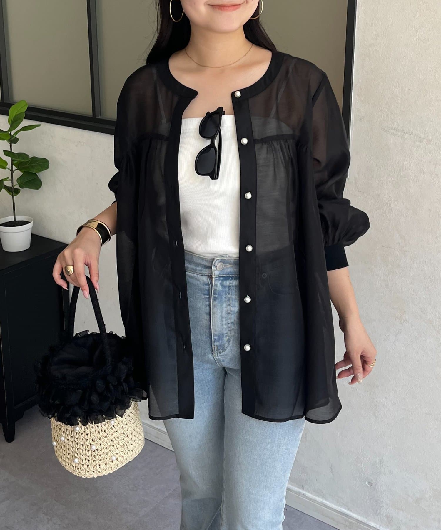 ●トレンドのシアー素材を使用しており、インナー次第で様々な表情を楽しめます