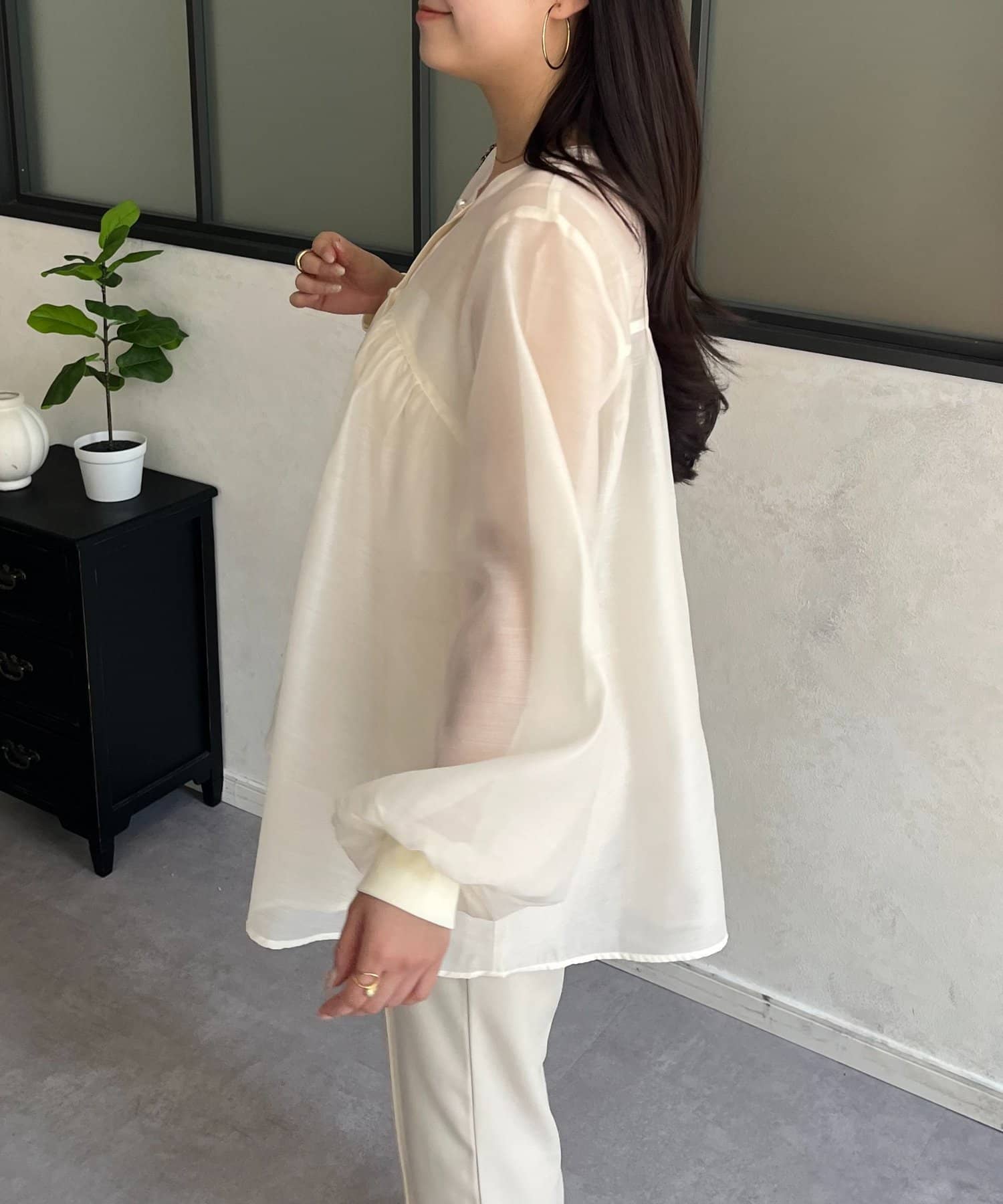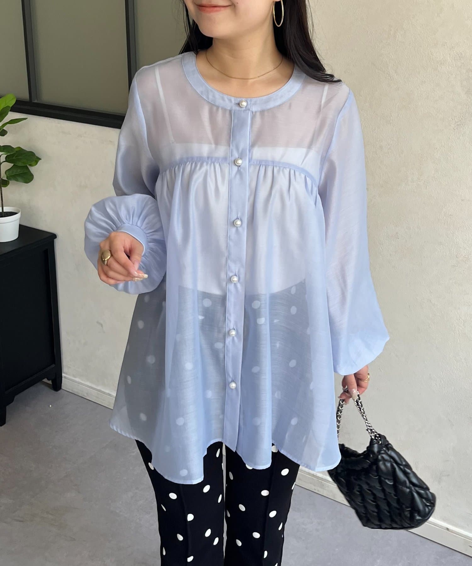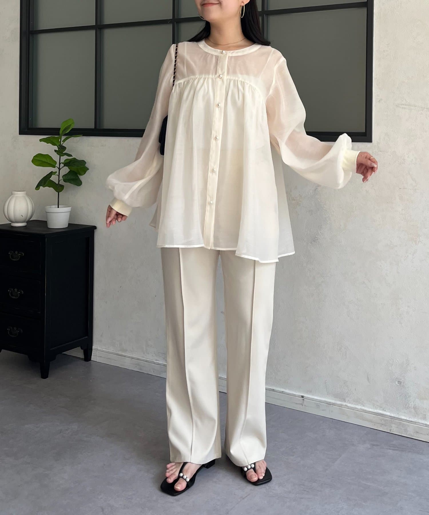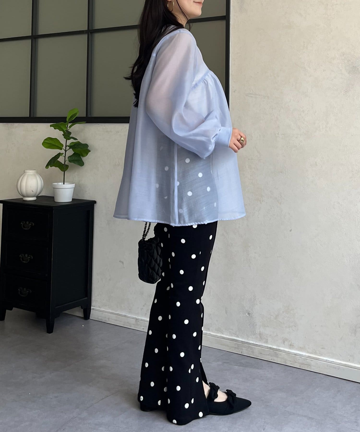 ●トレンドのシアー素材を使用しており、インナー次第で様々な表情を楽しめます