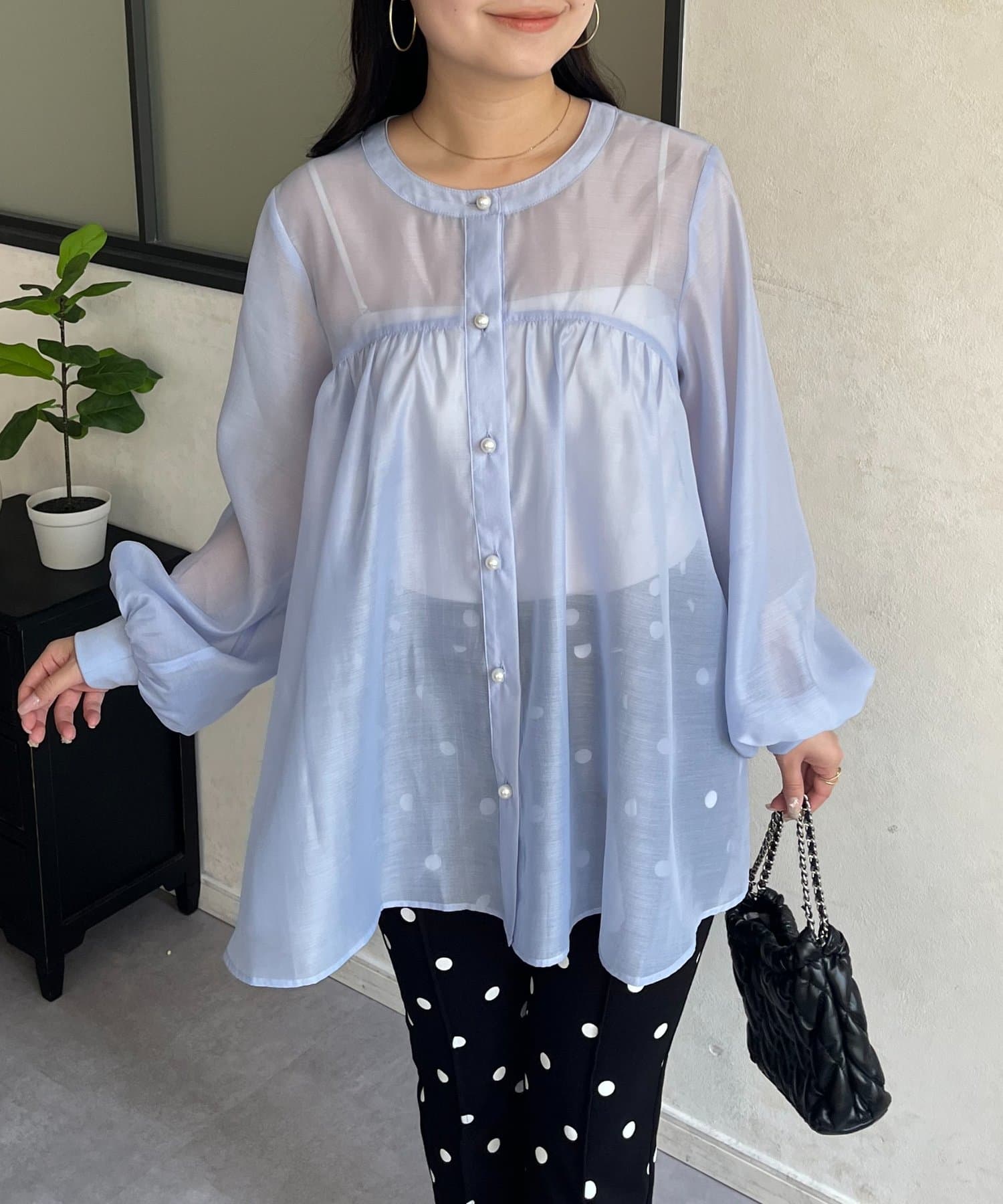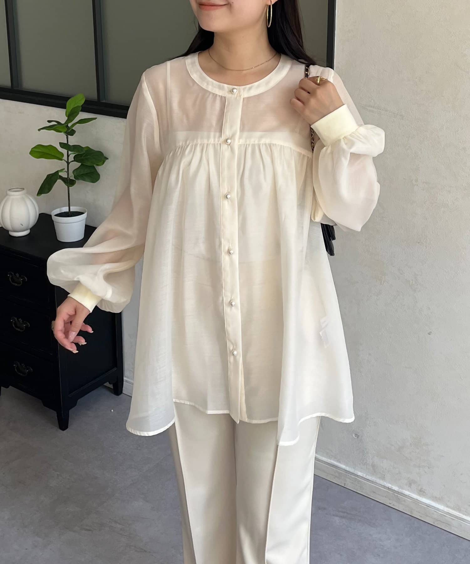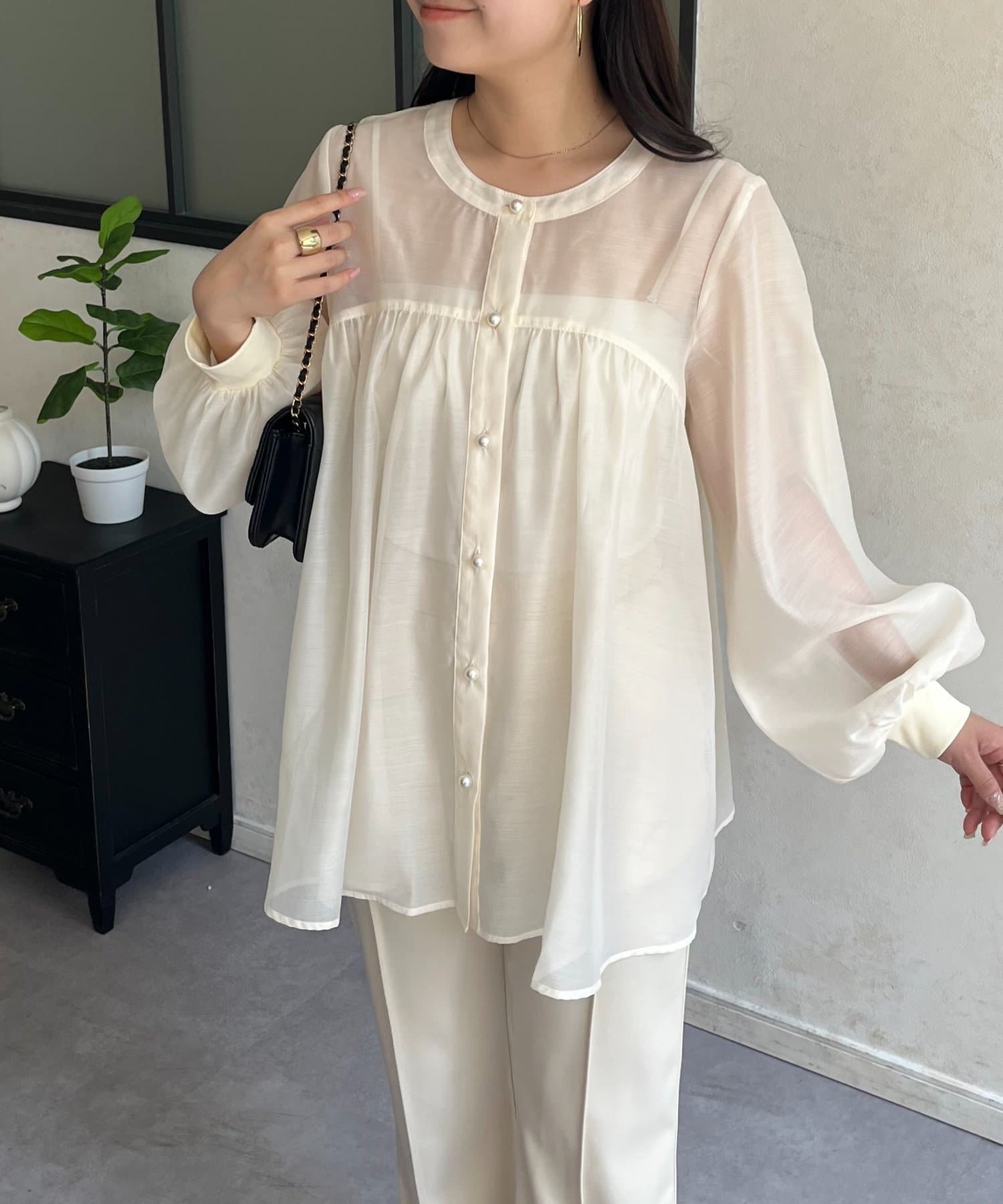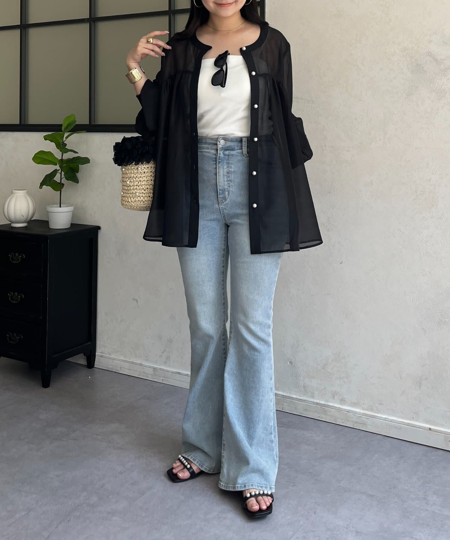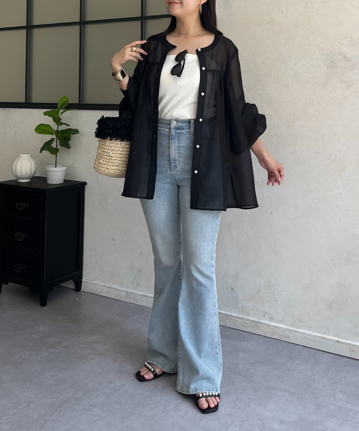 ●トレンドのシアー素材を使用しており、インナー次第で様々な表情を楽しめます