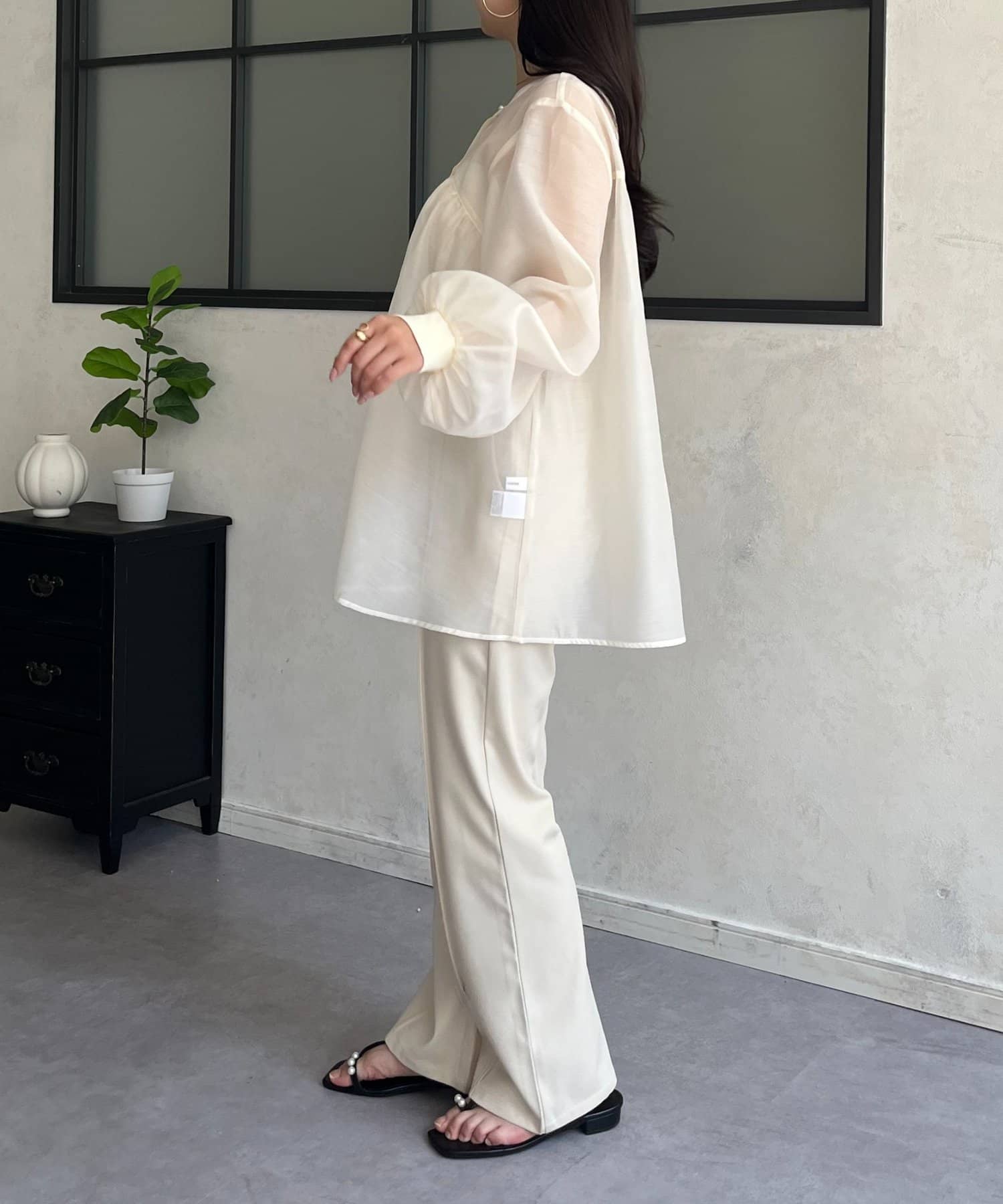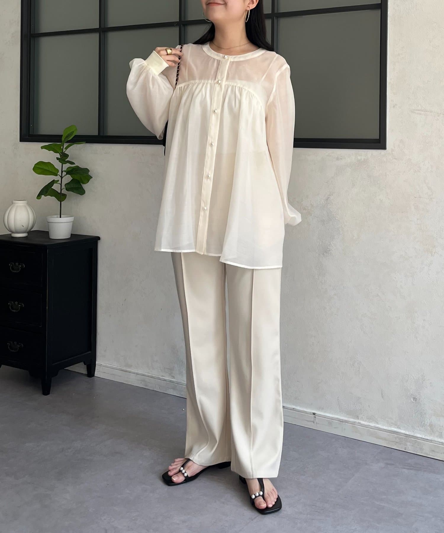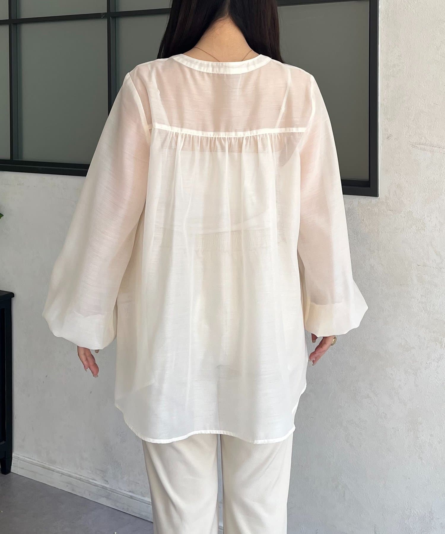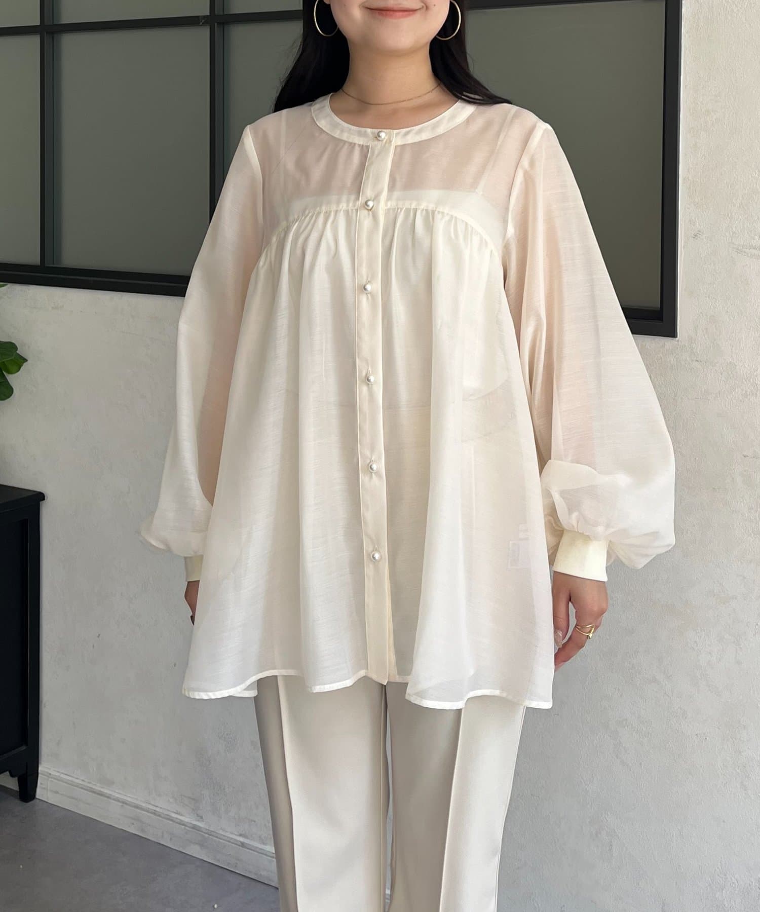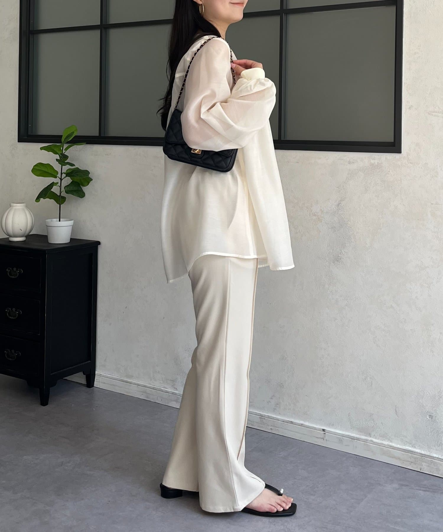 ●トレンドのシアー素材を使用しており、インナー次第で様々な表情を楽しめます
