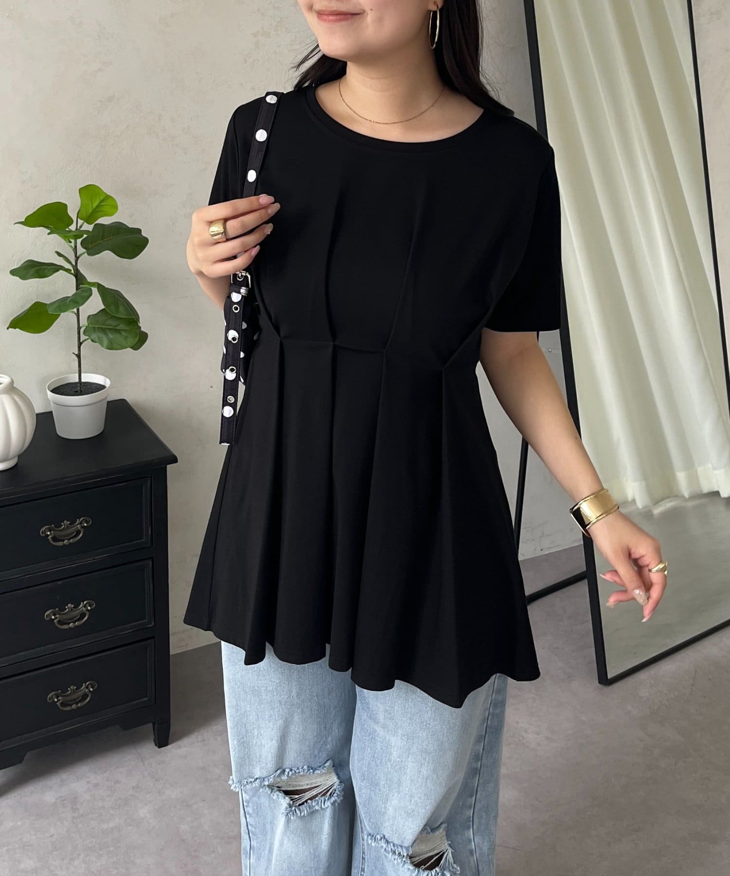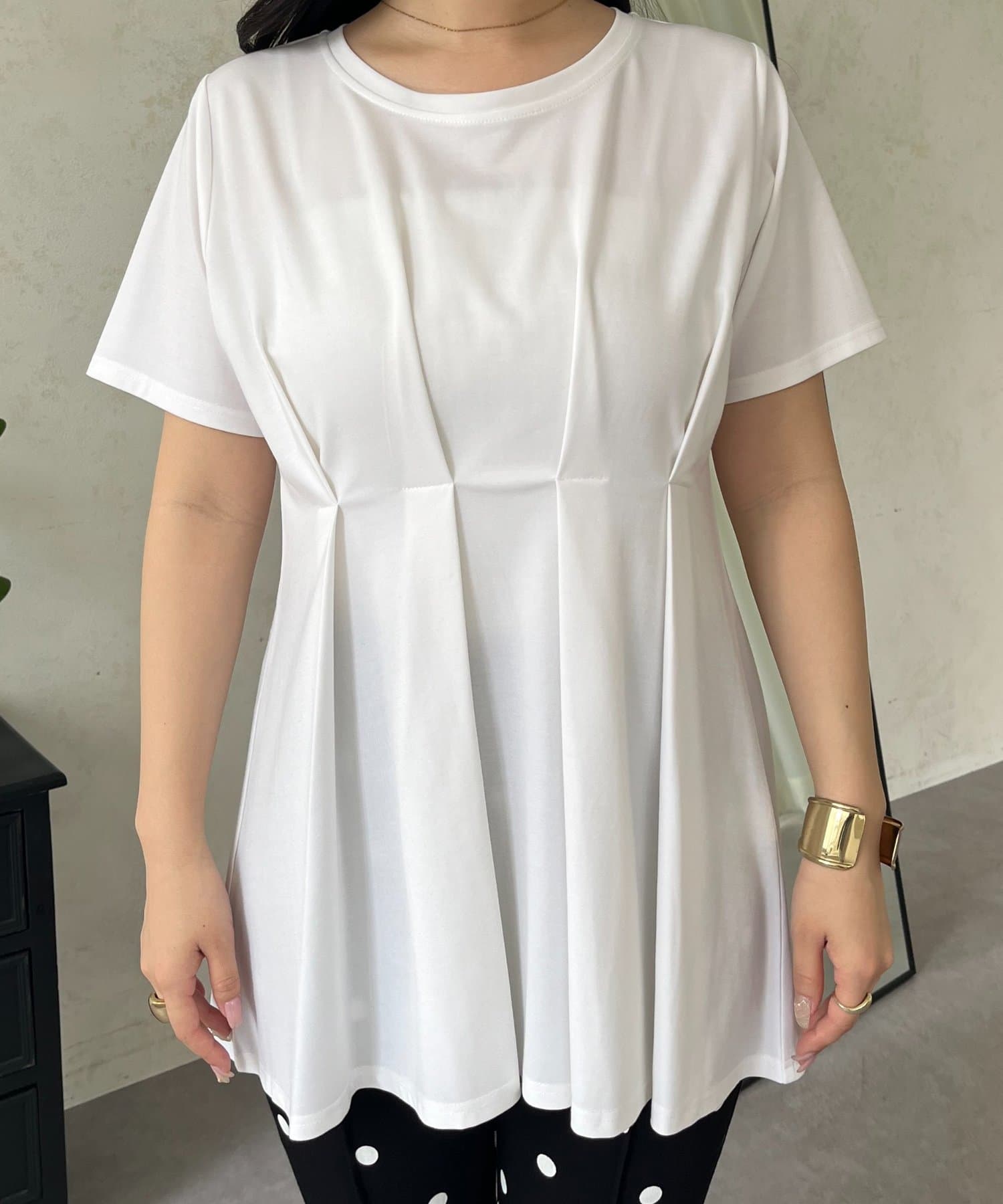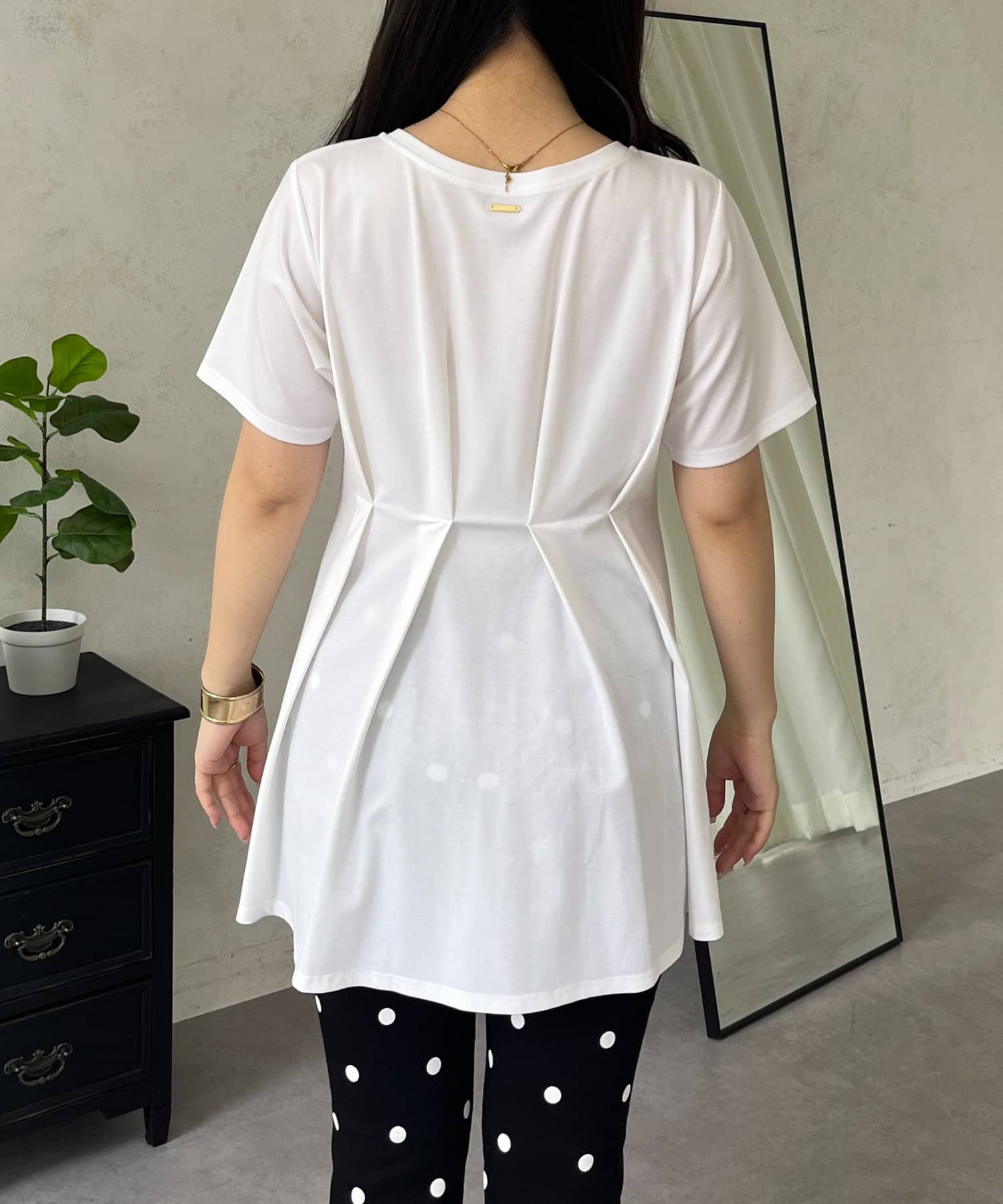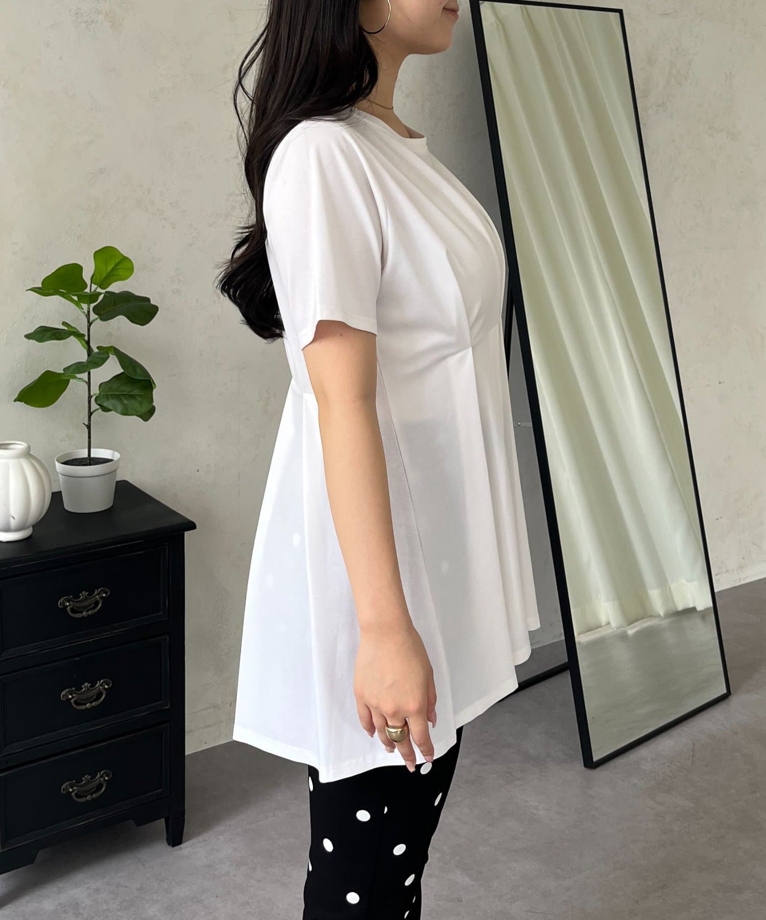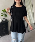 バックメタルウエストタックペプラムTシャツ