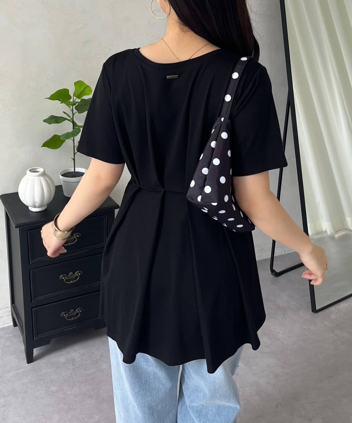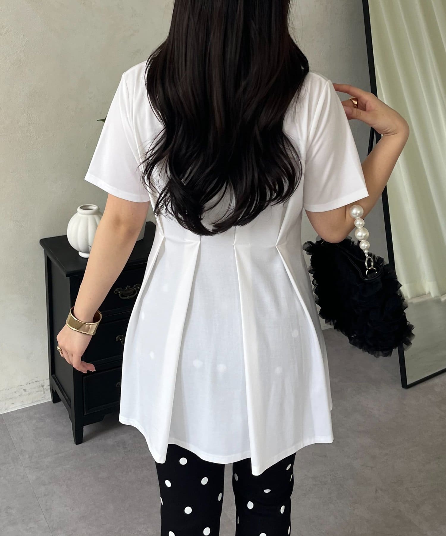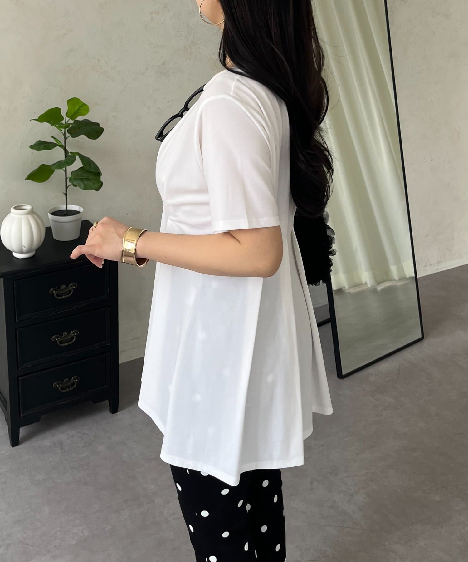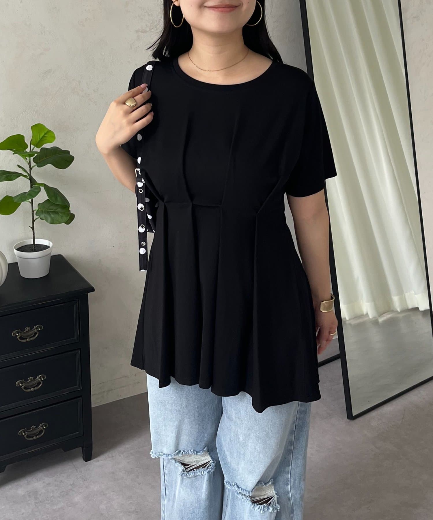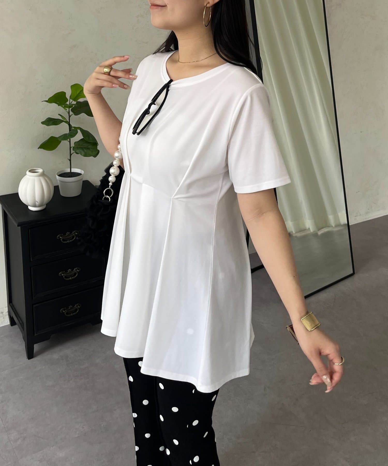 バックメタルウエストタックペプラムTシャツ
