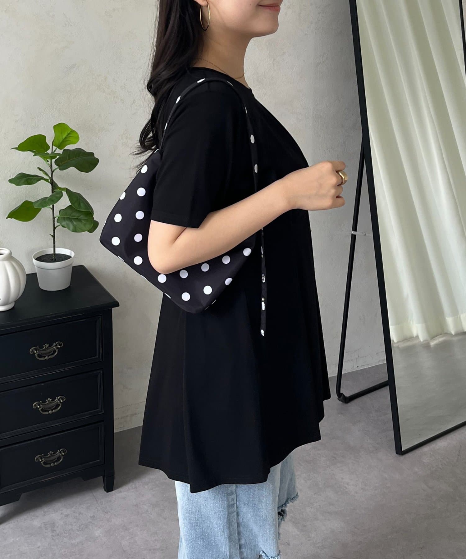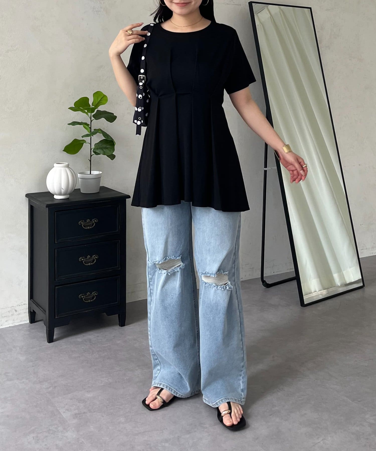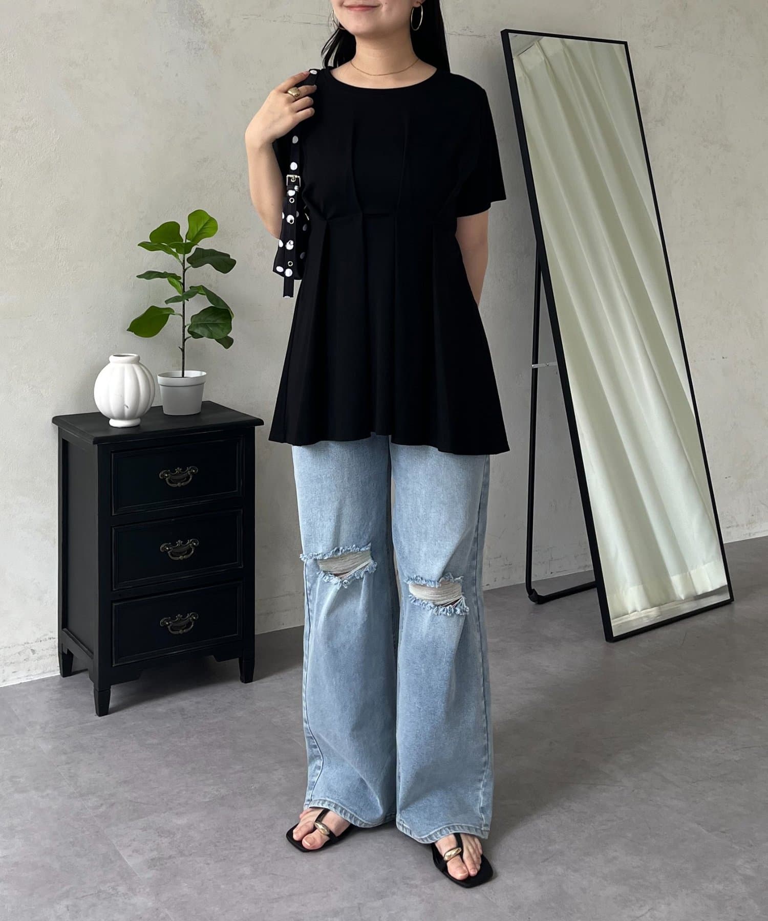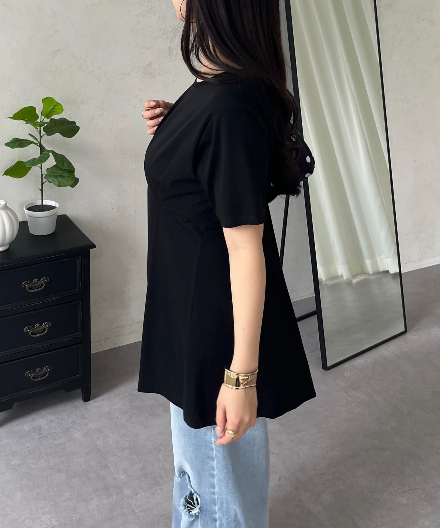 バックメタルウエストタックペプラムTシャツ