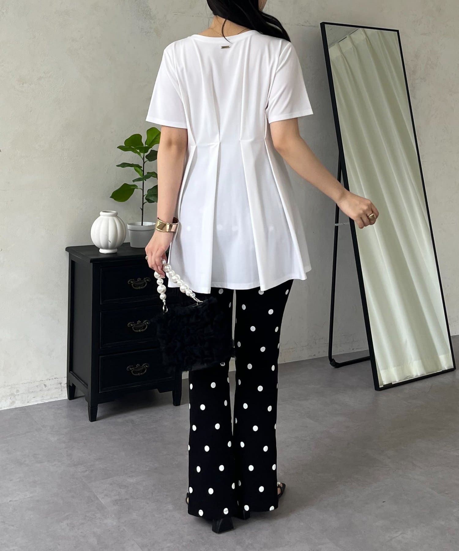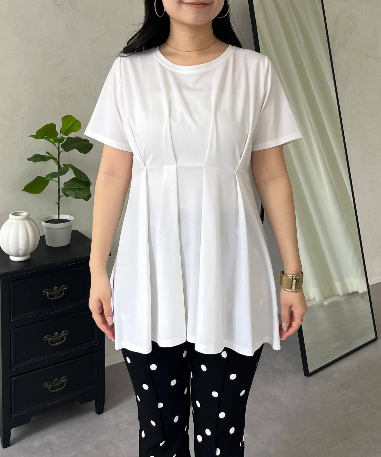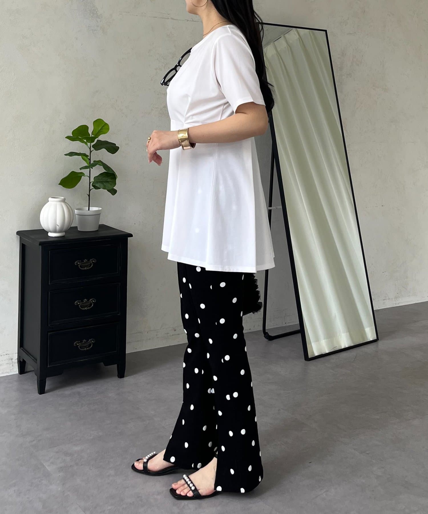 ●タックデザインが、気になる腰回りをカバーしつつ脚長効果も叶えます