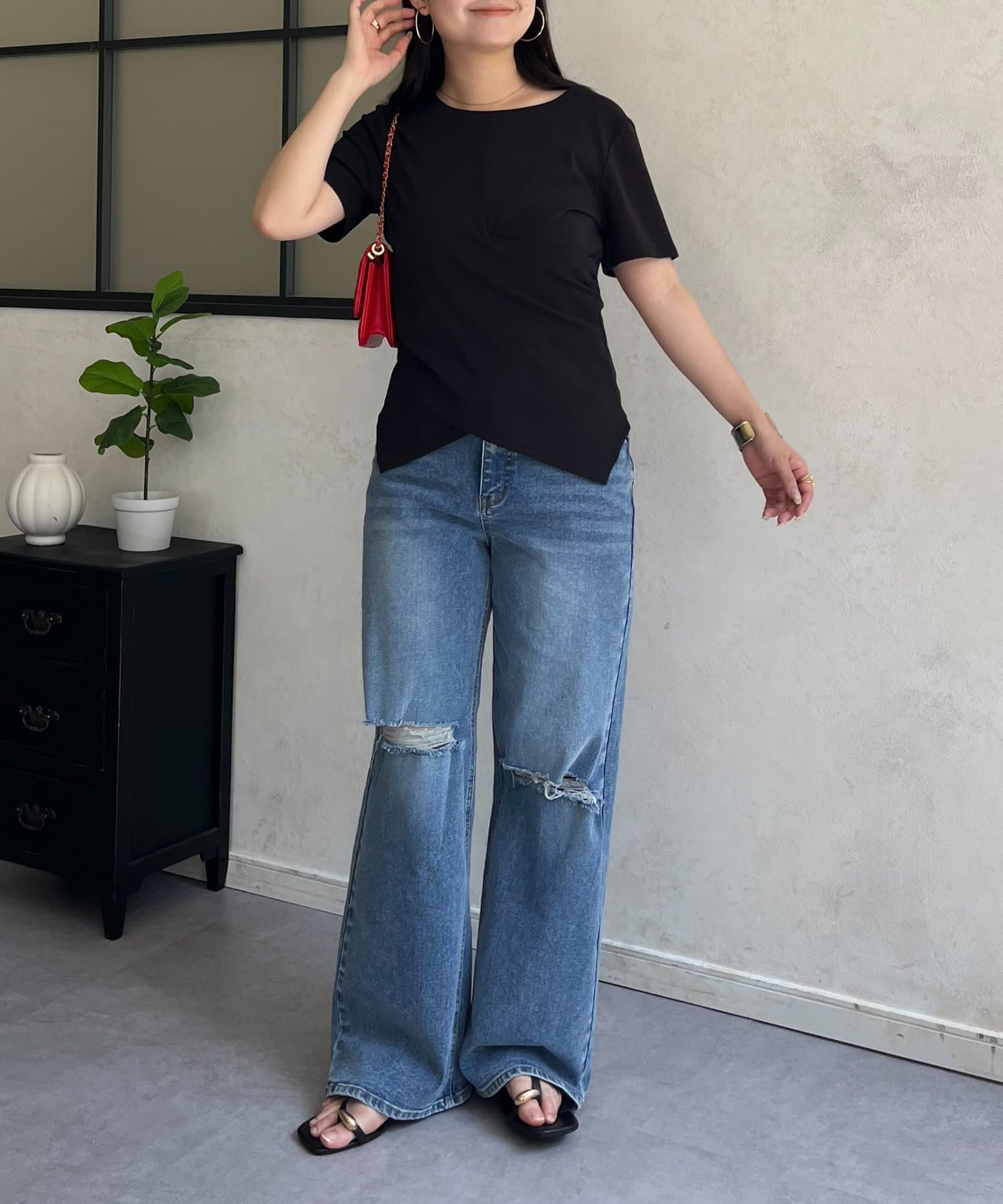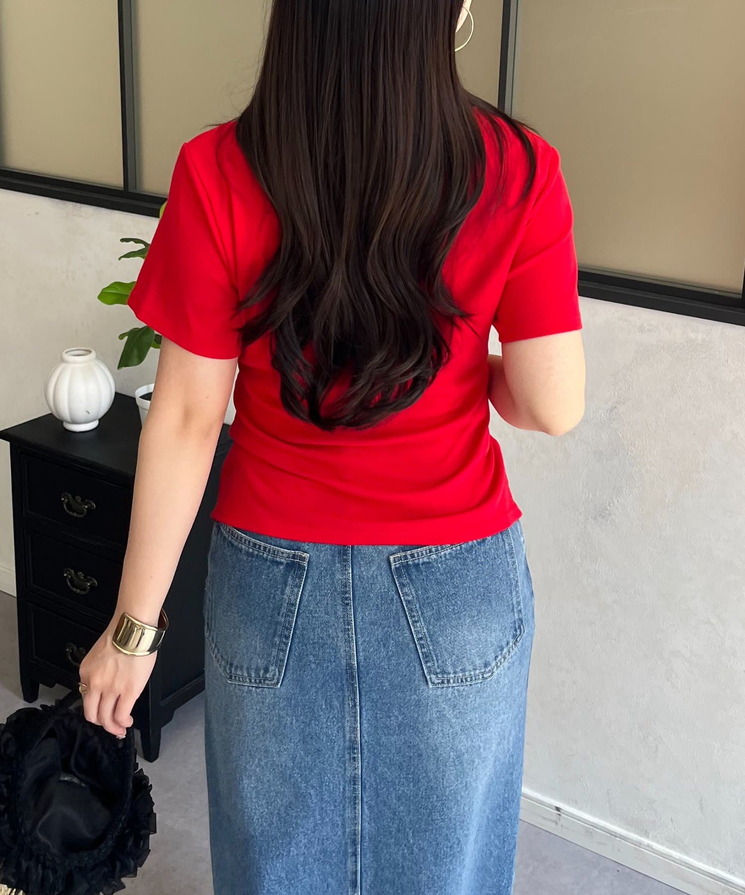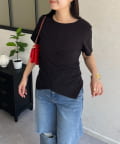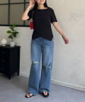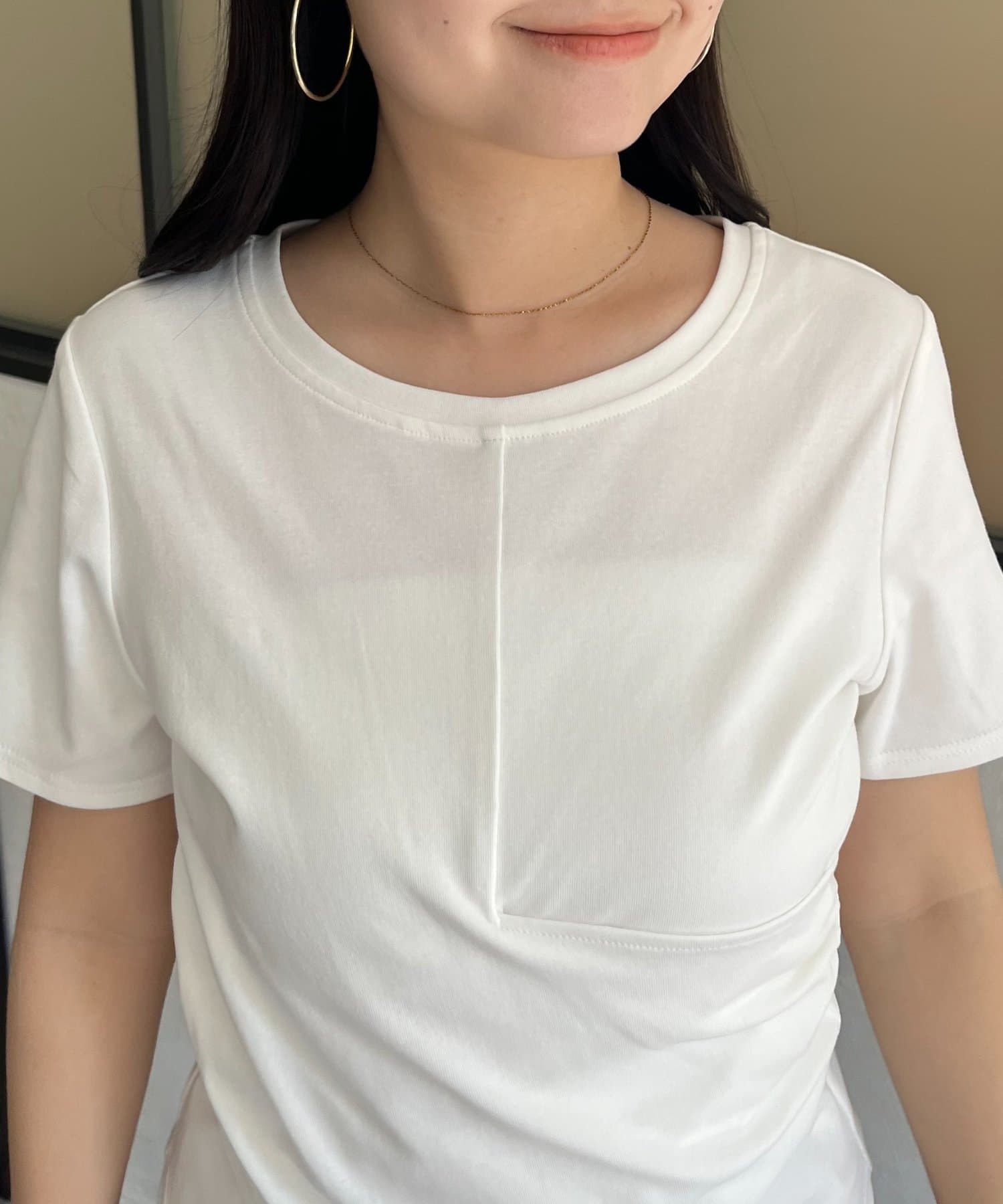 ●シンプルなクルーネックで、カジュアルながらも上品な印象に