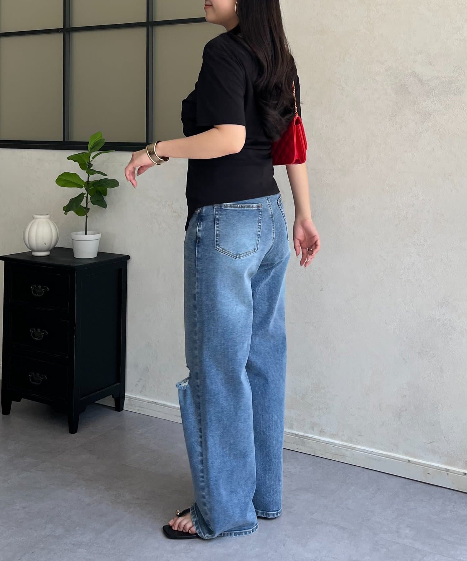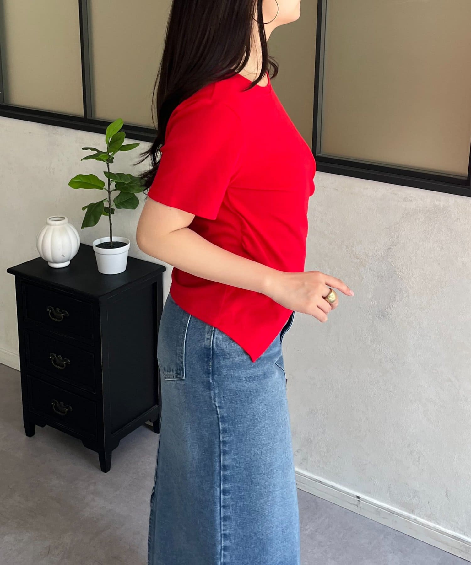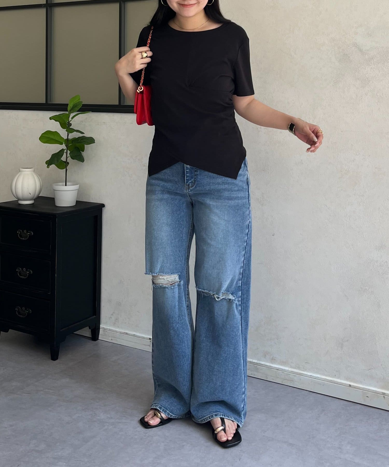 ●シンプルなクルーネックで、カジュアルながらも上品な印象に